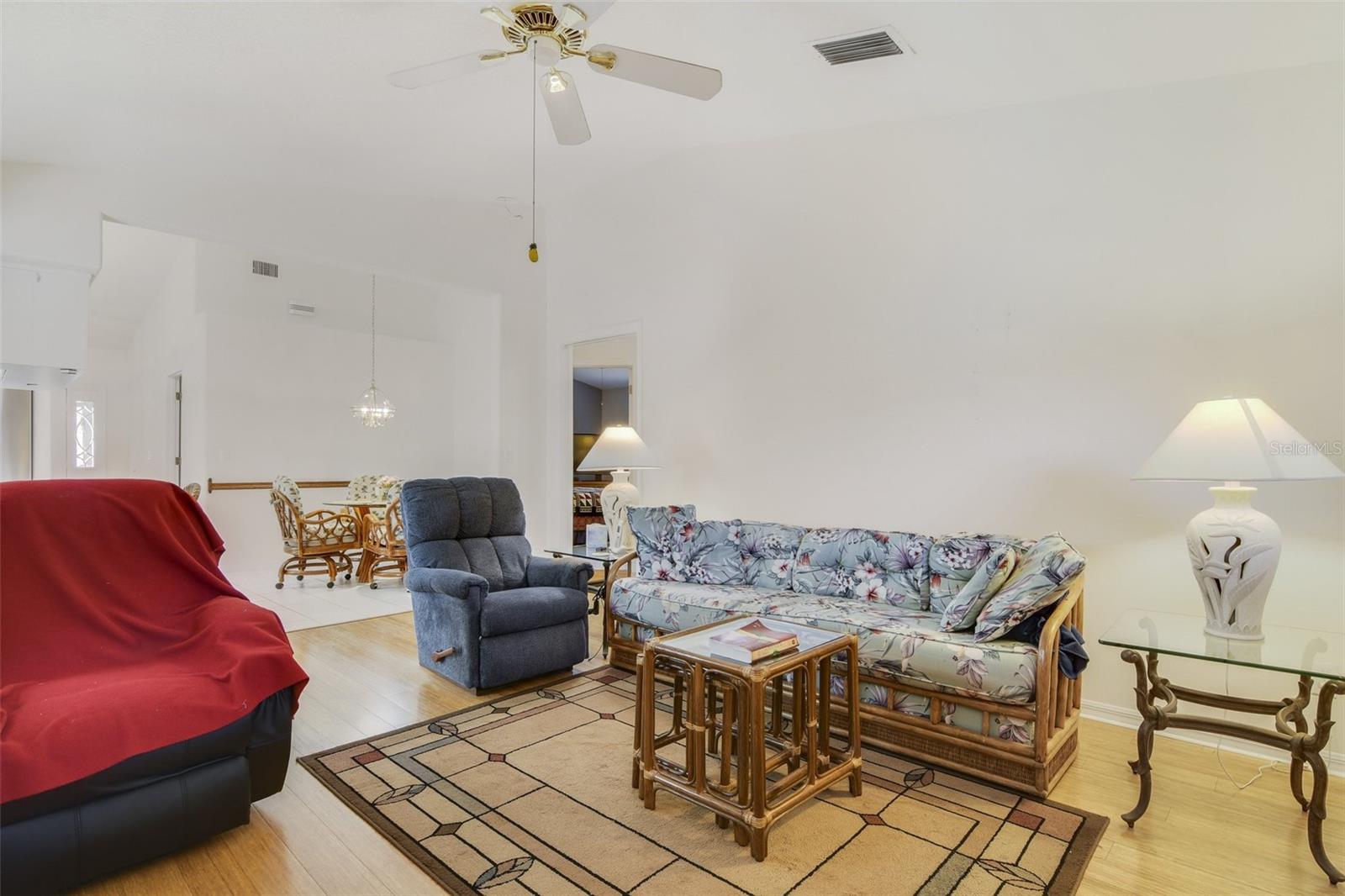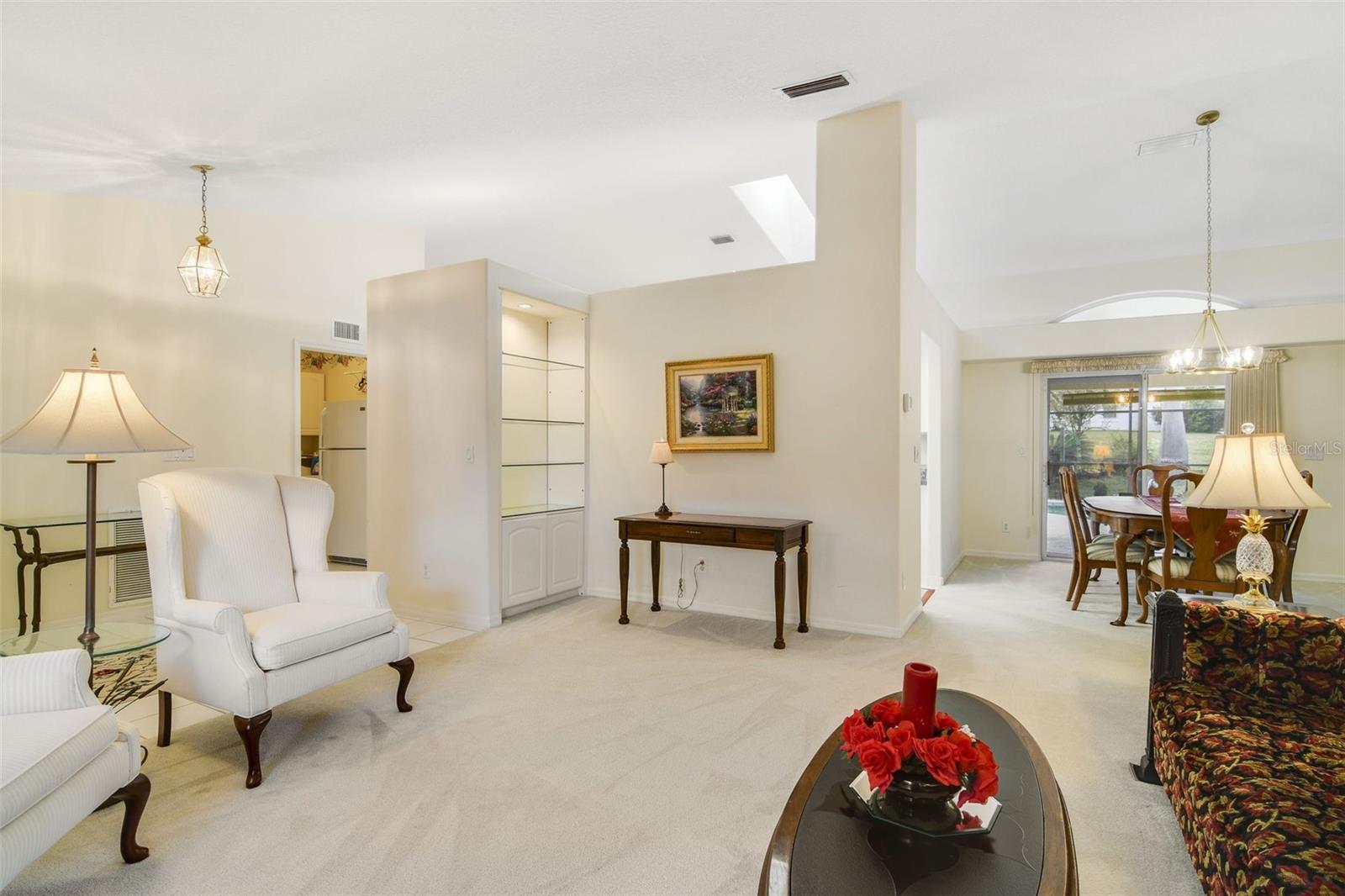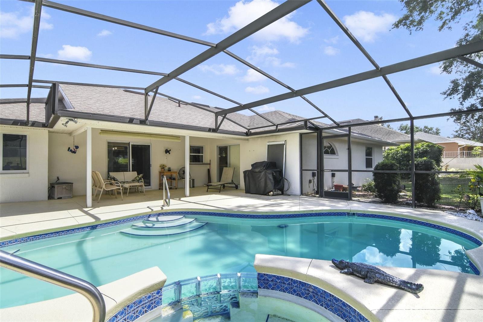BEAUTIFULLY MAINTAINED 3 Bedroom, 2 BATHROOM POOL HOME FEATURES 2,189 square feet of living area with 2,845 square feet of total area. Interior features include: inviting foyer, inside utility room, spacious kitchen with a skylight, breakfast bar, kitchen pass through to backyard patio, dinette eating space, formal dining with sliders to patio, family room with sliders to patio, formal living room, primary bedroom with sitting alcove, ensuite bathroom, primary bathroom with dual sinks, walk in closet, garden bath, separate shower, private water closet under counter lighting and sky light Exterior features include a 2 car garage with utility tub, door screen, door opener, front covered porch, backyard covered patio, screen enclosed swimming POOL and spa and mature landscaping. This home is in a GATED SOUGHT AFTER 55+ GOLF COMMUNITY complete with a restaurant, pro shop, pub, driving range, bocce ball, shuffleboard AND a Great Hall! This is where you will find entertainment, social events, theater productions, etc. And if that is not enough, they also have a library, billiards, pools, craft spaces and more. THERE IS SOMETHING FOR EVERYONE!!!! The HOA fee also includes Cable TV and high speed internet.
