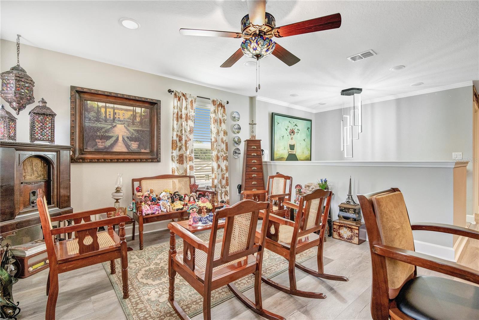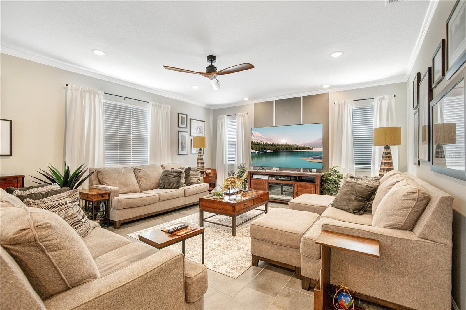 Welcome to this Stunning Home located in a desirable recently built neighborhood! This spacious 5 bedrooms 3 bathroom home built by Richmond American Homes and floor model Moonstone is complemented with a blend of elegance, style and luxury built. Seated on a spacious corner lot with a screened lanai and 3 car garage. This Home provides the ultimate in water quality with the inclusion of a top-of-the-line water softener system, features modern living with an open concept ready for entertaining/hosting for endless family fun and or a growing family. Home offers luxurious upgrades throughout, downstairs bedroom and full bathroom with tile throughout and an upstairs loft ideal for game or theater room. Step into luxury with this custom designed master walk-in closet that caters to your organizational needs and style. Excellent and convenient location close to shops, restaurants, entertainment options and Top-rated schools. Don’t miss out on this opportunity to make this beautiful property your forever Home. Call today to schedule a private tour! Buyers and/or buyer's agent must verify room sizes and HOA information.