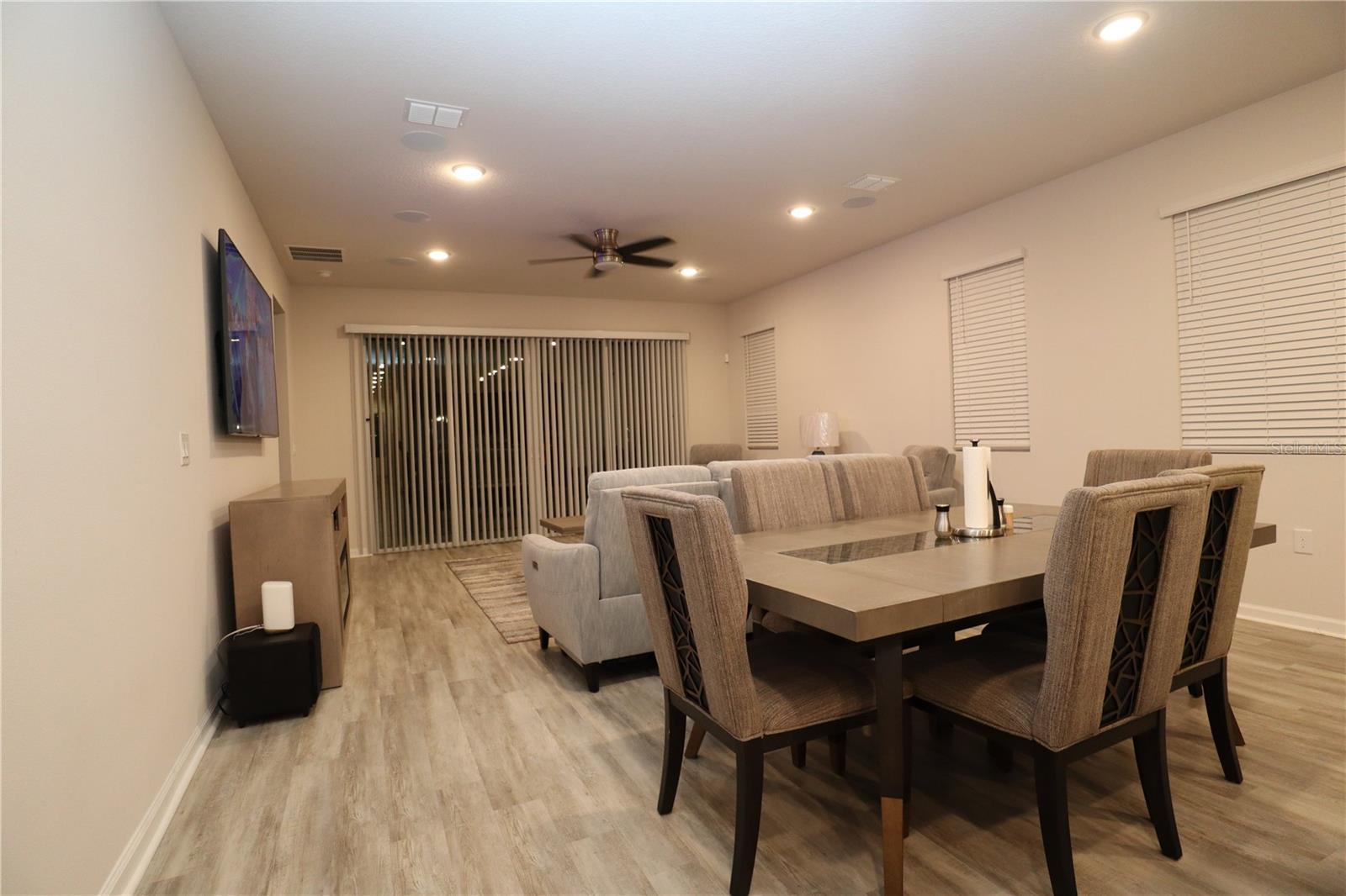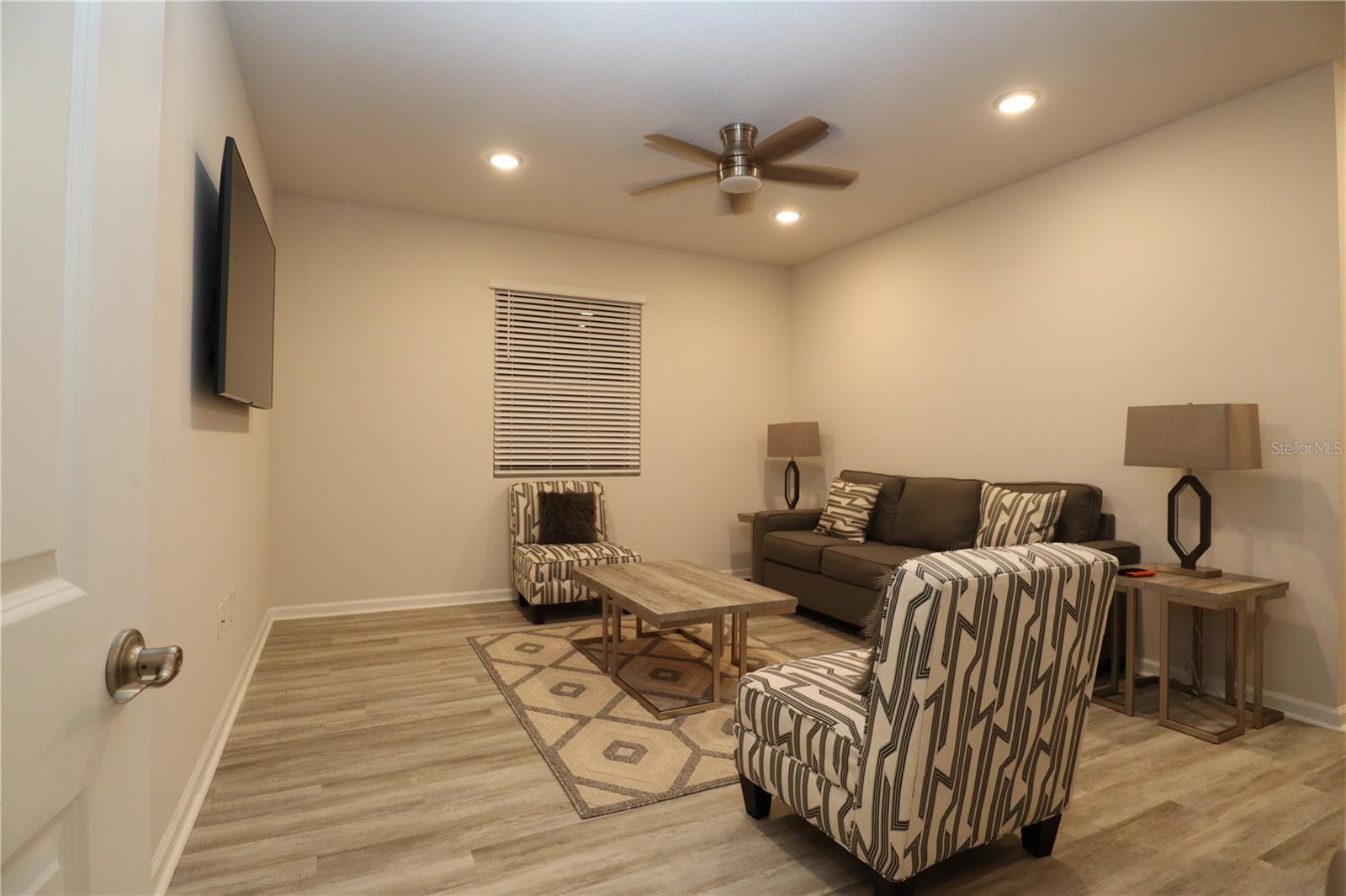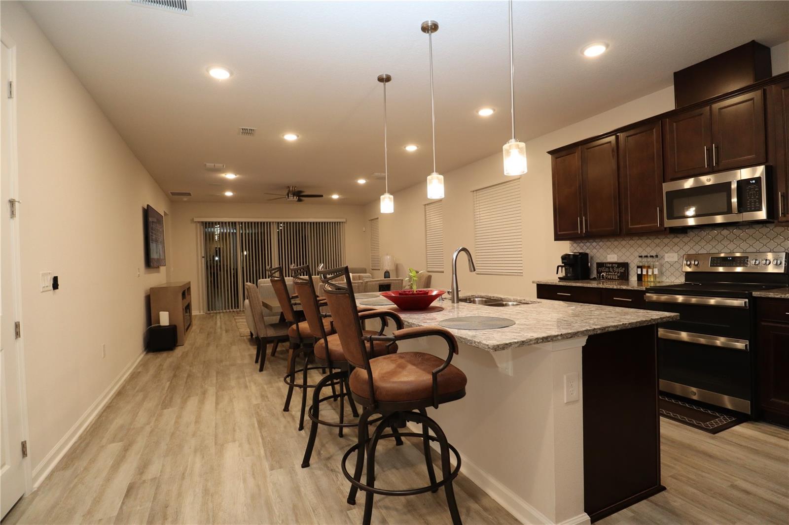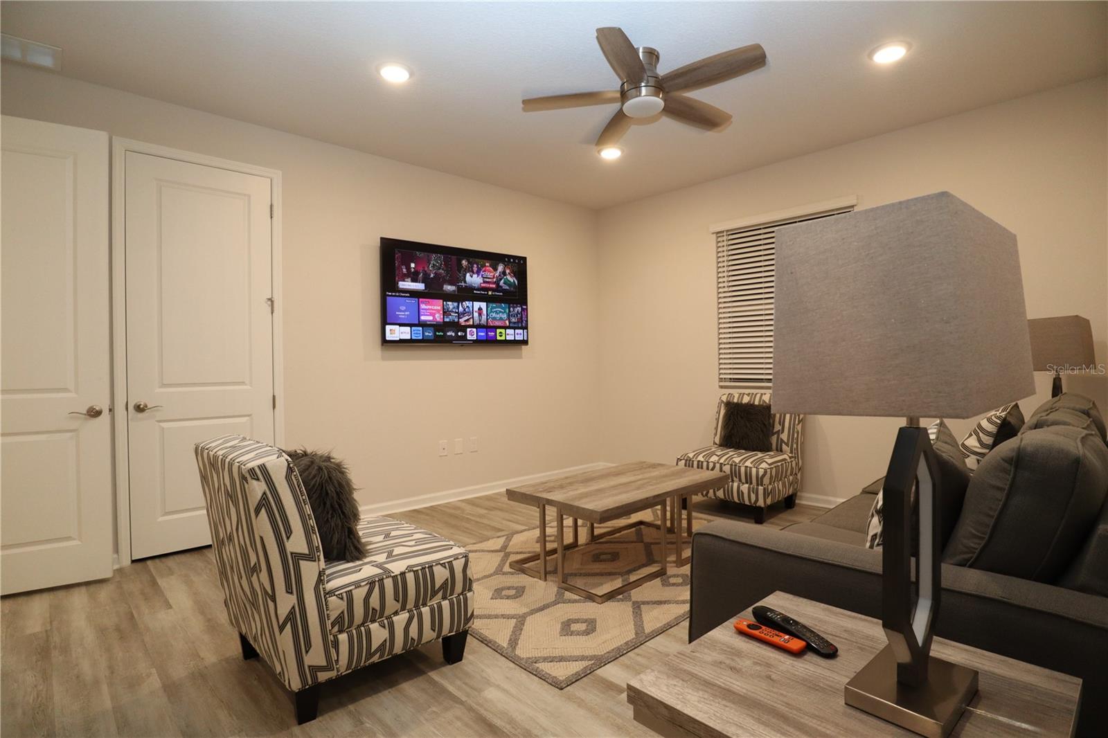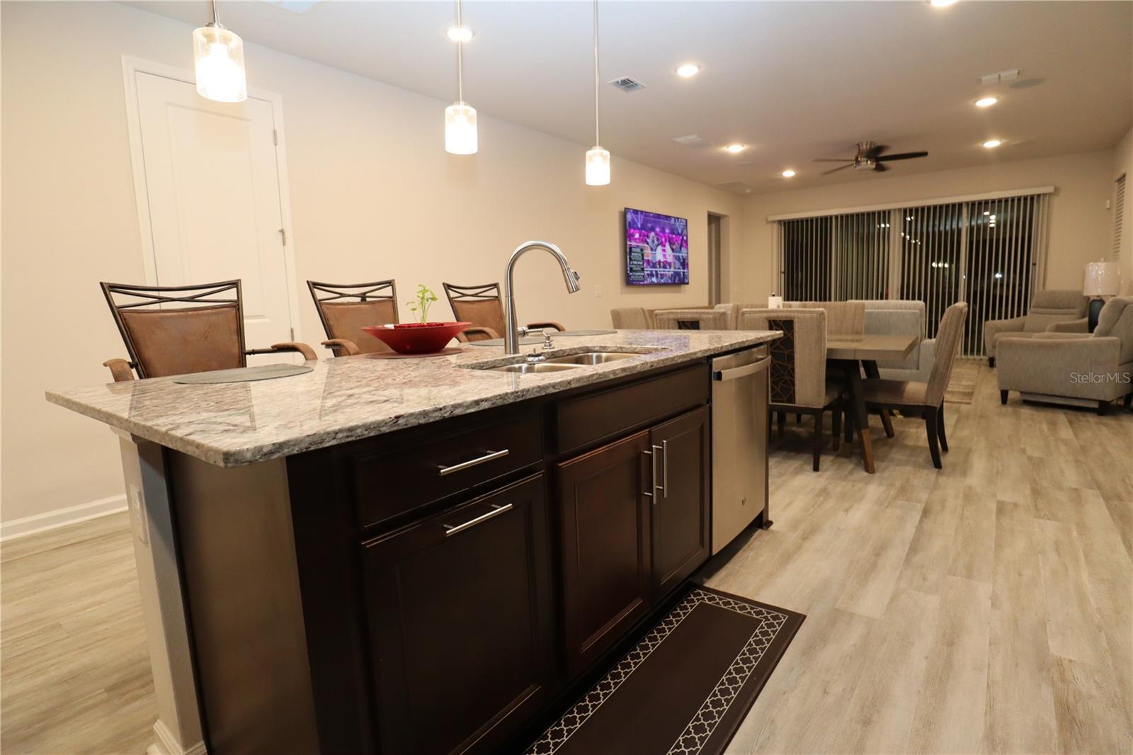 Look no further! This beautifully designed home, newly built in 2022, is the ideal blend of luxury and functionality. With 4 spacious bedrooms, 3 full bathrooms, and an impressive layout which includes an in-law studio apartment. This home is crafted for comfort and convenience as it's located near Lake County's Lake Square Mall, many stores and restaurants. Step inside to find soaring 12-foot ceilings and an open-concept kitchen, dining, and living area. The kitchen is a showstopper with its custom backsplash and seamlessly blends with the dining and living spaces, creating a perfect atmosphere for entertaining. Enjoy premium Bose surround sound speakers installed in the living room ceiling, elevating your audio experience. Ceilings fans are located throughout to maintain a comfortable breeze while you relax. The home includes two laundry rooms – one dedicated to the main living area and a second, stackable washer and dryer set in the studio suite. This versatile suite offers a private retreat with a bedroom, full bathroom, living room, and a wet bar/kitchenette, perfect for guests, in-laws, or rental potential. Equipped with an ADT alarm system for added peace of mind, this home is ready for you to move in and start living. With ample linen closets and thoughtful storage throughout, this home perfectly combines style, comfort, and security. Don’t miss out on this exceptional property!