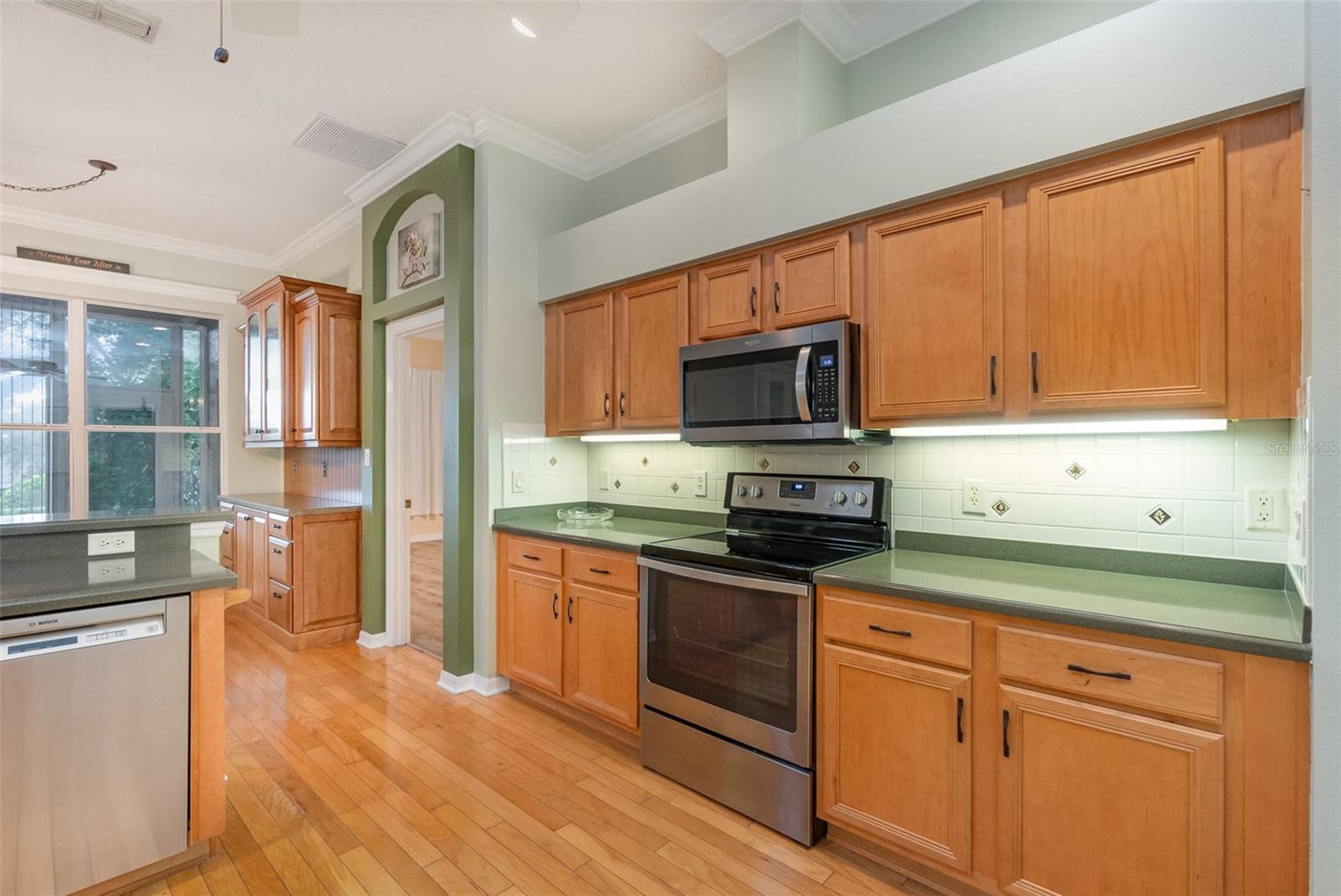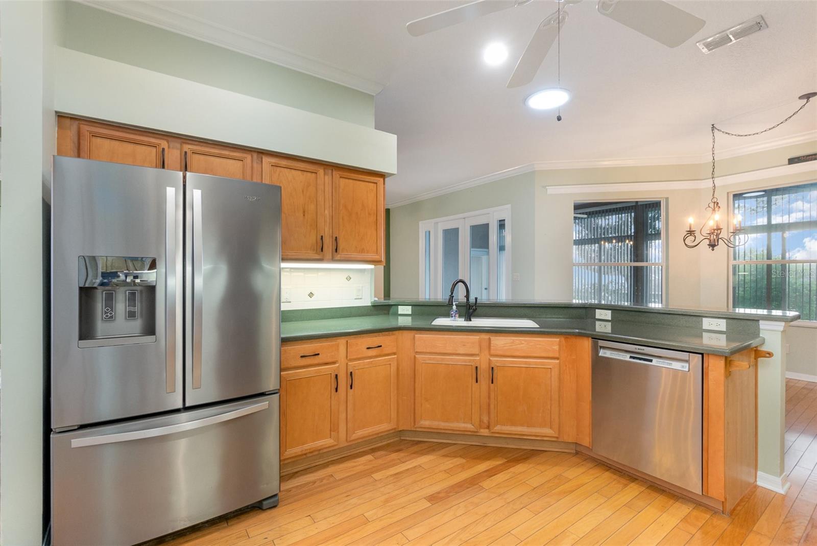 One or more photo(s) has been virtually staged. Motivated Seller! Beautifully updated home in The Plantation at Leesburg, offering a variety of amenities and easy access to local highways! The functional floor plan offers two bedroom suites with an additional bonus room that can accommodate any of your needs as a guest bedroom, home office, or whatever else you require. Elegant crown molding and LVP flooring perfectly complement any decor with French doors leading to the spacious lanai for seamless indoor/outdoor living! Your home chef never has to miss a moment in the kitchen at the heart of it all complete with a breakfast nook featuring a gorgeous built-in hutch adding both style and extra storage space. The west-facing backyard with a large paver patio is perfect for enjoying relaxing sunset views with mature oak trees for natural shade during the day. Keep clutter tucked away with built-in cabinetry in the laundry room and less maintenance with the newer HVAC, water heater, & roof! The Plantation at Leesburg is a 55+ community boasting multiple golf courses, clubhouses, swimming pools, tennis courts, pickleball courts, bocce ball, shuffleboard, and more all without even leaving the neighborhood so you will never run out of ways to stay entertained! Don’t miss out, schedule your showing today!