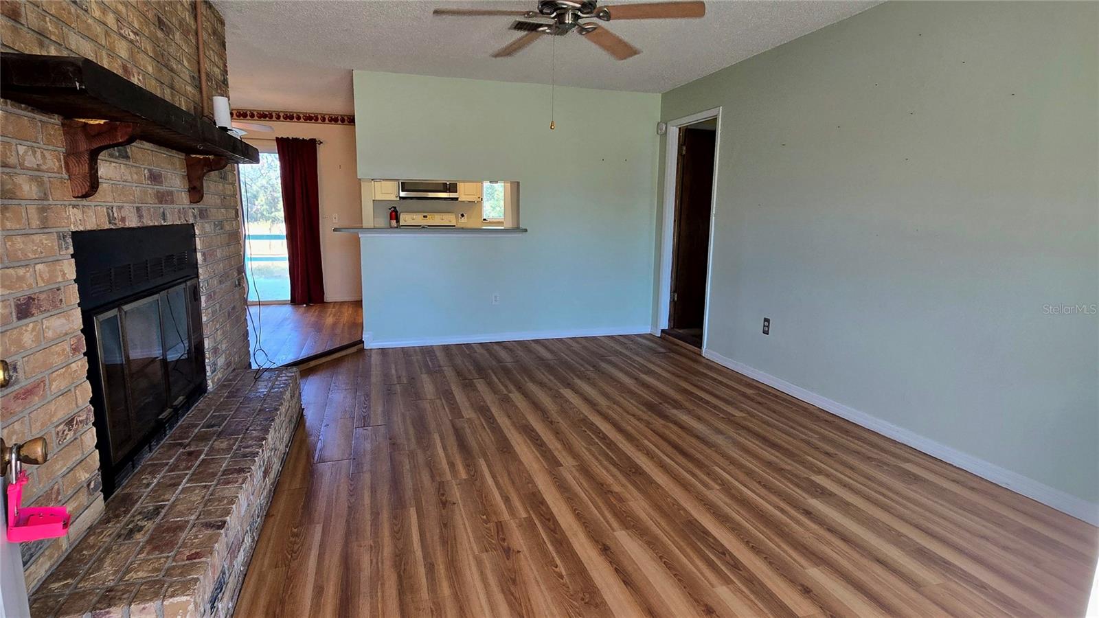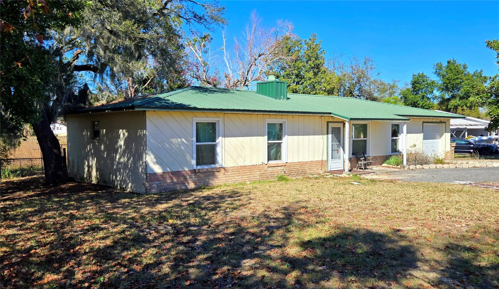 Solid home ready for your personal touches! This 3-bedroom, 2-bathroom property features walk-in closets, a family room with a brick wood-burning fireplace, and a dining area off the kitchen and living room. The galley-style kitchen boasts stainless steel appliances and custom shelving. The main bedroom has direct access to the one-car garage. Cosmetic updates are needed but major updates have already been completed; including: metal roof (2010), new windows (2021), HVAC (2021), electrical boxes (2021), and a smart thermostat. Set on a large lot with a circular driveway and a water view (no access).