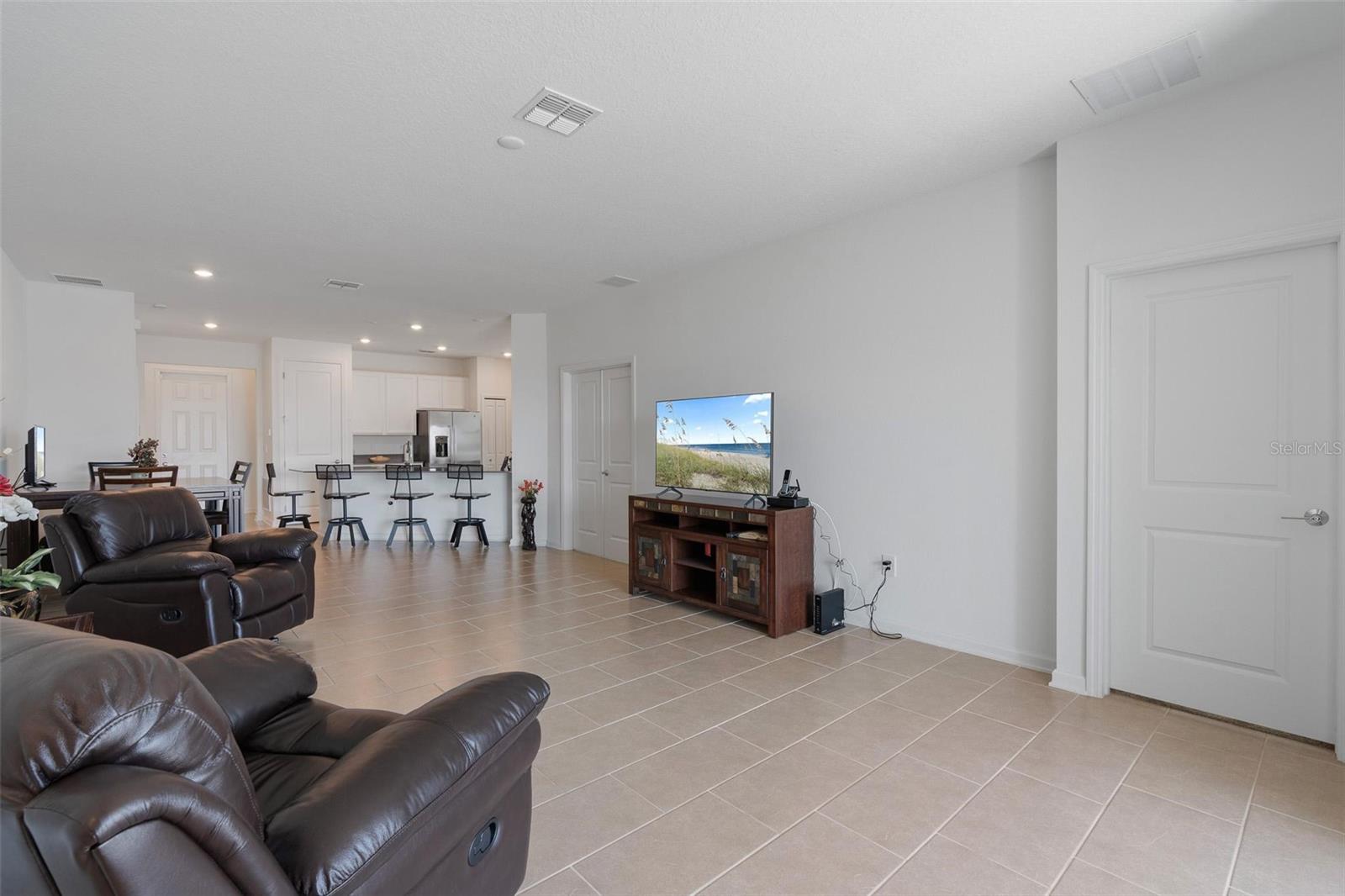 One or more photo(s) has been virtually staged. Welcome to the perfect blend of comfort, flexibility, and modern living! This Lennar Next Gen home in Leesburg features four bedrooms and three bathrooms, thoughtfully designed for multi-generational living. The main home offers three spacious bedrooms and two full bathrooms, with an open-concept layout that seamlessly connects the kitchen, dining, family room and office. Perfect for entertaining and everyday life. Attached to the main residence, the private Next Gen suite includes one bedroom, one bathroom, a cozy living room, a fully equipped kitchenette and washer / Dryer. It has its own separate entrance as well as interior access, providing privacy while still being close to loved ones. Ideal for extended family, guests, or even a private office or studio setup. Enjoy the features of luxury upgrades like quartz countertops, smart home technology, and more. Located in the beautiful community of Leesburg, this home offers easy access to parks, shopping, dining, and recreation, making it a perfect fit for families of all kinds. Discover a home where two generations can comfortably thrive under one roof — without sacrificing privacy or style!