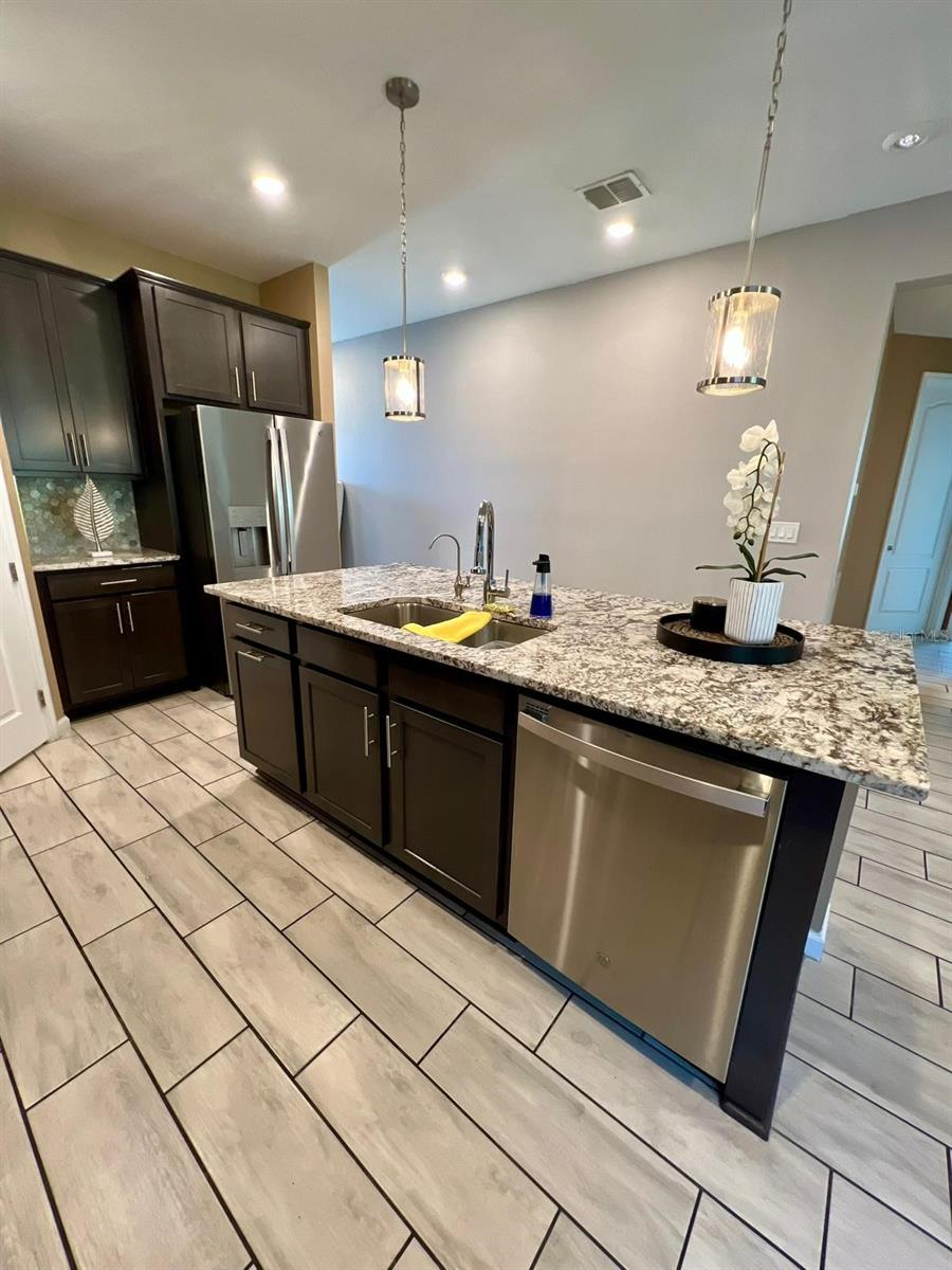 Pacious 4-Bedroom Home with Open Floor Plan and Prime Location This 4-bedroom, 2-bathroom single-family home offers 1,921 sq ft of comfortable living space with a layout designed for everyday living and entertaining. The open floor plan connects the living, dining, and kitchen areas seamlessly. The kitchen features generous cabinet storage and workspace, ideal for home cooks and busy households alike. The primary suite includes a walk-in closet and dual sinks, offering a private retreat. Additional highlights include an enclosed patio, a dedicated laundry room, and a 2-car garage. The spacious backyard backs up to open space, providing privacy and room to relax or play. Located close to shopping, dining, top-rated schools, and major highways, this home combines comfort, space, and convenience in one ideal package.