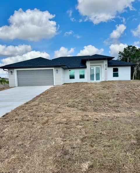 Under Construction. This luxurious new construction home boasts an open floor plan that seamlessly integrates the living, dining, and kitchen areas, creating a bright and inviting environment. The kitchen features granite countertops and stainless-steel appliances. The master suite is a private retreat, complete with its own bathroom, walk-in closet, and a stylish bathtub with a sperate walk-in shower. Throughout the home, you'll find elegant porcelain tiles. Additional features include Accent wall, Modern LED lighting and tray ceilings to accentuate the sleek design of the property. The generous backyard is perfect for family gatherings or relaxation. Conveniently located, this home is just 25-35 minutes from Ft. Myers Beach, approximately an hour from Naples Beach, and only 3 minutes from FL State Highway 82, making travel a breeze.