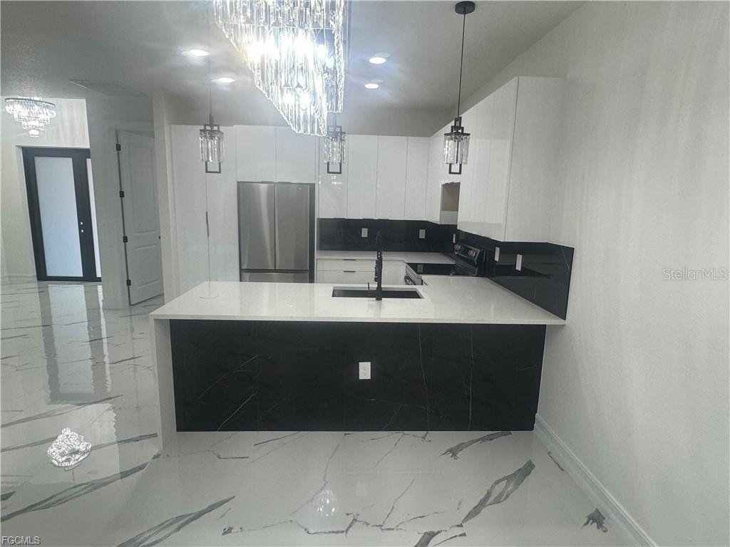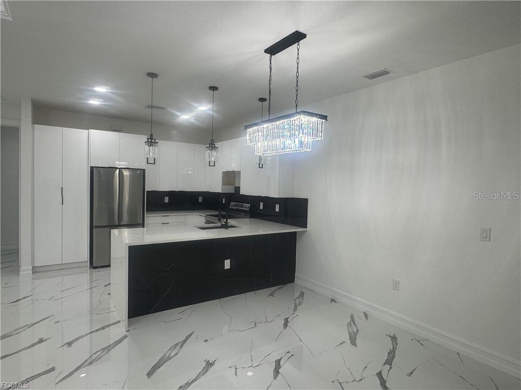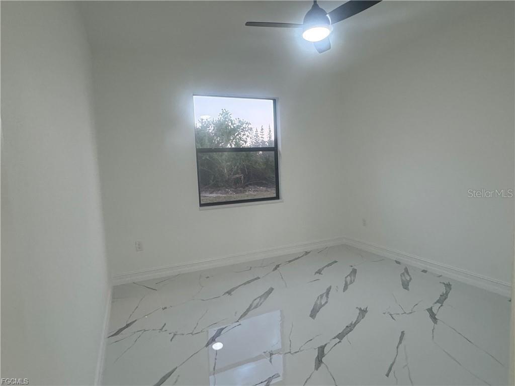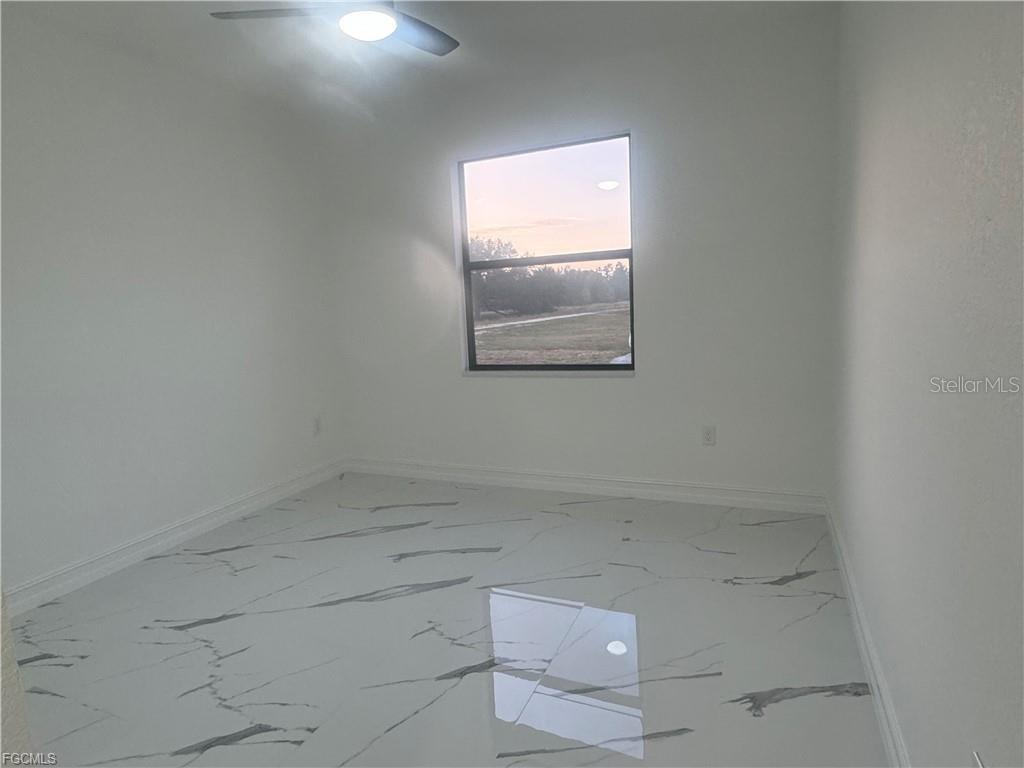 Welcome to an exceptional new construction residence in the heart of Lehigh Acres, where contemporary luxury meets thoughtful design. This impeccably crafted home presents an enticing blend of sophistication and practical living spaces, offering three bedrooms and two well-appointed bathrooms. Step through the elegant double-door entry into a home that exemplifies modern Florida living. The great room design creates an impressive sense of openness, seamlessly connecting living spaces and establishing an ideal environment for both entertaining and daily life. The heart of this home is its beautifully conceived kitchen, featuring a traditional eat-in design enhanced by a generous island that doubles as a casual dining space. Culinary enthusiasts will appreciate the complete suite of new stainless steel appliances, including a refrigerator, dishwasher, microwave, and range. The kitchen's sophisticated aesthetic is elevated by premium quartz countertops, which extend into the bathrooms, maintaining a cohesive design throughout. The primary bedroom suite stands as a private retreat, boasting a spacious walk-in closet and an elegant bathroom with dual sinks. Two additional bedrooms offer comfortable accommodations for family members or guests, while the second full bathroom ensures convenience for all. Throughout the residence, premium porcelain tile flooring creates a seamless flow, reflecting light and contributing to the home's bright, airy atmosphere. All windows feature stylish zebra blinds, adding a touch of modern elegance while offering versatile light control. Safety and durability were paramount in the design, with impact windows and doors providing peace of mind during Florida's seasonal weather. The covered lanai extends the living space outdoors, offering a serene setting for morning coffee or evening relaxation. Professional landscaping enhances the front yard, creating immediate curb appeal and a welcoming approach to your new home. This residence's location proves equally impressive, positioned just blocks from Lee Boulevard and offering swift access to Fort Myers. The neighborhood boasts exceptional educational opportunities, with schools and a public library nearby. Daily conveniences are equally accessible, with shopping and dining options within easy reach. Notably, this property sits outside designated flood zones, offering additional peace of mind. This new construction represents more than just a house; it's an opportunity to embrace a lifestyle where comfort meets convenience, where modern amenities blend seamlessly with practical living, and where every detail has been carefully considered to create an exceptional living experience. Don't let this remarkable opportunity pass you by - schedule your private showing today and step into your future home.
