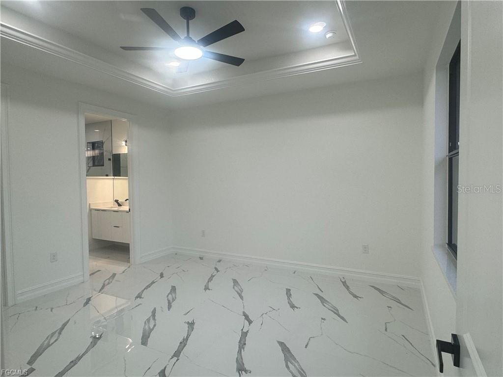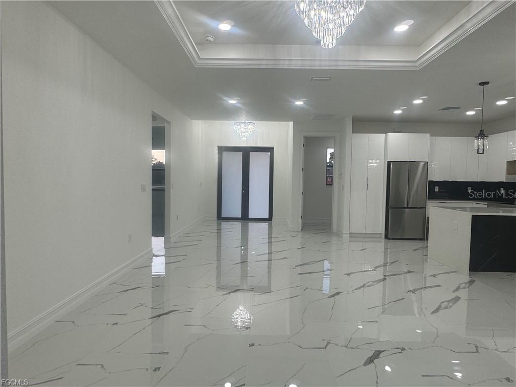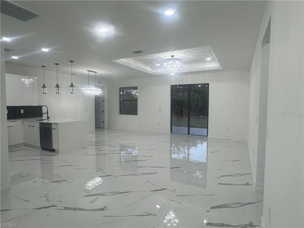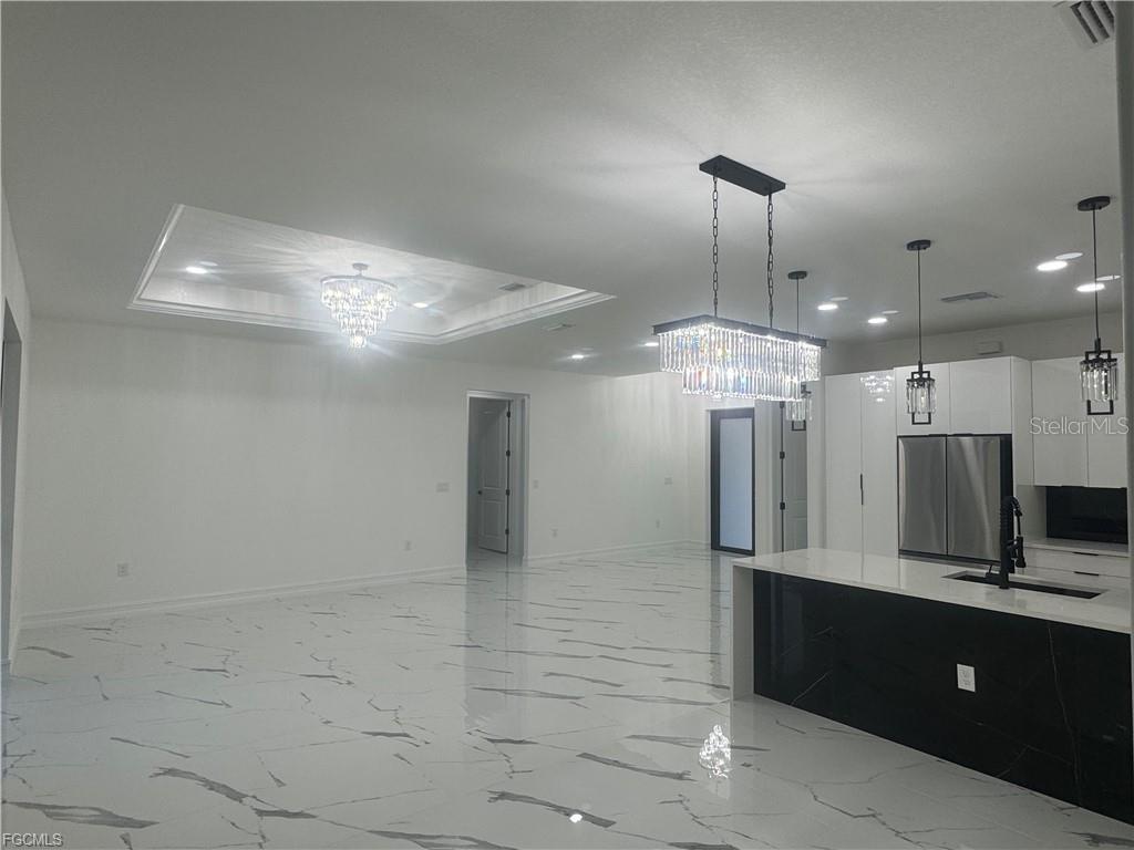 Welcome to an exceptional new construction residence in the heart of Lehigh Acres, where contemporary luxury meets thoughtful design. This impeccably crafted home presents an enticing blend of sophistication and practical living spaces, offering three bedrooms and two well-appointed bathrooms. Step through the elegant double-door entry into a home that exemplifies modern Florida living. The great room design creates an impressive sense of openness, seamlessly connecting living spaces and establishing an ideal environment for both entertaining and daily life. The heart of this home is its beautifully conceived kitchen, featuring a traditional eat-in design enhanced by a generous island that doubles as a casual dining space. Culinary enthusiasts will appreciate the complete suite of new stainless steel appliances, including a refrigerator, dishwasher, microwave, and range. The kitchen's sophisticated aesthetic is elevated by premium quartz countertops, which extend into the bathrooms, maintaining a cohesive design throughout. The primary bedroom suite stands as a private retreat, boasting a spacious walk-in closet and an elegant bathroom with dual sinks. Two additional bedrooms offer comfortable accommodations for family members or guests, while the second full bathroom ensures convenience for all. Throughout the residence, premium porcelain tile flooring creates a seamless flow, reflecting light and contributing to the home's bright, airy atmosphere. All windows feature stylish zebra blinds, adding a touch of modern elegance while offering versatile light control. Safety and durability were paramount in the design, with impact windows and doors providing peace of mind during Florida's seasonal weather. The covered lanai extends the living space outdoors, offering a serene setting for morning coffee or evening relaxation. Professional landscaping enhances the front yard, creating immediate curb appeal and a welcoming approach to your new home. This residence's location proves equally impressive, positioned just blocks from Lee Boulevard and offering swift access to Fort Myers. The neighborhood boasts exceptional educational opportunities, with schools and a public library nearby. Daily conveniences are equally accessible, with shopping and dining options within easy reach. Notably, this property sits outside designated flood zones, offering additional peace of mind. This new construction represents more than just a house; it's an opportunity to embrace a lifestyle where comfort meets convenience, where modern amenities blend seamlessly with practical living, and where every detail has been carefully considered to create an exceptional living experience. Don't let this remarkable opportunity pass you by - schedule your private showing today and step into your future home.