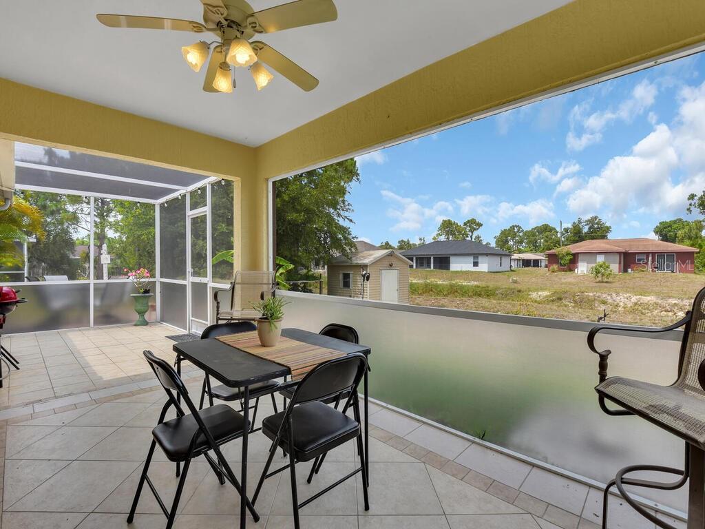 Discover this charming single-family home in Lehigh Acres, featuring 3 bedrooms and 2 bathrooms. With tile floors throughout and cathedral ceilings in the living area, this home offers a bright and airy feel. The kitchen is equipped with stainless steel appliances, granite countertops, and an eat-in area, seamlessly opening to the living space and a sliding door leading to the enclosed patio/lanai and outdoor area. Enjoy an abundance of natural sunlight and a seamless floorplan. Recent updates include a new roof, new AC compressors, and a new water heater. The outdoor area features pavers, a lovely patio, and a shed, offering great potential for creating your outdoor oasis. Located near all that SWFL has to offer and with no HOA fees, this home is a perfect blend of comfort and convenience. Don’t miss the opportunity to make this delightful property your own!