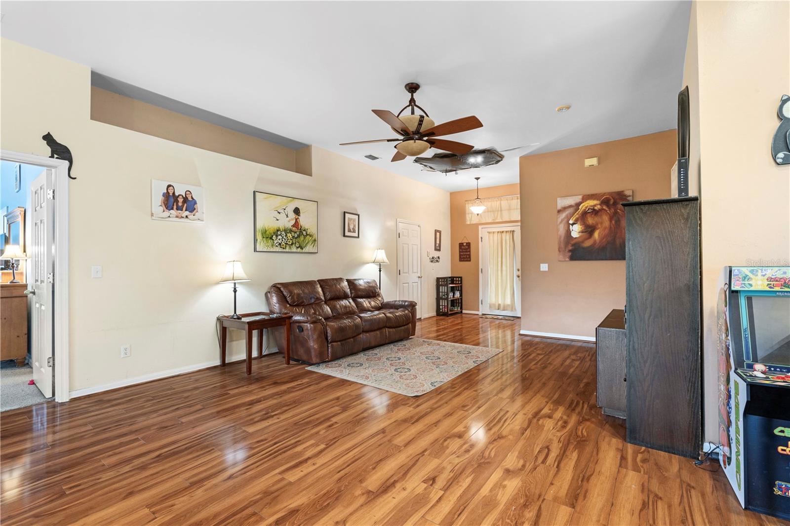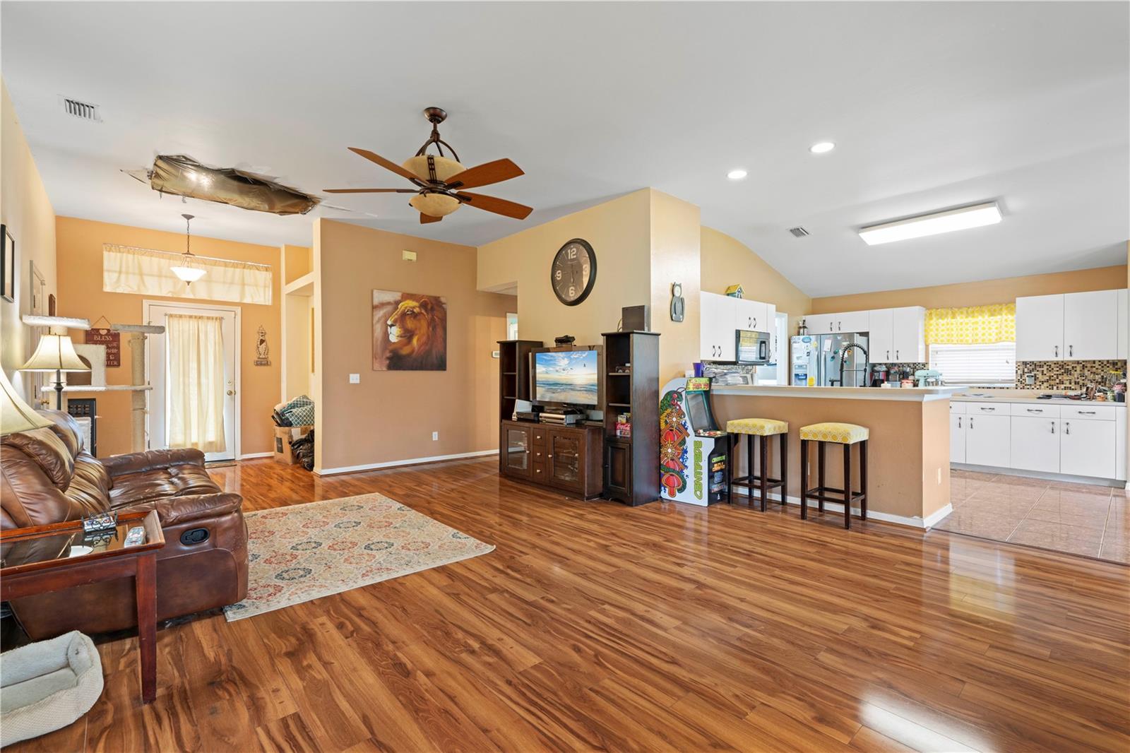 VARSITY LAKES HOME W/TONS OF POTENTIAL! This 3 bed/2 bath home in the gated community of Varsity Lakes is looking for a new owner. Home needs a bit of TLC but could be an absolute stunner! The interior boasts engineered hardwood floors throughout main living area. Architectural details include soaring cathedral ceilings, an open kitchen w/adjacent breakfast room & lots of natural light. Kitchen has stainless steel appliances, a breakfast bar & closet pantry. The split bedroom layout offers a spacious master suite w/two large walk-in closets, large en-suite bath w/dual sinks, glass-enclosed shower & garden bath. Each guest bedroom features a large, walk-in closet. The guest bath shared by the guest rooms offers a combination tub/shower. An interior laundry room has full-sized washer & dryer. A screened balcony provides a chance to sit outside enjoying Florida living unbothered by pests or weather. Large backyard has room for pool, if desired. Varsity Lakes is a deed restricted, gated community w/low HOA fees. The community boasts a well-maintained playground and underground utilities. Most furniture in the home conveys - ask for details. Make an appointment today.