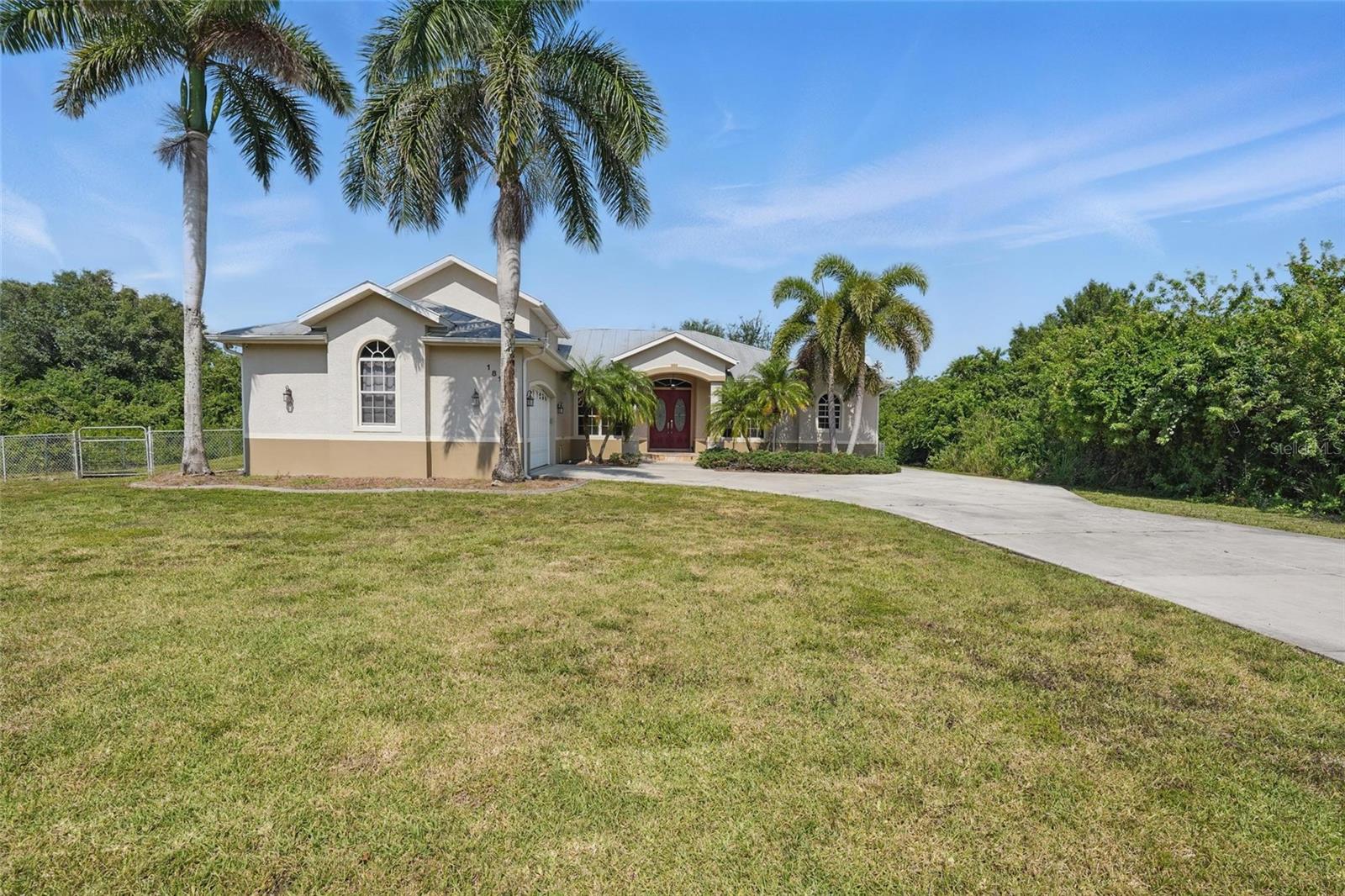 Under contract-accepting backup offers. Discover space, comfort, and flexibility in this expansive two-story pool home, nestled in a quiet Lehigh Acres neighborhood. With nearly 3,000 sq ft, 4 bedrooms + a den, and multiple living areas, this layout is ideal for families, remote work, or entertaining. Rich hardwood and tile run throughout the property. The well-appointed kitchen features high-end appliances and ample storage, flowing into a bright and welcoming interior. Step outside to a screened-in pool and fully fenced yard—perfect for relaxing or hosting. A standout feature is the large 220V-powered outbuilding, ideal for a workshop, studio, or guest space. Additional perks include a 5-car garage, and spacious lot. Conveniently located near schools, shopping, and major roads, this unique property blends rural charm with modern convenience. Schedule your tour today!