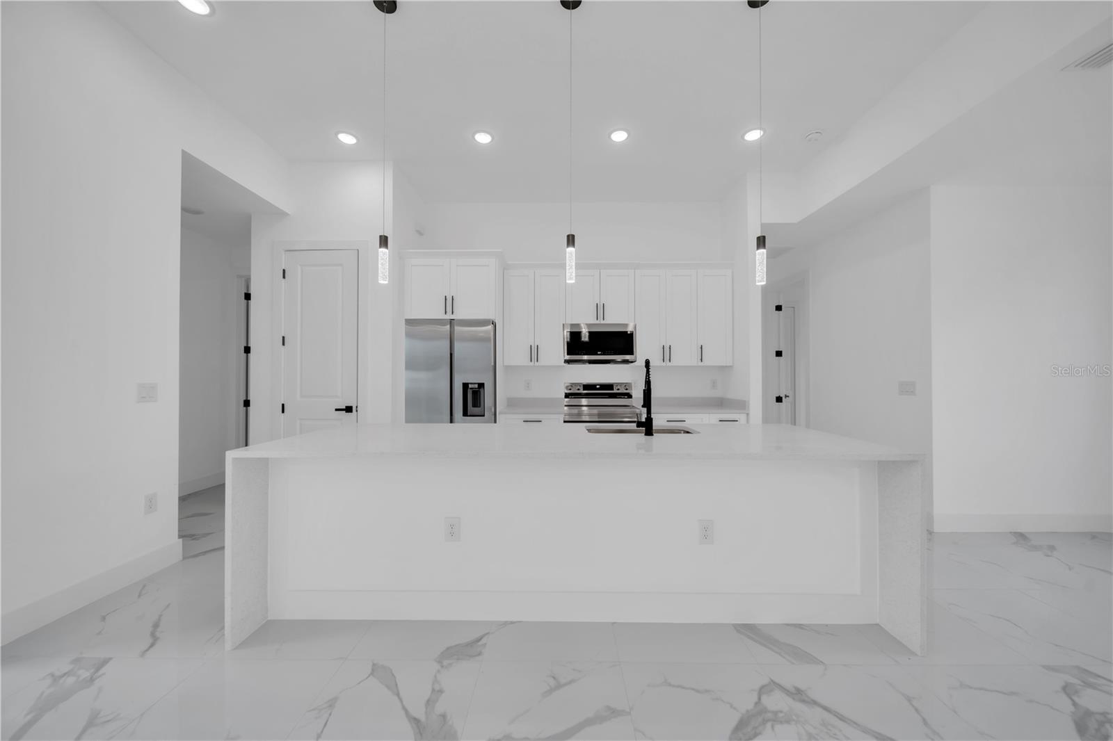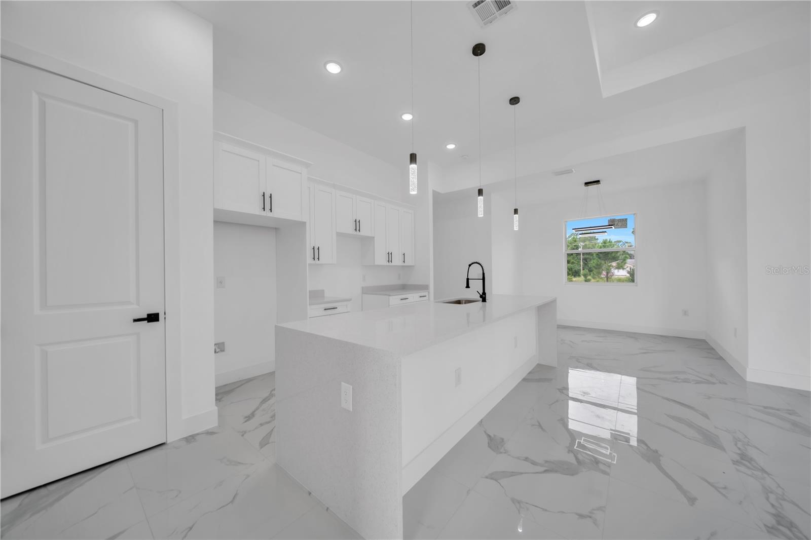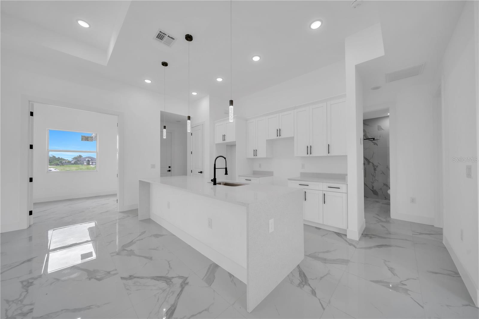 Beautifully crafted new construction offering the perfect blend of style, function, and location. This 3-bedroom plus den, 3-bathroom home features sleek all-white tile flooring and an open-concept layout ideal for both daily living and entertaining. The kitchen showcases a massive island with sparkling white granite countertops and white shaker cabinets, offering a bright, modern aesthetic. The third bedroom includes a private en-suite bathroom—perfect for guests or extended family. Step outside to a fully tiled lanai, thoughtfully designed with space to build your dream outdoor kitchen. Located just minutes from SR 82, this home offers easy access to Fort Myers, Naples, shopping, and dining. Seller is offering $10,000 toward buyer's closing costs and prepaids, making this an incredible opportunity to move into a brand-new home with added savings. Don’t miss out on this must-see property in one of Lehigh Acres’ most convenient and fast-growing areas.
