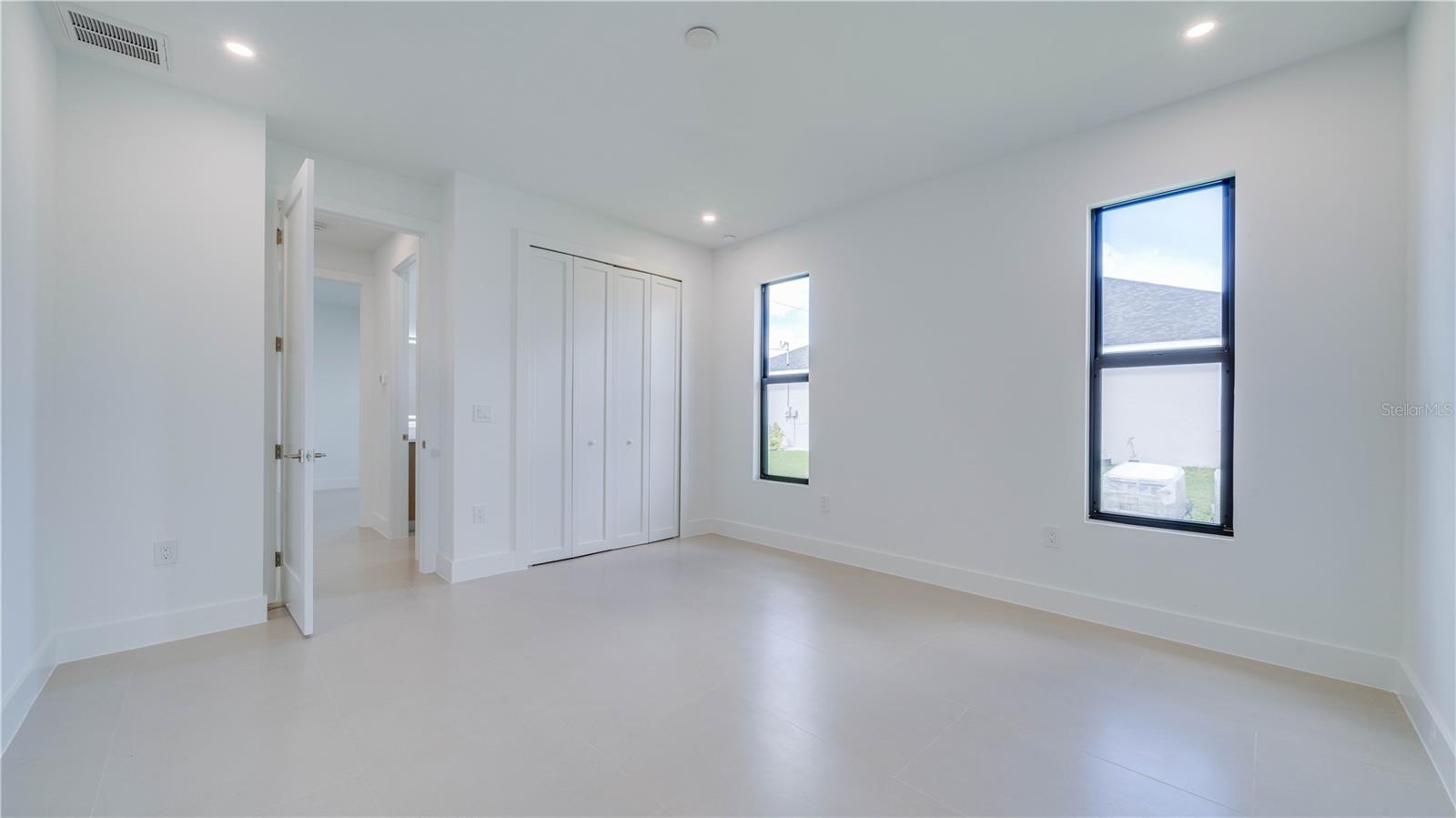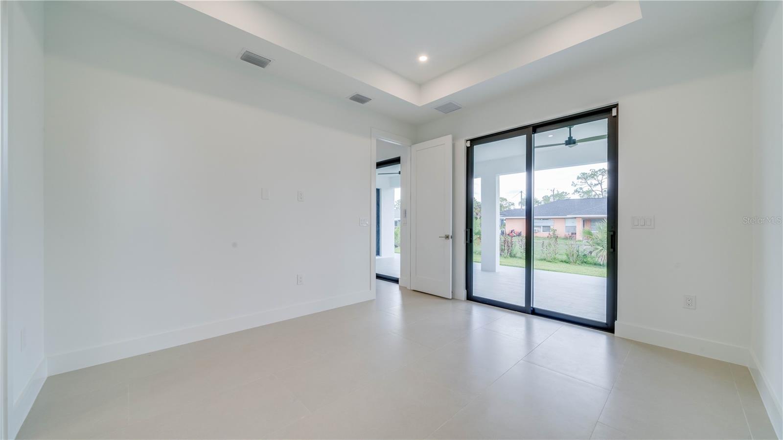 One or more photo(s) has been virtually staged. ** BRAND NEW CONSTRUCTION ON A CORNER LOT ** MOTIVATED SELLER WILLING TO CONTRIBUTE TO CLOSING COSTS ** BUILDER WARRANTY INCLUDED ** Step into a level of craftsmanship that rises above typical new construction. This nearly 1,900 sq ft custom home sits proudly on a corner lot and blends modern design with thoughtful detail at every turn. Sleek tile floors, soaring 9' ceilings with 10' tray accents, and 8' doors create an airy, upscale feel throughout the open-concept layout. The split floor plan includes 3 bedrooms (2 ensuites), a spacious den (easily converted to 4th bedroom) with pocket sliders, and 3 full bathrooms with custom vanities, backlit mirrors, and tiled showers. The primary suite features a spa-like bath and large custom closet, while the second bedroom serves as a cabana-style ensuite—ideal for guests or future pool access. All closets include custom built-ins. The chef’s kitchen offers European-style cabinetry, quartz countertops, a waterfall island, under-cabinet lighting, a large pantry, and Samsung stainless steel appliances. The dining area, great room, and primary bedroom open through 8' sliders to a spacious lanai with matching tile and outdoor kitchen hookups—perfect for indoor-outdoor living. Additional highlights include impact windows and doors, an epoxy-finished garage, a laundry room with utility sink and Samsung washer and dryer, and a unique grass-interlaced driveway. The backyard offers plenty of space for a pool, and no flood insurance is required. A home with premium finishes, thoughtful design, and standout quality—offering exceptional value in today’s market!