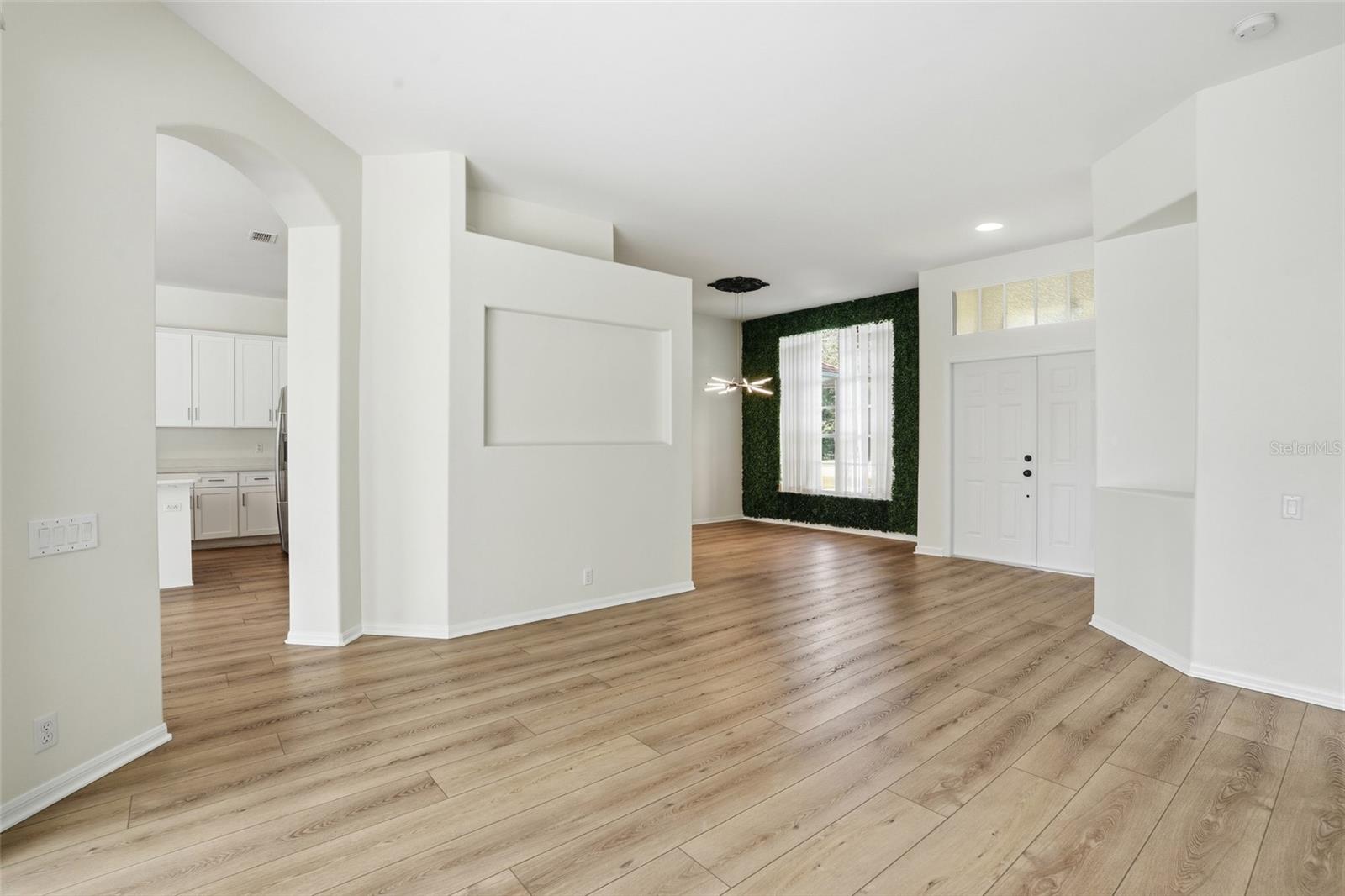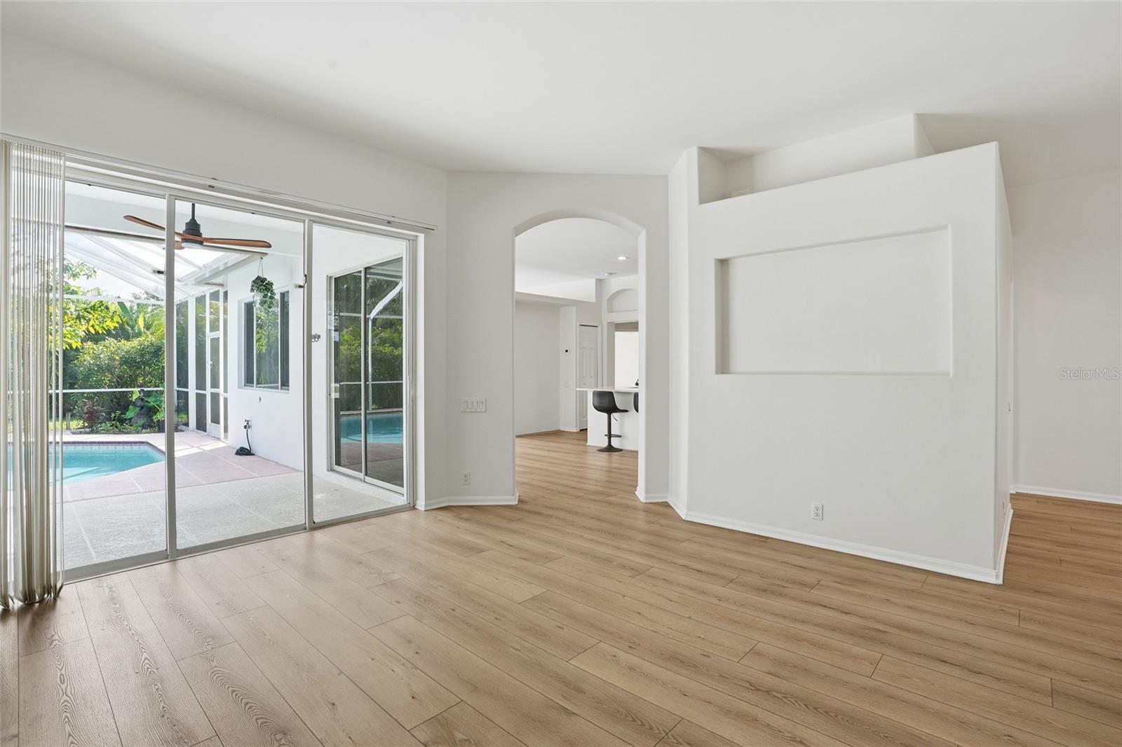Welcome to this beautifully updated 3-bedroom, 2-bath home in the Meadows Edge community — where comfort, style, and convenience meet. Step inside to discover an inviting open-concept layout, freshly painted in neutral tones and enhanced by new luxury vinyl flooring that brightens every room. The kitchen features brand-new shaker cabinets, sleek countertops, stainless steel appliances, and recessed lighting for a warm, modern touch. The spacious living and dining areas flow seamlessly together, creating the perfect setting for family gatherings or relaxed evenings at home. Both bathrooms have been refreshed with new cabinets, countertops, faucets, and flooring, offering a clean and contemporary feel. Step outside to your private backyard space surrounded by mature shrubs for added privacy ideal for pets, play, or weekend barbeque. Enjoy your screened-in patio with a heated, in-ground pool while taking in the peaceful, wooded views. Additional updates include professional interior and exterior paint, new front doors and hardware, and fresh landscaping with mulch, giving this home true move-in-ready appeal. Conveniently located with quick access to schools, shopping, and dining, this home offers the perfect balance of tranquility and accessibility. Don’t miss your chance to own this exceptional property on a quiet, private lot in Lehigh Acres. Schedule your private showing today!