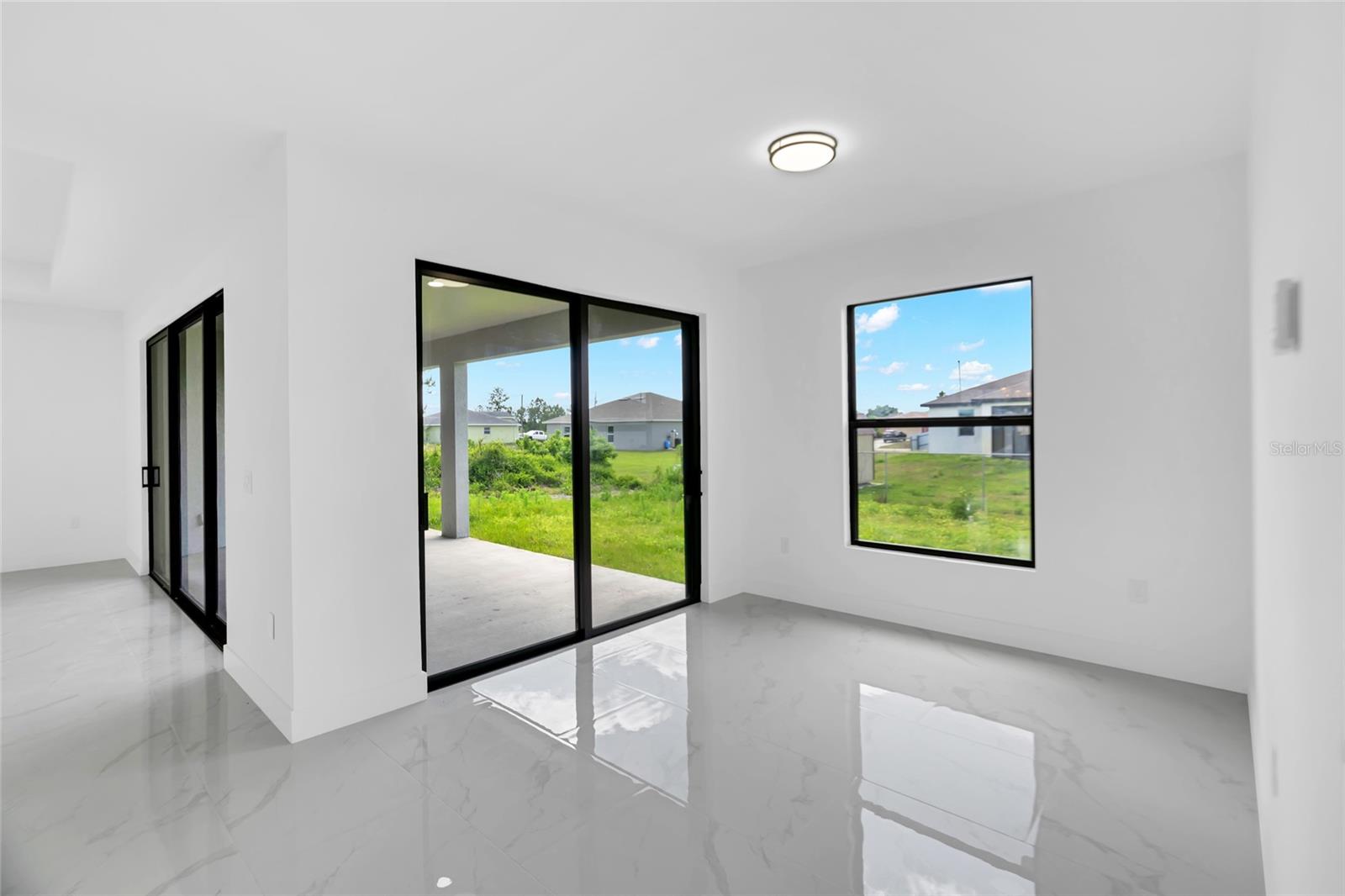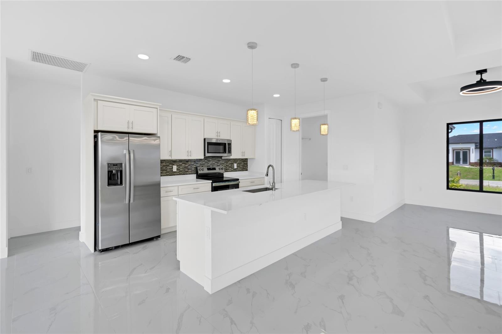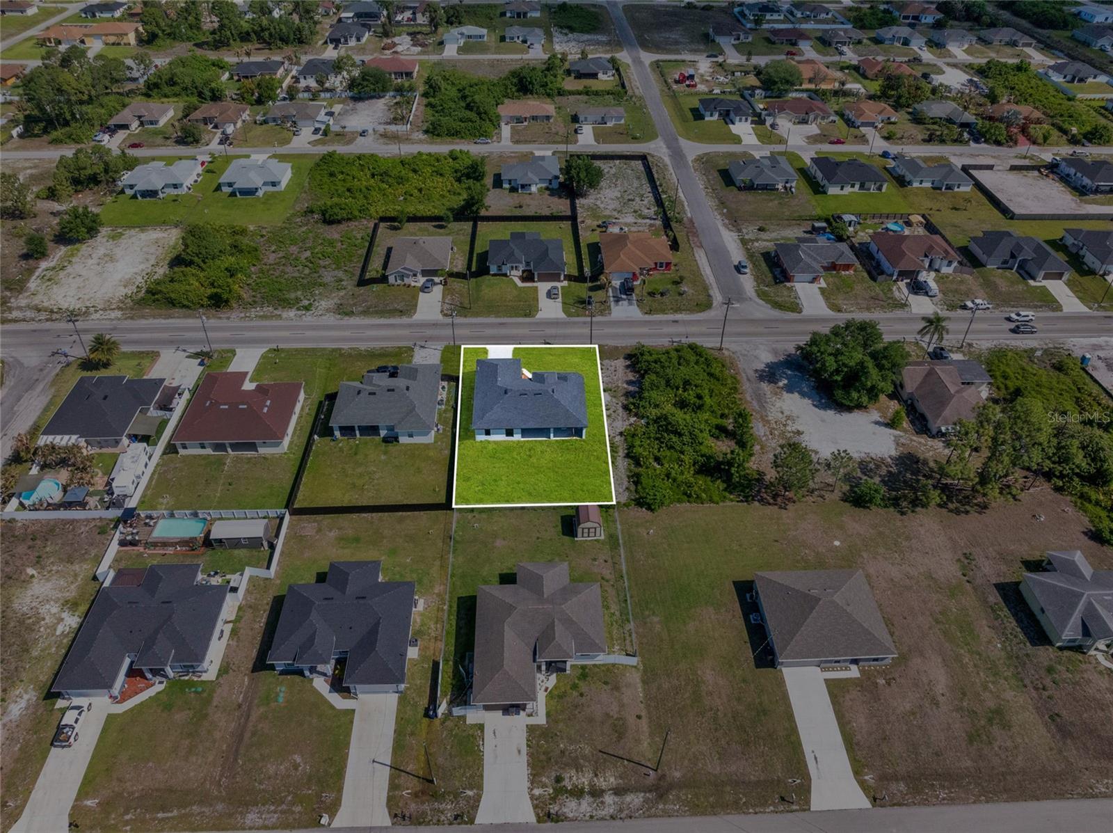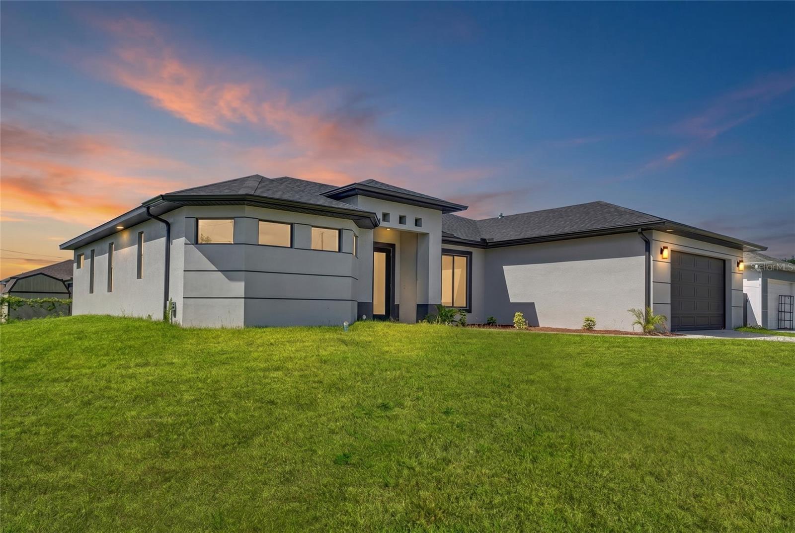 One or more photo(s) has been virtually staged. Stunning new construction home offering 3 bedrooms, 2 bathrooms, and over 2,000 sq ft of thoughtfully designed living space on a spacious 0.25-acre lot. This modern residence features a bright open concept layout with high ceilings, oversized tile flooring, and abundant natural light throughout. The kitchen is the centerpiece of the home, complete with a large center island, sleek cabinetry, stainless steel appliances, and designer pendant lighting. It is perfect for both everyday living and entertaining. The living and dining areas flow seamlessly, creating a clean and contemporary feel. The primary suite offers a private retreat with a spa inspired bathroom featuring a freestanding soaking tub, dual vanities, and a beautifully designed walk in shower. Secondary bedrooms are generously sized and ideal for family, guests, or a home office. Step outside to a spacious covered lanai, perfect for outdoor living and entertaining year round. This inviting space features a ceiling fan for added comfort and provides plenty of room for seating, dining, and future customization while overlooking the backyard. The backyard also features newly planted lemon and tangerine trees, adding a fresh and functional touch to the outdoor space. Additional highlights include impact resistant windows and doors, a spacious 2 car garage, a whole home water filtration system, and an irrigation sprinkler system to keep the landscaping lush and maintained year round. Conveniently located near major roads, shopping, and dining, with easy access to the pristine beaches of Fort Myers and Naples. Approximately 15 minutes to Southwest Florida International Airport. Enjoy the freedom of homeownership with no HOA or association restrictions.