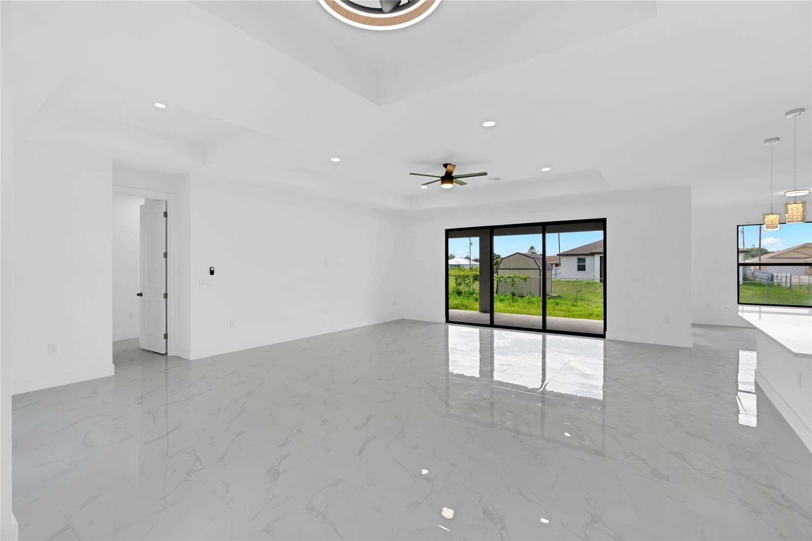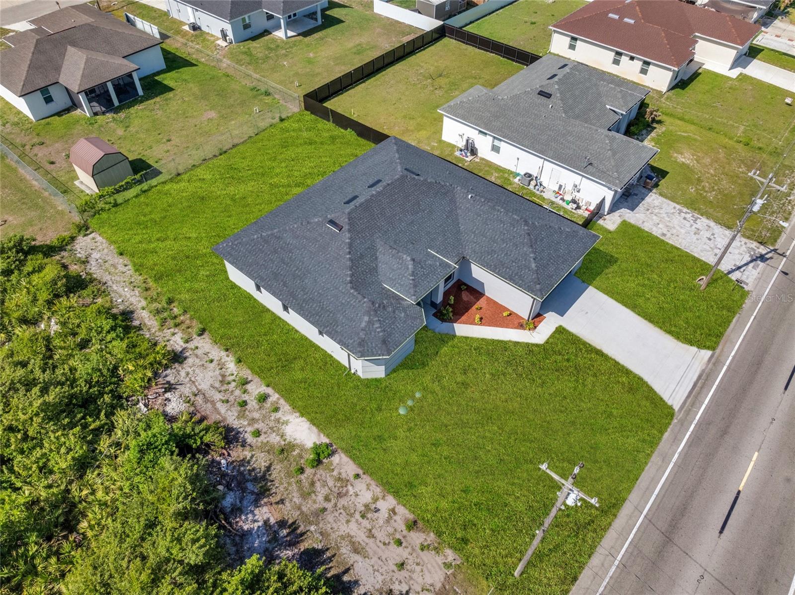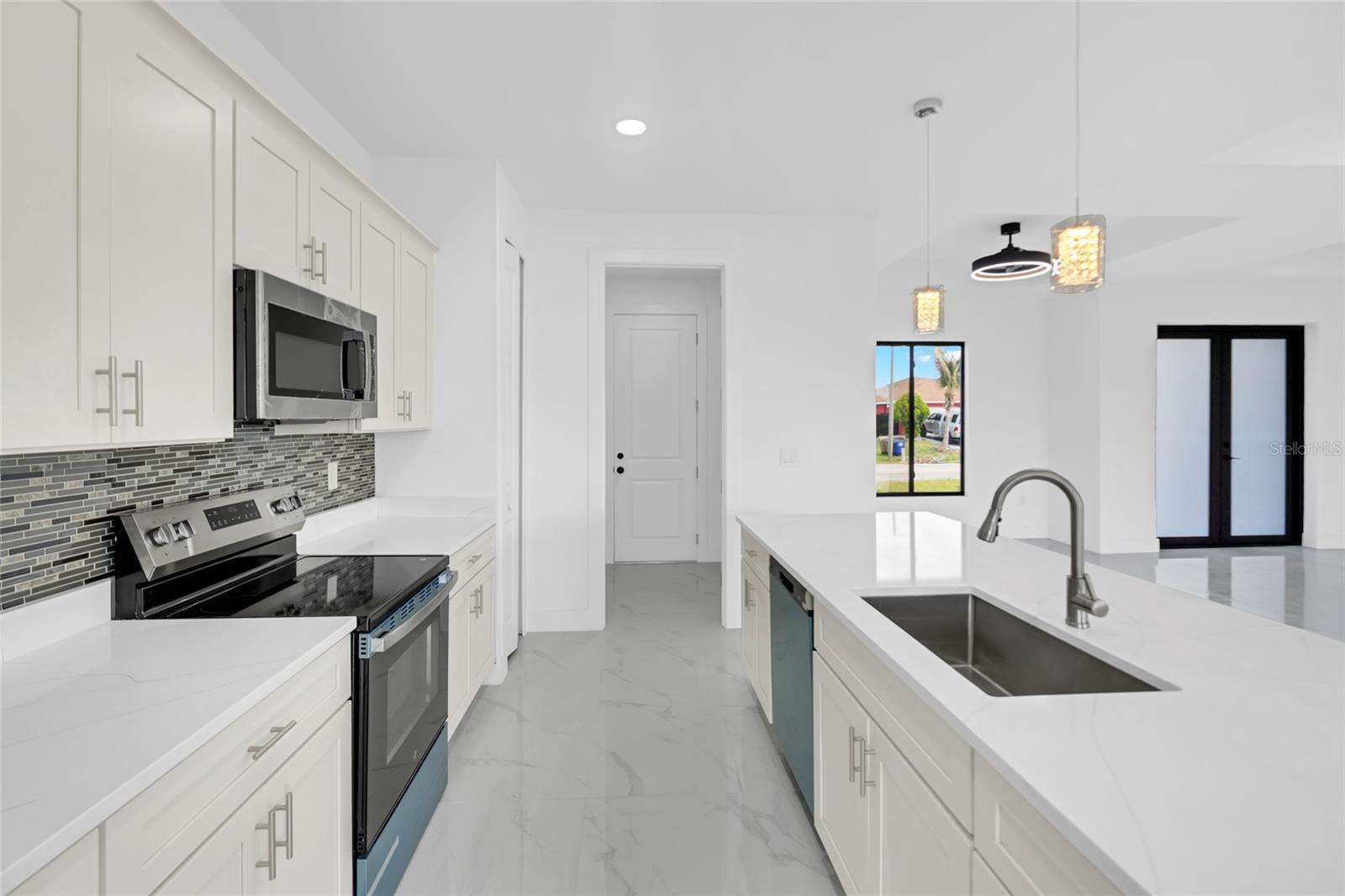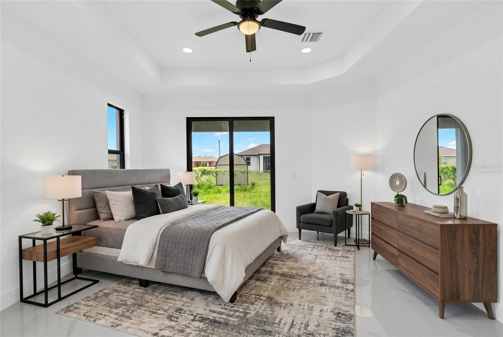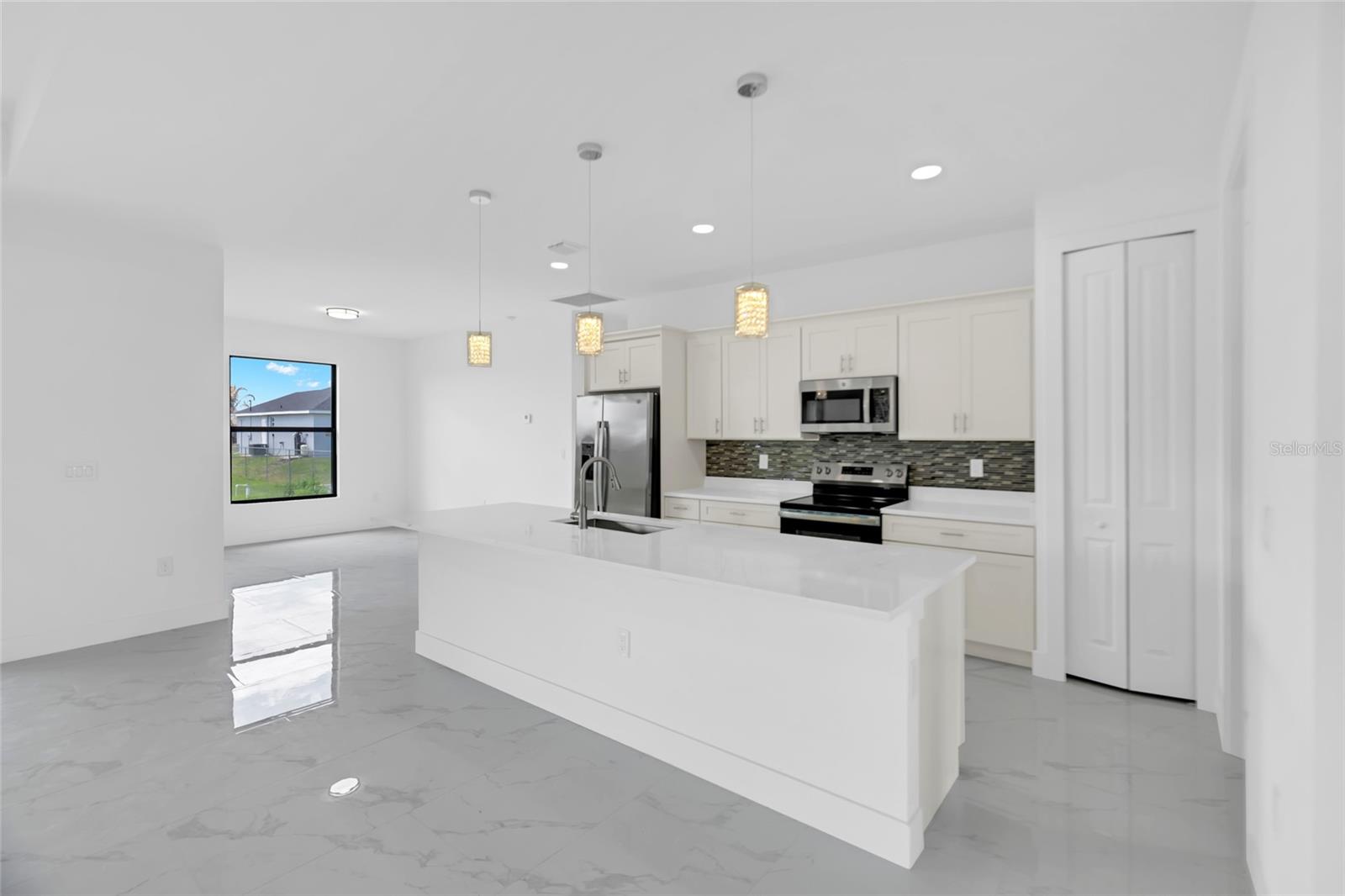 One or more photo(s) has been virtually staged. Stunning new construction home offering 3 bedrooms, 2 bathrooms, and over 2,000 sq ft of thoughtfully designed living space on a spacious 0.25-acre lot. This modern residence features a bright open concept layout with high ceilings, oversized tile flooring, and abundant natural light throughout. The kitchen is the centerpiece of the home, complete with a large center island, sleek cabinetry, stainless steel appliances, and designer pendant lighting. It is perfect for both everyday living and entertaining. The living and dining areas flow seamlessly, creating a clean and contemporary feel. The primary suite offers a private retreat with a spa inspired bathroom featuring a freestanding soaking tub, dual vanities, and a beautifully designed walk in shower. Secondary bedrooms are generously sized and ideal for family, guests, or a home office. Step outside to a spacious covered lanai, perfect for outdoor living and entertaining year round. This inviting space features a ceiling fan for added comfort and provides plenty of room for seating, dining, and future customization while overlooking the backyard. The backyard also features newly planted lemon and tangerine trees, adding a fresh and functional touch to the outdoor space. Additional highlights include impact resistant windows and doors, a spacious 2 car garage, a whole home water filtration system, and an irrigation sprinkler system to keep the landscaping lush and maintained year round. Conveniently located near major roads, shopping, and dining, with easy access to the pristine beaches of Fort Myers and Naples. Approximately 15 minutes to Southwest Florida International Airport. Enjoy the freedom of homeownership with no HOA or association restrictions.