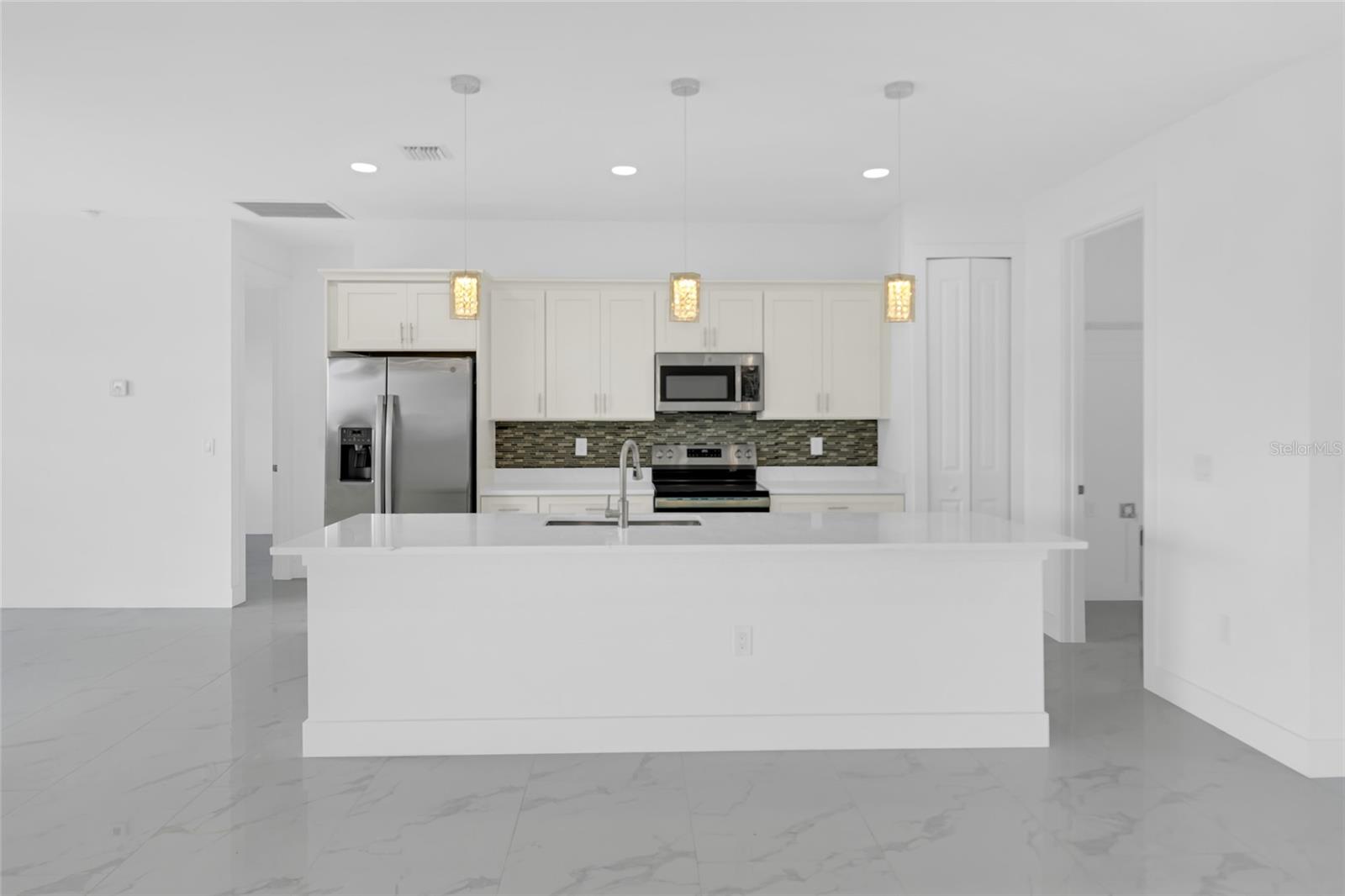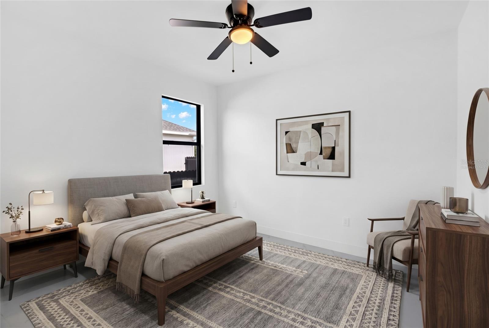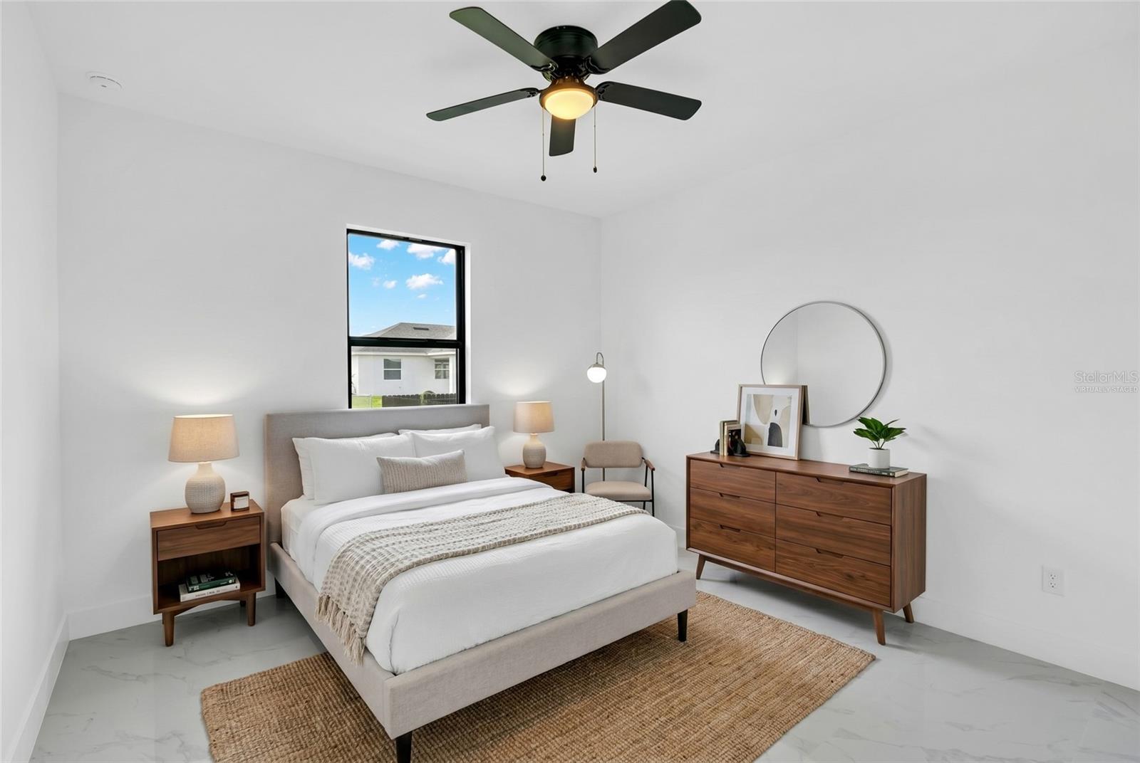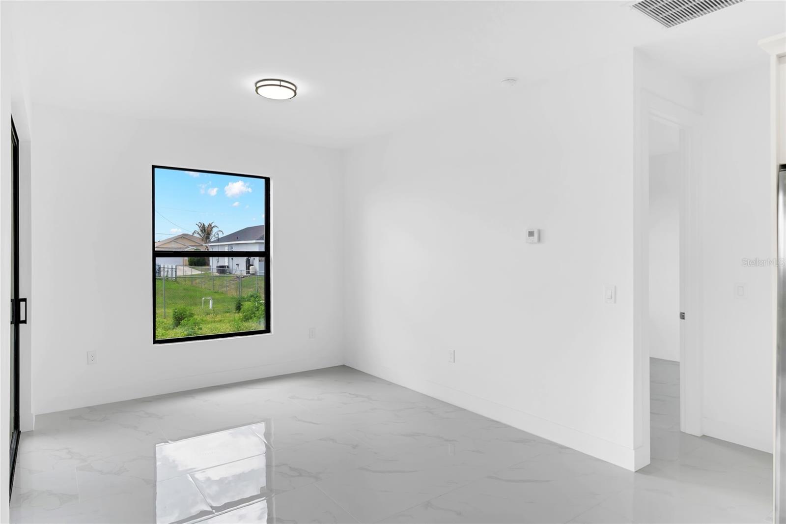 One or more photo(s) has been virtually staged. Stunning new construction home offering 3 bedrooms, 2 bathrooms, and over 2,000 sq ft of thoughtfully designed living space on a spacious 0.25-acre lot. This modern residence features a bright open concept layout with high ceilings, oversized tile flooring, and abundant natural light throughout. The kitchen is the centerpiece of the home, complete with a large center island, sleek cabinetry, stainless steel appliances, and designer pendant lighting. It is perfect for both everyday living and entertaining. The living and dining areas flow seamlessly, creating a clean and contemporary feel. The primary suite offers a private retreat with a spa inspired bathroom featuring a freestanding soaking tub, dual vanities, and a beautifully designed walk in shower. Secondary bedrooms are generously sized and ideal for family, guests, or a home office. Step outside to a spacious covered lanai, perfect for outdoor living and entertaining year round. This inviting space features a ceiling fan for added comfort and provides plenty of room for seating, dining, and future customization while overlooking the backyard. The backyard also features newly planted lemon and tangerine trees, adding a fresh and functional touch to the outdoor space. Additional highlights include impact resistant windows and doors, a spacious 2 car garage, a whole home water filtration system, and an irrigation sprinkler system to keep the landscaping lush and maintained year round. Conveniently located near major roads, shopping, and dining, with easy access to the pristine beaches of Fort Myers and Naples. Approximately 15 minutes to Southwest Florida International Airport. Enjoy the freedom of homeownership with no HOA or association restrictions.