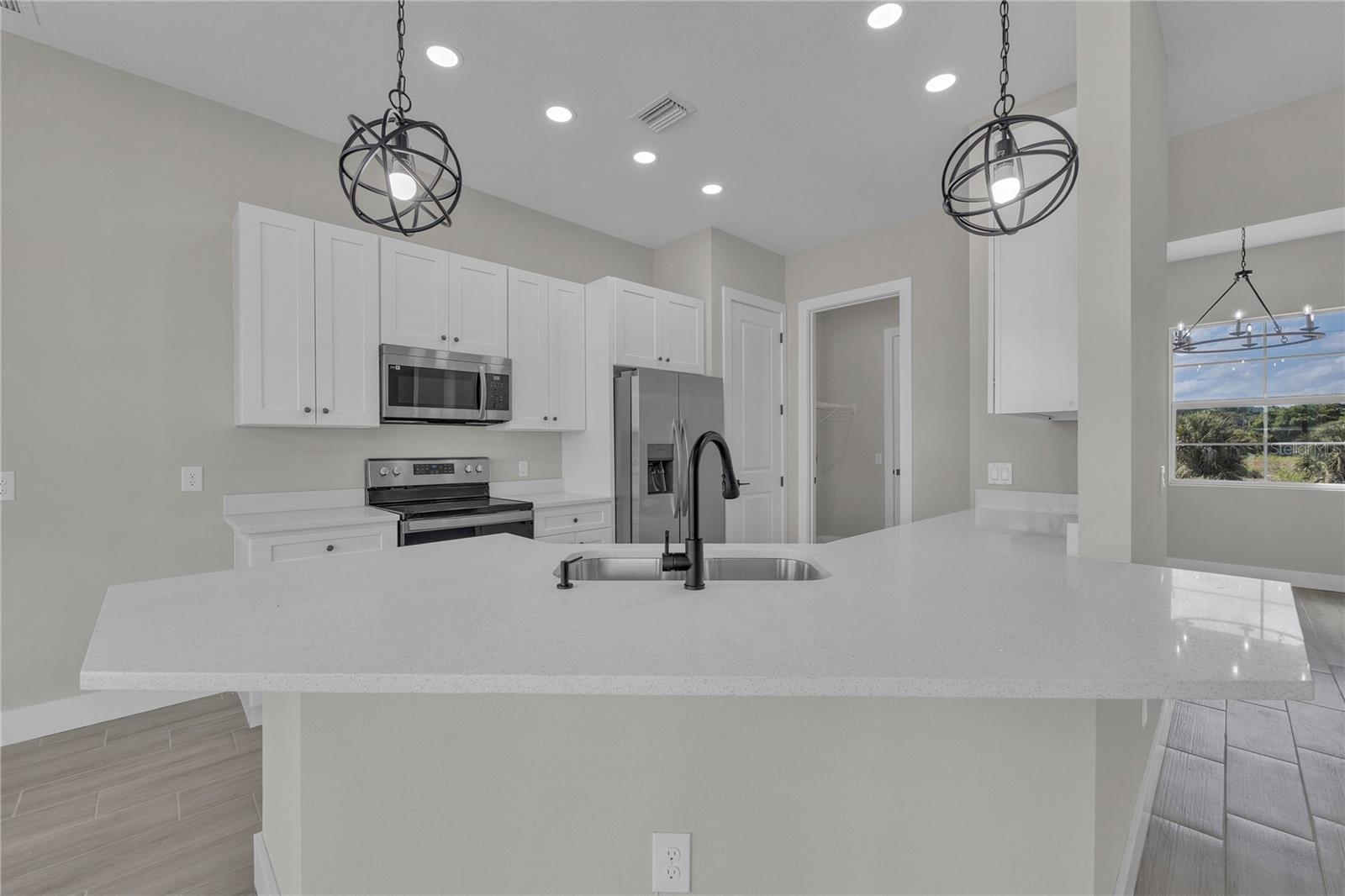 One or more photo(s) has been virtually staged. NO MONEY? NO PROBLEM! BUILDER IS OFFERING QUALIFIED BUYERS CLOSING COSTS AND LOWER INTEREST RATE INCENTIVES on this custom-built construction located in the heart of the Greenbriar neighborhood of Lehigh Acres. The Hampton model stands out among Lehigh's current construction offerings, featuring 3 bedrooms, 2 bathrooms, a DEN, and an oversized garage on an OVER-SIZED .35 ACRE LOT. With neutral colors, high ceilings, 8ft doors and TILE FLOORING THROUGHOUT. This home boasts an upgraded kitchen with Moen fixtures, GRANITE countertops, shaker cabinets, BIG PANTRY and stainless steel appliances. The primary bathroom includes dual sinks, a BATHTUB, and a WALK-IN shower, while spacious WALK-IN closets can be found in the bedrooms. LOCATED IN FLOOD ZONE "X', SO NO FLOOD INSURANCE REQUIRED. 430 Mercedes Ct. is also available. Please note that all interior and some exterior photos are from a completed model, so colors may vary.