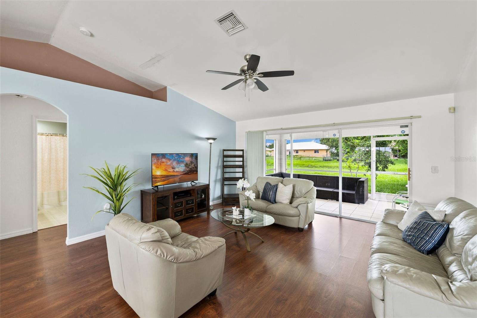 Welcome to this meticulously maintained 1,418 sqft gem nestled in the desirable community of Lehigh Acres. This 3-bedroom, 2-bathroom home is a perfect blend of modern comfort and thoughtful design, ready to offer you a lifestyle of convenience and tranquility. As you approach the home, you'll immediately notice the brand new roof installed in 2023, providing peace of mind for years to come. Step inside to discover an inviting open floor plan accentuated by abundant natural light streaming through impact windows, ensuring both safety and energy efficiency. The heart of this home is its brand new AC system, installed in 2022, guaranteeing optimal indoor comfort throughout the seasons. The spacious living area flows seamlessly into the well-appointed kitchen, making it an ideal space for both everyday living and entertaining guests. Retreat to the master suite, a haven of relaxation with its own private bathroom. Two additional bedrooms offer ample space for family, guests, or a home office. A highlight of this property is the fully screened-in lanai, perfect for enjoying the serene Florida evenings without the nuisance of insects. The two-car garage is a versatile space, equipped with its own AC unit, making it suitable for a workshop, additional storage, or even a home gym. You'll also appreciate the dedicated laundry room, adding to the home's practicality. Outside, the comprehensive water filter system installed in 2022 ensures that you have access to clean and safe water for all your needs. This home truly combines modern amenities with comfort and style, making it a must-see. Don't miss the opportunity to make this beautiful house your new home.