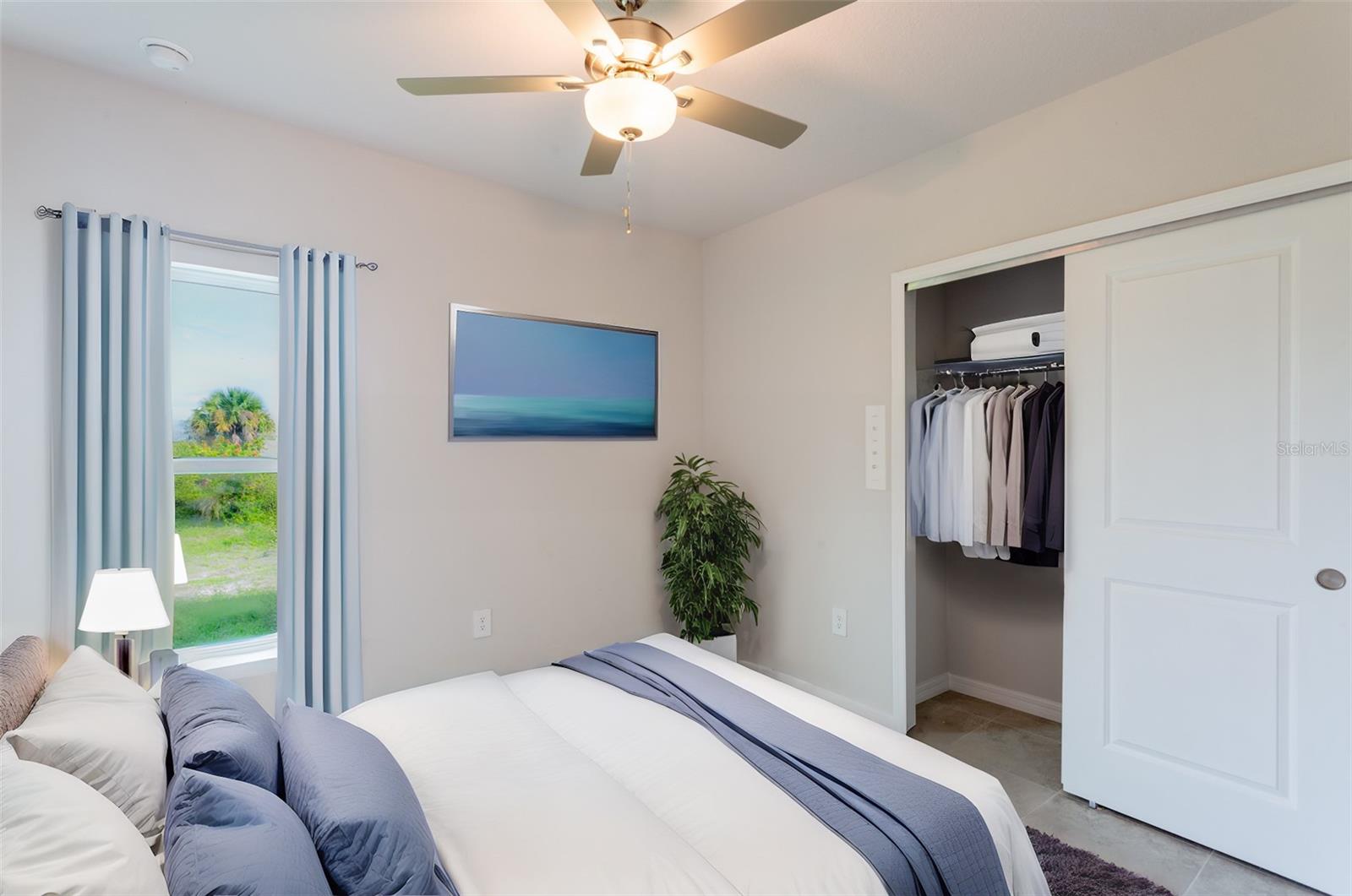 ***NEW CONSTRUCTION, NO WAIT, MOVE IN READY!*** Elevate your lifestyle with the opulence of the Sanibel floorplan presented by Carpenter Homes—a masterpiece within the Florida Living Series, certified by the Florida Green Building Coalition (FGBC). This home features 4 bedrooms and 2 full bathrooms. This dream home is designed and built to immerse you in luxury! As you enter, a beautiful kitchen welcomes you, with an expansive, oversized bar that seamlessly flows into the living and dining area. The finesse of soft-close, Shaker Stained Basalt 30" cabinets and upgraded Crema Pearl granite countertops add a functional touch of luxury to the kitchen. Kitchen upgrades include a Moen Integra chrome kitchen faucet, garbage disposal, and sleek stainless steel energy efficient appliances. This home exudes sophistication with a vaulted ceiling that unveils a spacious lanai, creating an indoor-outdoor haven. Additionally, Carpenter Homes provides an upgraded lighting package including Kemal Bronze pendants over the kitchen bar, and Oslo brushed nickel vanity fixtures in both bathrooms, accenting the overall lighting design. Brushed nickel finish ceiling fans in each bedroom, as well as the great room, helps to circulate air flow and keep you cool in the Florida weather. Complimenting the expansive living area is Magnisi 18x18” beige ceramic tile flooring. The Owner's suite is a sanctuary of indulgence, showcasing dual sinks, impeccably tiled Magnisi 8x12” white walls in the shower, and a generously sized walk-in closet. The home boasts Magnisi 8x12” white upgraded tiled walls in in the second bath/shower, a Crema Pearl granite vanity top, and Moen Chateau chrome faucets and shower/tub trim kits. The ampleness of this home continues with a utility room, and additions such as energy-efficient R-4.1 insulation on concrete exterior walls, Taexx tubes for pest control, and fabric hurricane shutters for every window. The Florida friendly landscaped yard is complemented by an irrigation system with a rain sensor to help you maximize your efficiency. The expansive 2-car garage, complete with garage door opener and two remotes, not only provides ample space for your everyday needs but also ensures the utmost convenience and versatility for all your storage and parking requirements. Step into a world where extravagance meets eco-conscious living—your forever home awaits, a testament to timeless elegance and modern sustainability! Available to view anytime.