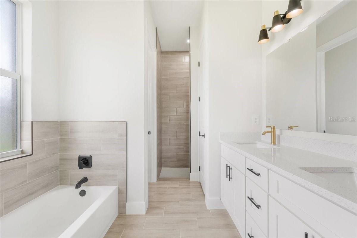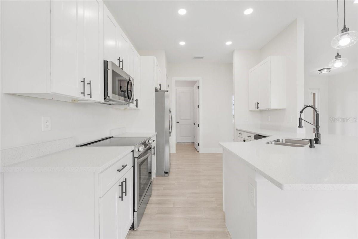 One or more photo(s) has been virtually staged. MOVE IN READY - CUSTOM BUILT - NEW CONSTRUCTION. The Hampton model stands out among Lehigh's current construction offerings, featuring 3 bedrooms, 2 bathrooms, a DEN, and an oversized garage. With neutral colors, 10 ft. high ceilings, and TILE FLOORING THROUGHOUT. This home boasts an upgraded kitchen with Moen fixtures, GRANITE countertops, shaker cabinets, BIG PANTRY and stainless steel appliances. The primary bathroom includes dual sinks, a BATHTUB, and a WALK-IN shower, while spacious WALK-IN closets can be found in the bedrooms. LOCATED IN FLOOD ZONE "X', SO NO FLOOD INSURANCE REQUIRED.