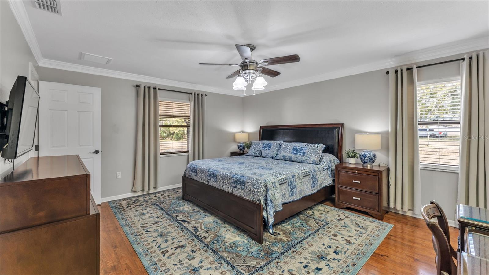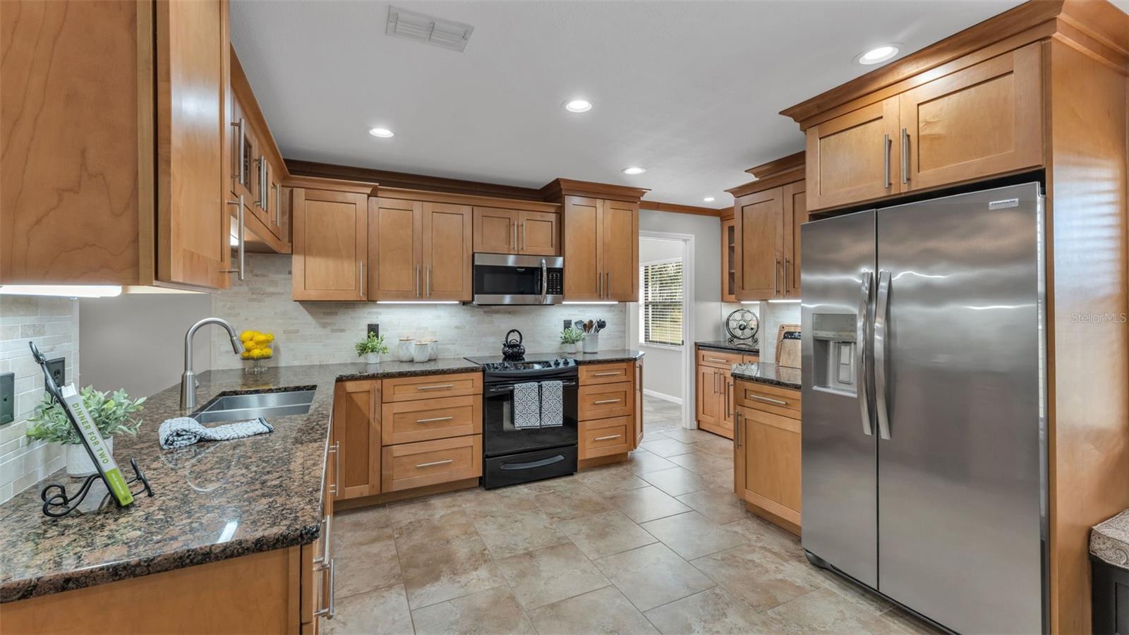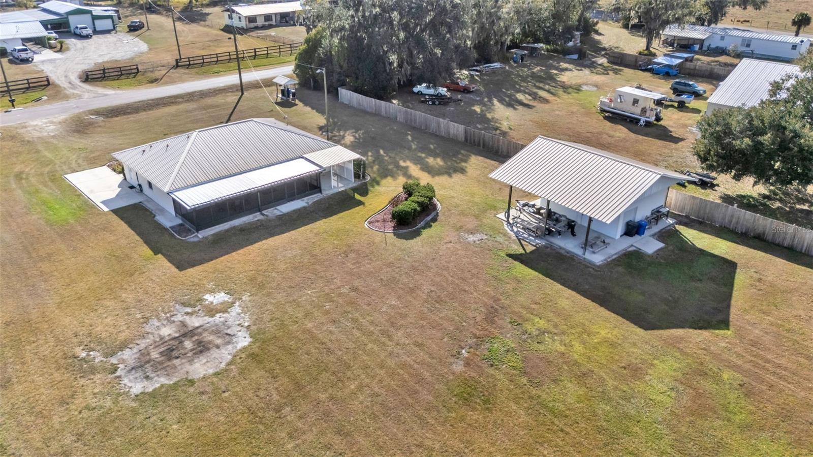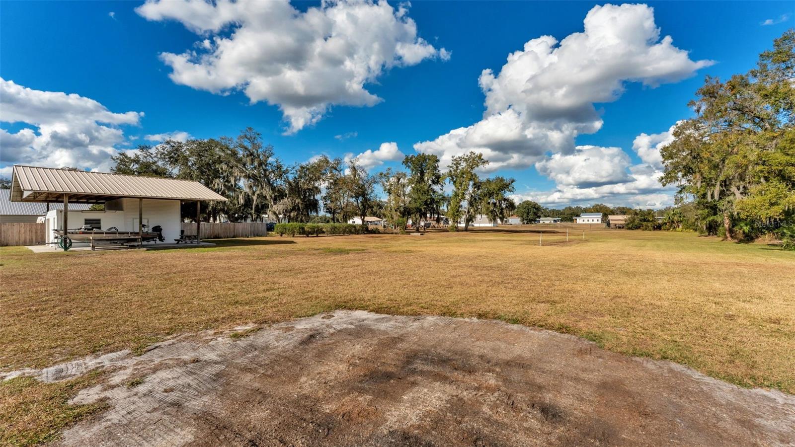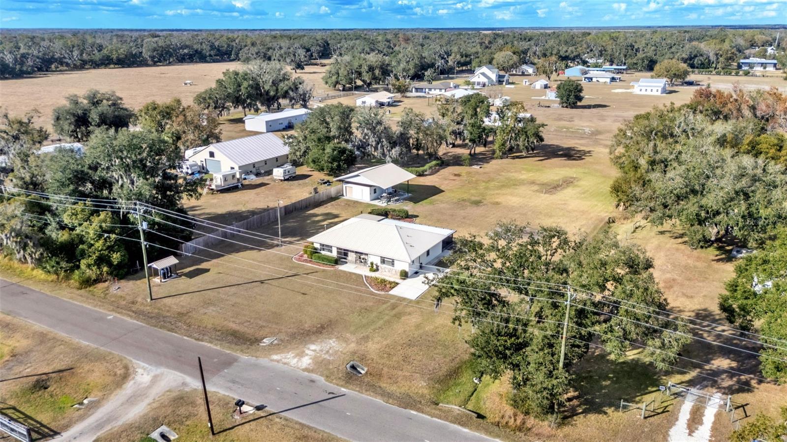 This incredible 1.75-acre property offers a charming homestead-style living experience. It features a beautifully maintained 3-bedroom home and a separate workshop. Imagine how wonderful each day would be in this peaceful country setting, with the freedom to make it all your own! The front porch, adorned with stone details and surrounded by crisp landscaping, creates a welcoming first impression. Inside, the pride of ownership is evident in the solid flooring, crown molding, attractive paint colors, and numerous updates throughout the home. The impressive kitchen seamlessly blends functionality with style. Upgraded wood cabinetry provides ample storage, while granite countertops, backsplash, and an eat-in dinette nook (complete with table and seating that remain with the home!) add to its appeal. Don’t miss the hidden island in the bar area, perfect for baking, serving, and more. The adjacent laundry room offers overflow storage, complete with a washer and dryer, and a side-entry exterior door. The large living area provides ample seating, a pass-through to the kitchen, and access to the back porch. The primary suite boasts a spacious bedroom, a generous walk-in closet with shelving, and a tastefully updated en-suite bathroom featuring quartz countertops and a tiled shower. Two additional bedrooms, each with built-in closet storage, and another nicely updated bathroom complete this split-floor-plan home. Step outside to discover an oversized 38x12 covered and screened back porch, a comfortable space to enjoy the outdoors year-round. Here you can sit back, relax, and take in the breathtaking views and sounds of nature that surround you. The backyard offers endless possibilities for gardeners and animal lovers alike. For anyone who enjoys entertaining and fun, the covered open space is great for grilling during cookouts or a play area. If you need a workshop space or an area to store a boat, camper, or other toys, the large, detached 34x32 workshop with carport and separate storage spaces offers all of this, plus water, electric and fantastic storage. This move-in-ready home has a metal roof and is in immaculate condition, but the expansive lot and serene setting are what truly make it a one-of-a-kind opportunity to escape the hustle and bustle, while still enjoying a convenient location within the Sunshine State! **THIS HOME IS LOCATED IN A USDA ELIGIBLE AREA**