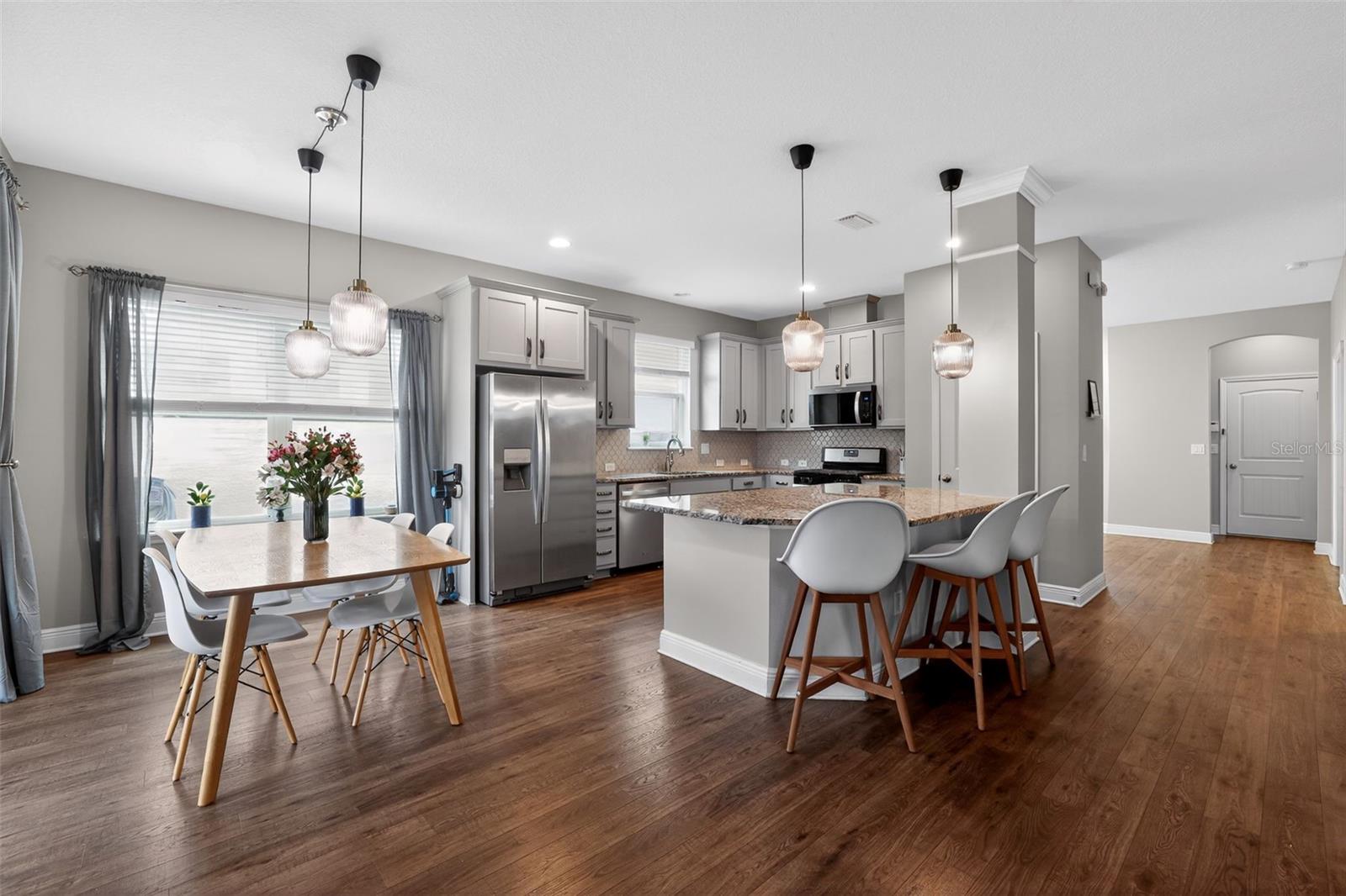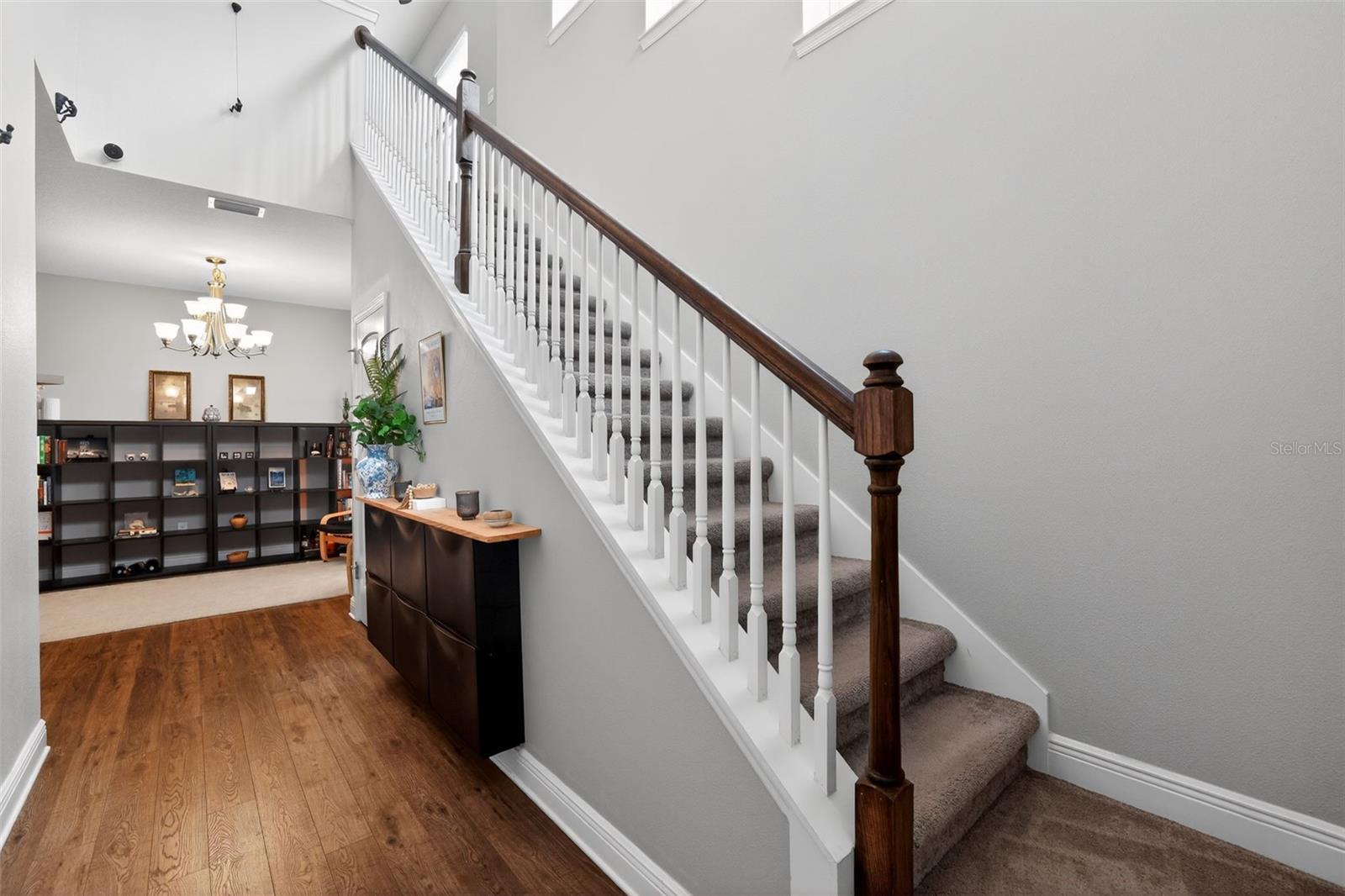 Welcome to this stunning 2-story single-family home in the highly desirable FishHawk West community, built in 2016 and offering approximately 2,782 square feet of thoughtfully designed living space. The home features soaring 9-foot-plus ceilings and an open layout that feels bright, airy, and spacious throughout. Step inside to a flexible formal dining room at the front of the home that can also serve as a library, playroom, or additional sitting area, depending on your needs. From here, the floorplan flows into an open-concept kitchen and living room, ideal for both everyday living and entertaining. The kitchen boasts a large center island with granite countertops, a natural gas range, and generous prep and storage space, making it a great hub for cooking and gathering. Also on the first floor, you will find a convenient half bath and a large office that includes a closet, offering the flexibility to be used as a true bedroom if desired. Beautiful chestnut engineered hardwood flooring runs through much of the main level, adding warmth and character to the space. Upstairs, a large flexible loft area provides even more living space that can function as a media room, playroom, home gym, or second family room. The spacious primary suite features a large ensuite bathroom with a soaking tub, separate shower, dual vanity, and direct access to a generous walk-in closet. Three additional well-sized bedrooms, all with closets, share a full bathroom with a dual vanity, and a large upstairs laundry room adds everyday convenience. The laundry room is equipped for a gas dryer hookup, allowing for gentle and efficient drying of clothes. Outdoor living is a highlight of this property. At the back of the home, a large screened-in patio and pool area (completed in 2023) create a private retreat perfect for entertaining. The outdoor kitchen and grill make dining al fresco easy, while the saltwater pool and oversized 8-by-8-foot spa provide resort-style relaxation. Both the pool and spa are connected to a powerful 400K BTU natural gas heater for quick and effective heating. The panoramic screen enclosure overlooks a peaceful preserve with no rear neighbors and a beautiful northwest exposure that treats you to gorgeous Florida sunsets. Additional features include a whole-house water filtration system installed in 2021 and an attached two-car garage with plenty of storage space. Located in one of the most sought-after neighborhoods in FishHawk West, this home offers access to top-rated A schools and an amazing community environment. Residents enjoy lush landscaping, excellent recreational trails, fantastic community pools, a gym, a lake house, dog parks, and new paddle-tennis courts currently under construction. This property truly combines comfort, flexibility, and an exceptional lifestyle in one of the area’s premier communities.