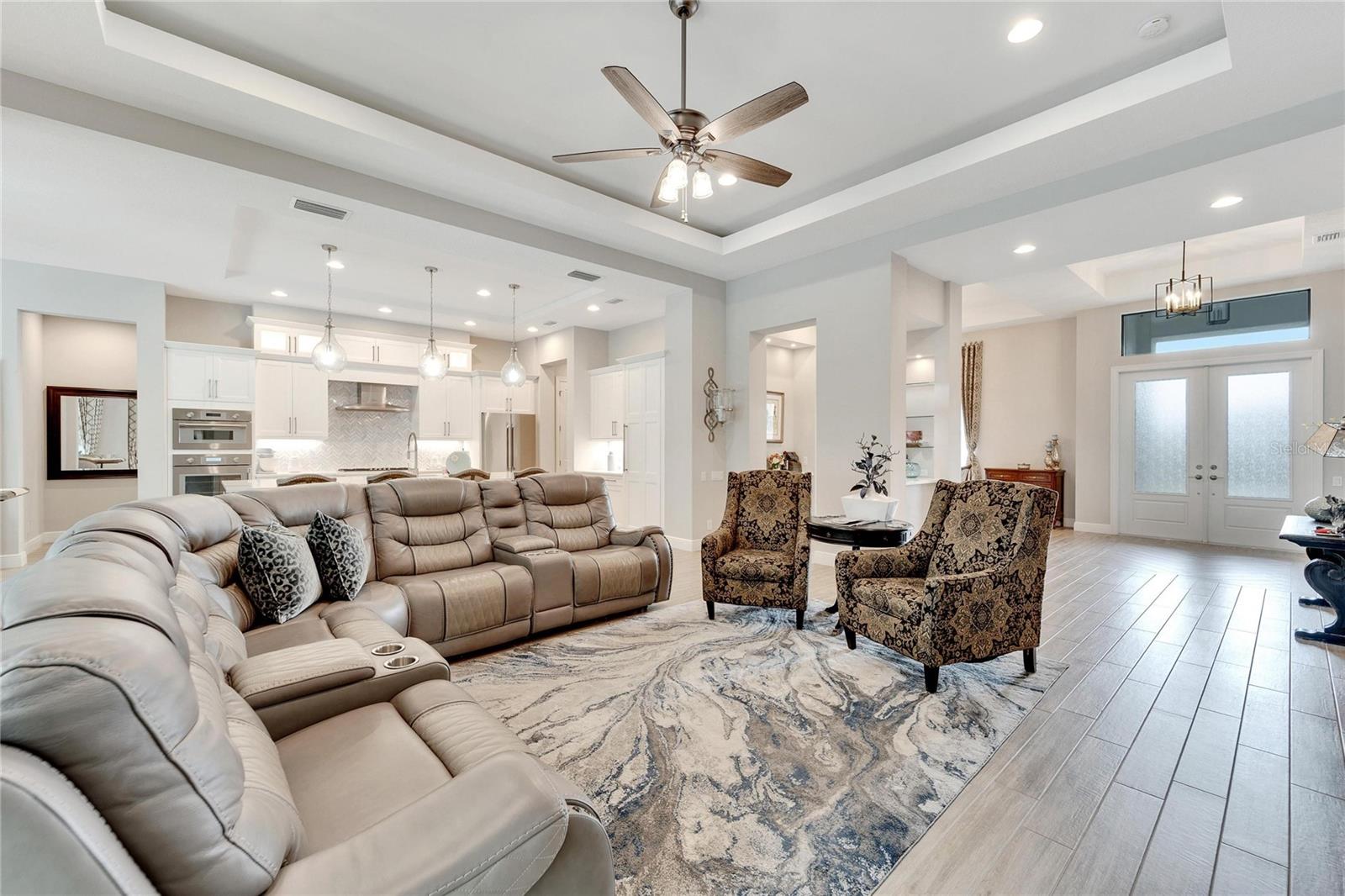 *** Motivated Seller *** Welcome to the custom Coquina floor plan by Arthur Rutenberg Homes, located in the beautiful gated community of the Preserve at FishHawk Ranch. This exquisite 5-bedroom, 4-bathroom pool home boasts a stunning design and impeccable architectural details, making it a dream come true for even the most discerning buyers. The open concept layout seamlessly blends elegance with functionality. The secluded master suite offers a private retreat, while the den provides a quiet workspace. Entertain in style in the formal dining room or welcome guests in the spacious foyer that flows into the great room, which connects to the kitchen and morning room—perfect for family gatherings. On the opposite side of the home, you'll find three oversized secondary bedrooms, ample closet space, three full baths, a large utility room, and a 5th bedroom / bonus room thoughtfully placed at the rear of the home. The gourmet kitchen is a chef's delight, featuring High End Luxury stainless steel Thermador appliances, a large kitchen island, quartz countertops, a custom marble backsplash, and a walk-in pantry behind a hidden panel door, where you will find more quartz and custom butcher block counter tops. Enjoy an abundance of natural light through the sliding glass doors with a disappearing corner, leading to an expansive lanai/cabana space featuring a beautifully designed salt water pool & spa with shellock pavers ideal for entertaining. The home features a tile roof, paver driveway, designer tile, quartz countertops throughout, and numerous recessed ceilings, this home is completely prewired and plumbed for an outdoor kitchen, let your imagination run wild. Features and upgrades added by the home owner include Ceiling fans throughout, Upgraded lighting throughout, Custom fit blinds and curtains, Custom closets in primary, Custom pantry with Quartz and butcher block counters, Wine chiller/beverage refrigerator for bar, Upgraded GE washer/dryer, Samsung refrigerator in the laundry room, Salt water pool with spill over spa, water features, screened enclosure, and upgraded shellock pavers, added landscaping and borders, custom mirrors in all bathrooms, culligan water softener conditioner system, and sealed drive way pavers Zoned for top-rated FishHawk area schools, this home also offers access to all the resort-style amenities that the award-winning FishHawk Ranch has to offer. Schedule your showing today so that you don't miss out on this incredible home.