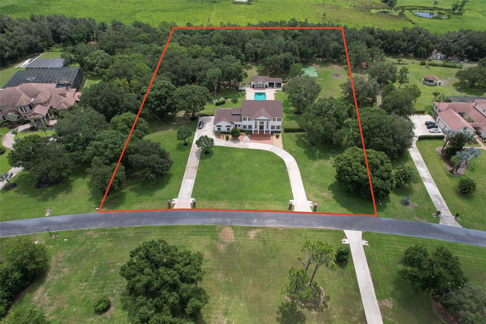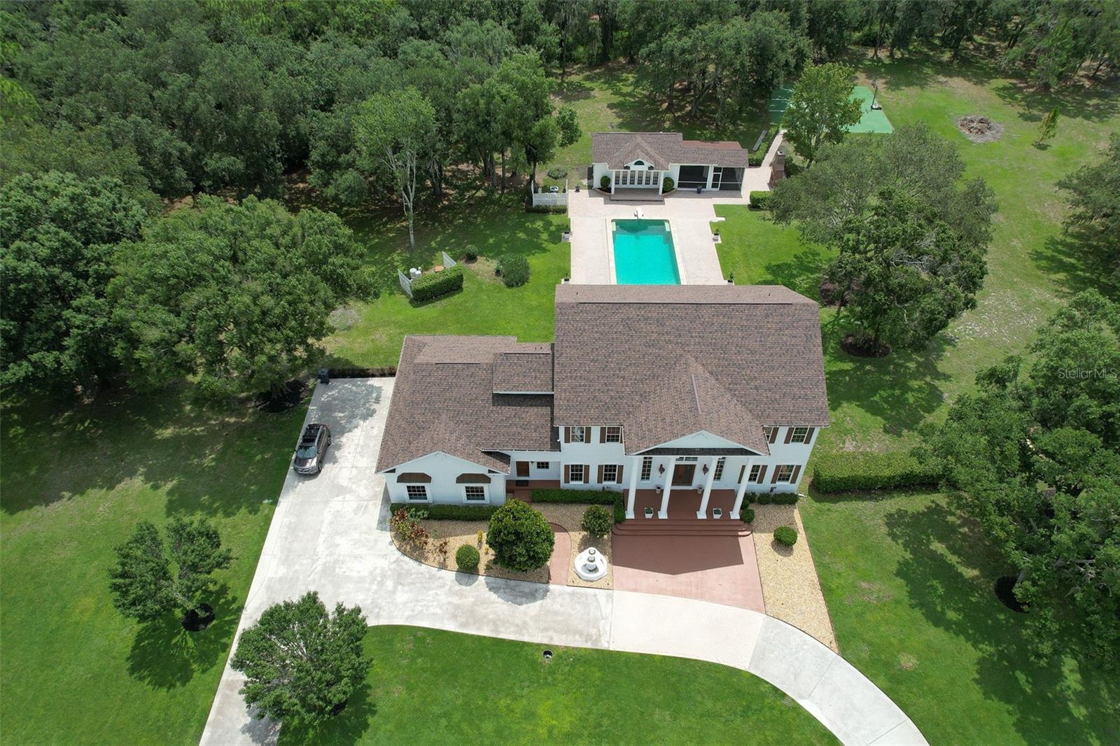 Welcome to your dream home in the gated community of Hammock Oaks Reserve located in Lithia Florida! This property is nestled on an expansive 5.08- acre lot with beautiful, designed living space, providing ample room for both relaxation and entertainment! Some of the homes outstanding features include a fabulous guest house, oversized pool, private basketball court! Huge owner's suite with massive walk-in closet! Enter the home and see the double staircase, high ceilings and marble floors greet you at the front door. Look out the great room across the large pool to the guest house! Kitchen features double oven, brand new cooktop and side by side refrigerator! All bedrooms are oversized! Guest house makes a perfect in-laws suite! This home has recently been painted inside and out! Horses are allowed!