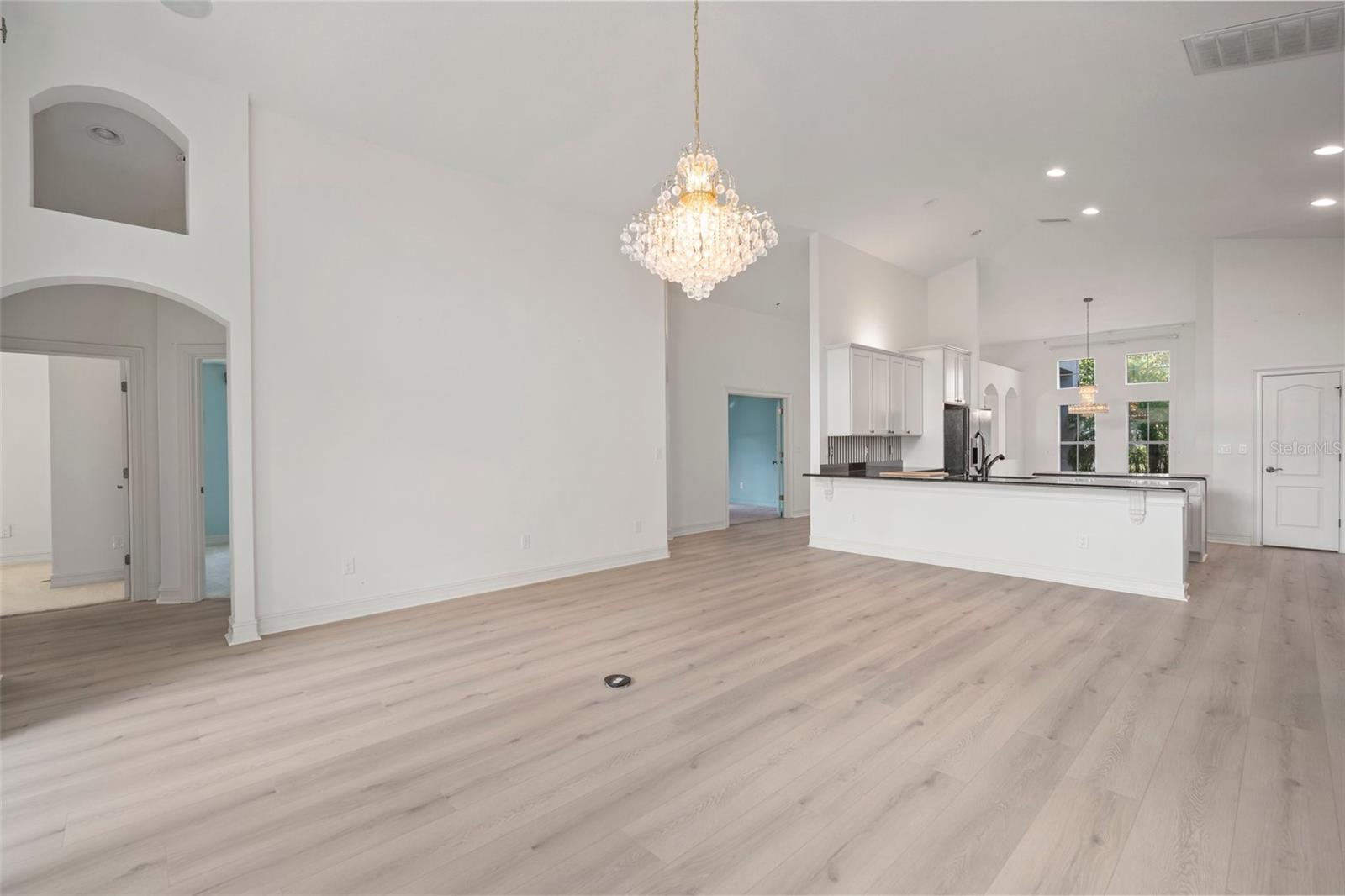 Come see this beautiful home on a corner lot in Starling at Fishhawk Ranch, one of Tampa's premiere master planned communities. This amazing 4 bedroom, 2.5 bath, 2 car garage home boasts over 2,700 square feet of spacious living. As you enter this home, you will quickly notice the large living room and formal dining room space to your right. Immediately to your left is another separate dining space off of the kitchen area. The kitchen offers a large center island, granite countertops, beautiful wood cabinets, recessed lighting, breakfast bar, built-in desk and a walk-in pantry. The homeowner recently put in new luxury plank tile in all the living areas and wet areas. The large family room has high soaring ceilings and offers direct access through sliding doors to your outside patio area which is great for entertaining. The owner's suite is located just off the family room space, offers a large bedroom, bathroom, dual vanity sinks, walk-in shower and a large walk-in closet. There are three additional bedrooms in the house. Two of the bedrooms have a full bathroom in between them that is perfect for family or guests. The fourth bedroom with French doors can be used as an office space, has a walk-in closet and also a half bath nearby for convenience. The garage is oversized, features a sink, storage areas and has a space for a golf cart. The backyard is beautifully landscaped and offers privacy from neighbors. Zoned for A-rated schools, FishHawk Ranch is a resort-style community that offers numerous pools, splash pad, playgrounds, dog park, skate park, 25+ miles of trails, fitness centers, pickleball courts, basketball courts and a tennis club. Close to downtown Tampa, Orlando, St. Petersburg and some of the best beaches in all of Florida. Come see this home today as it won't last long.