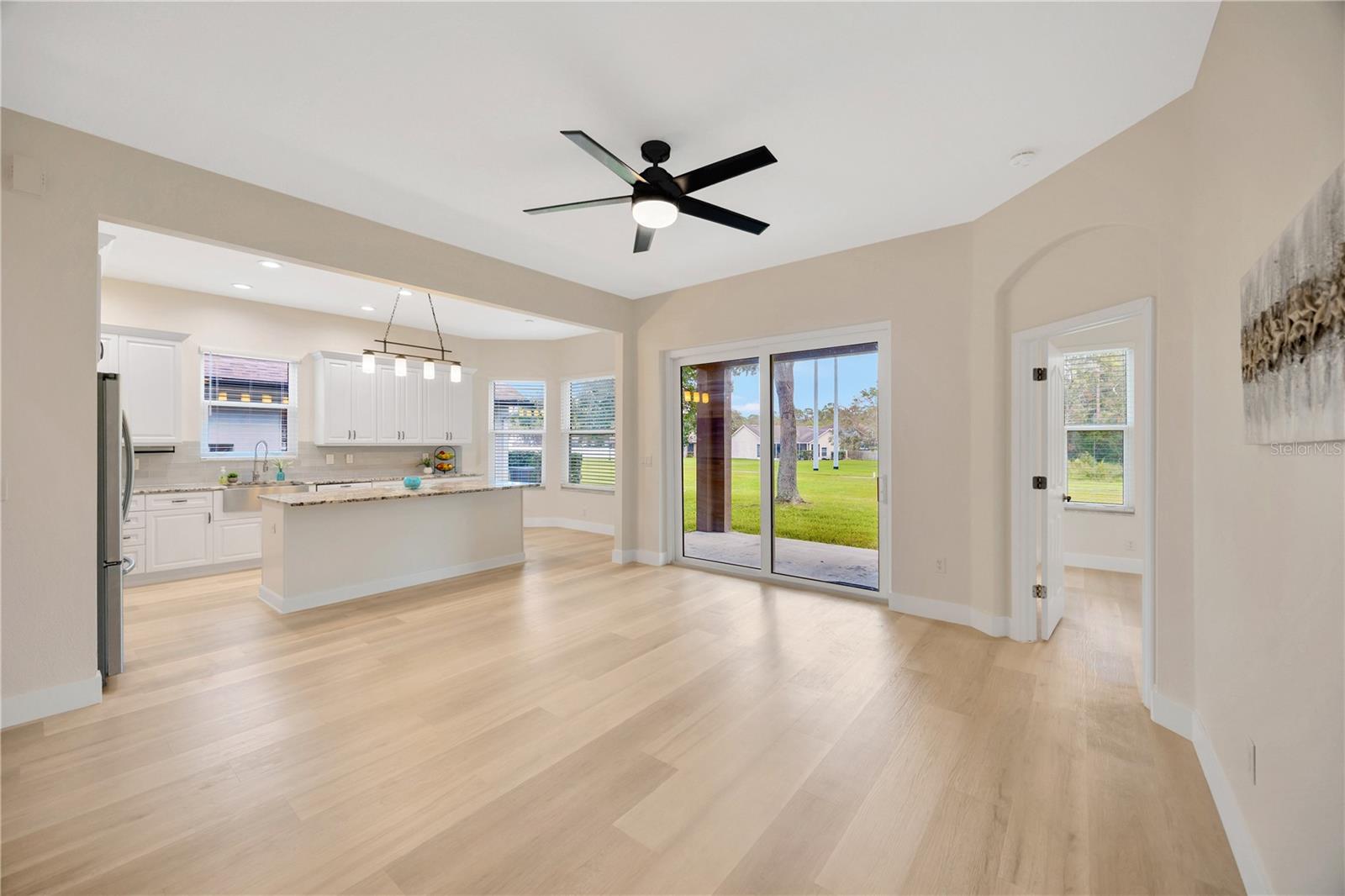 Come see this absolutely stunning *Move-In Ready* 4 bedroom 2.5 bathroom with loft/bonus space in Fishhawk! Fully remodeled and meticulously maintained, this home will take your breath away! Upon entry the soaring ceilings and neutral tones will instantly make you feel refreshed. Enjoy the new and gorgeous luxury vinyl plank flooring throughout. *New Roof 2020* The open floor plan and large windows throughout allow natural light to spill in from every angle. The fully upgraded kitchen features granite countertops, stainless steel appliances, gas range, farm sink, large island with bar seating, an abundance of freshly painted 42” cabinets, and an eat-in dinette with bay windows overlooking the expansive backyard. New windows and sliding glass doors ~ very secure & energy efficient! The open floor plan creates an easy flow between the kitchen, family room, and outdoor area ~ perfect for entertaining. The primary bedroom suite is located downstairs and features sliding doors to the lanai, a walk-in closet, and fully upgraded bathroom. The beautifully upgraded primary bathroom has dual sinks and a seamless glass walk-in shower. The main floor also features a half bath for guests and one secondary bedroom. Traveling upstairs, you land at the large loft/bonus area ~ perfect for a kids hangout or office space for those working from home. The other 2 bedrooms are nice in size and have ample closet space. The upstairs bathroom has been fully remodeled and features an elegant barn glass shower door. The laundry room has a utility sink and cabinet storage. No space was left untouched ~ new light fixtures, vanities, faucets, flooring, paint, & more! The home backs up to conservation leaving you plenty of backyard space to run & play ~ No Backyard neighbors!! Located in the highly desirable neighborhood of Fishhawk Ranch ~ enjoy the fantastic amenities such as community pools, clubhouses, pickleball and tennis courts, fitness centers, playgrounds, and miles of walking trails. With its unbeatable location, tasteful upgrades, and serene outdoor space, this home is ready and waiting for you to make it your own!