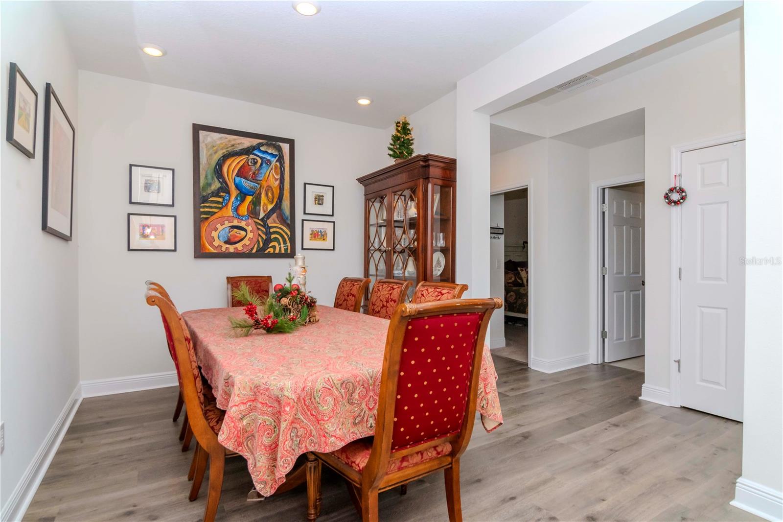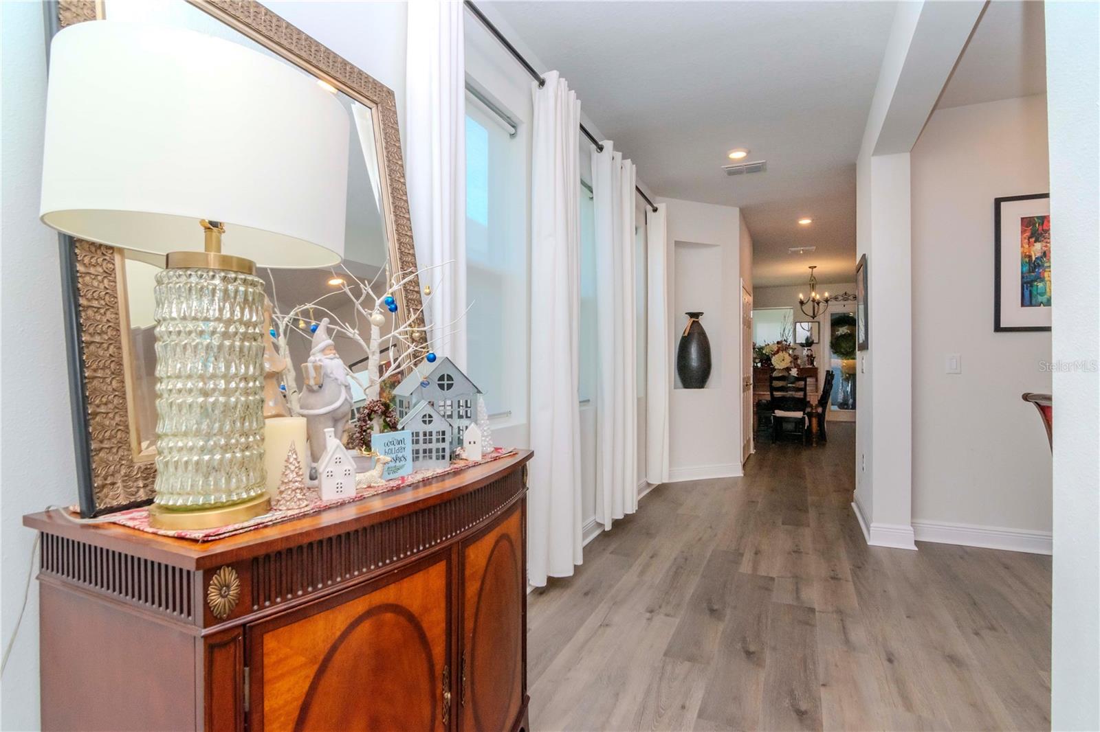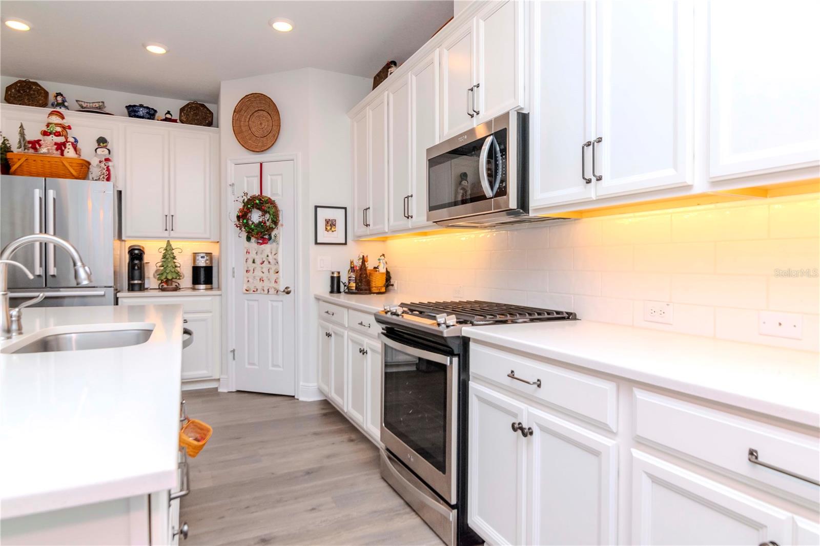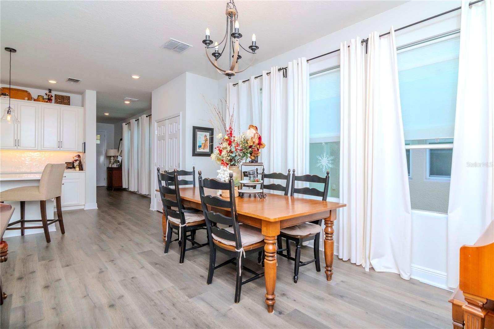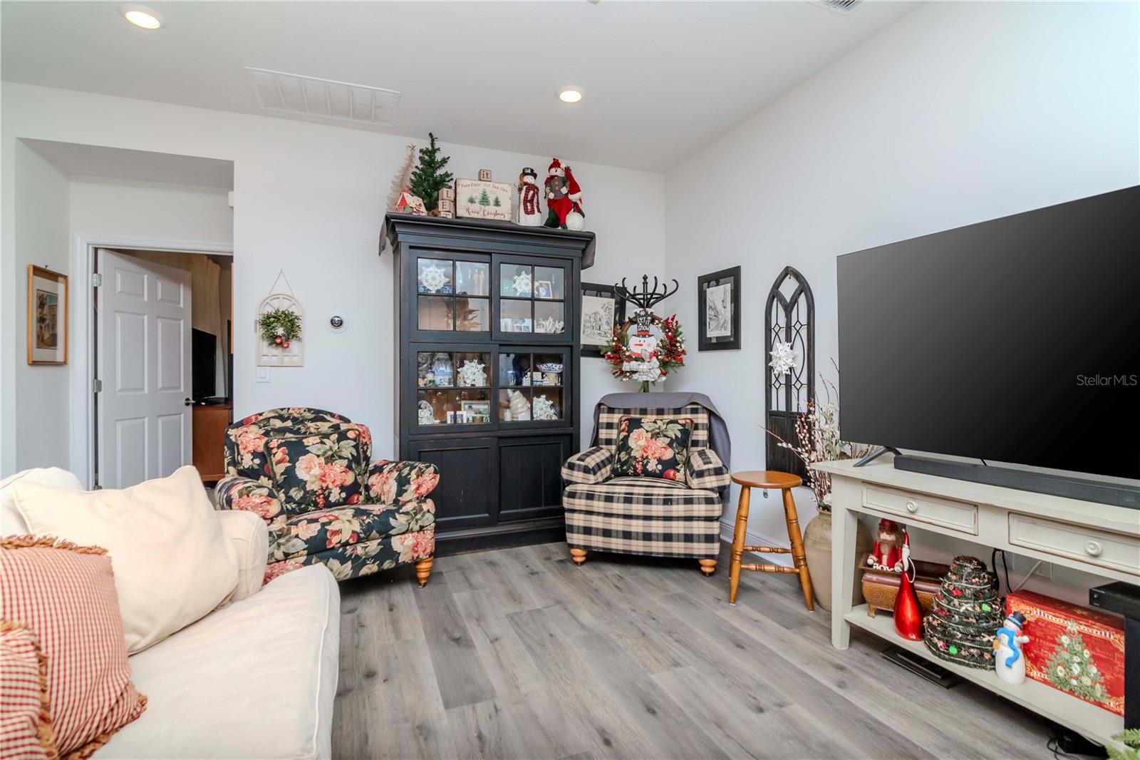 Beautiful move in ready 2 bedroom 2 bathroom villa in the gated 55 plus community of Encore at Fishhawk Ranch. This popular Mercury floorplan built by David Weekley Homes in 2021 is very spacious with over 1800 sq/ft of living space. Gourmet kitchen with quartz counters, center island, under cabinet lighting with dimmer, stainless steel appliances including Bosch 800 series fridge and whirlpool five burner gas range, and huge walk in pantry with 6 vertical levels of storage! Large master suite with trey ceiling, attached master bath with super sized full glass enclosure shower, double vanities, and huge walk in closet designed by Closets By Design. Split floorplan with bedroom 2 and bathroom 2 on opposite side of home. In addition to 2 bedrooms is an office/den/study, currently being used as a formal dining room. Luxury vinyl plank flooring throughout living, dining, kitchen area. Tiled bathrooms. Carpet only in bedrooms. Whole house water softener and reverse osmosis water at sink and fridge. Outside you'll find new landscaping front and back, sprinklers with rain sensor, expanded screened in lanai, brick paver driveway and sidewalk as well as 2 1/2 car oversized garage. Monthly HOA fee includes exterior maintenance, lawn care, cable, and internet! Encore features a beautiful resort style pool and spa, as well as basketball, pickleball, bocce ball and state of the art clubhouse with fitness center, card rooms, along with events and activities galore! As a resident of Encore, you will also have access to Fishhawk Ranch West amenities including the Lakehouse, community pool, fitness, and more!