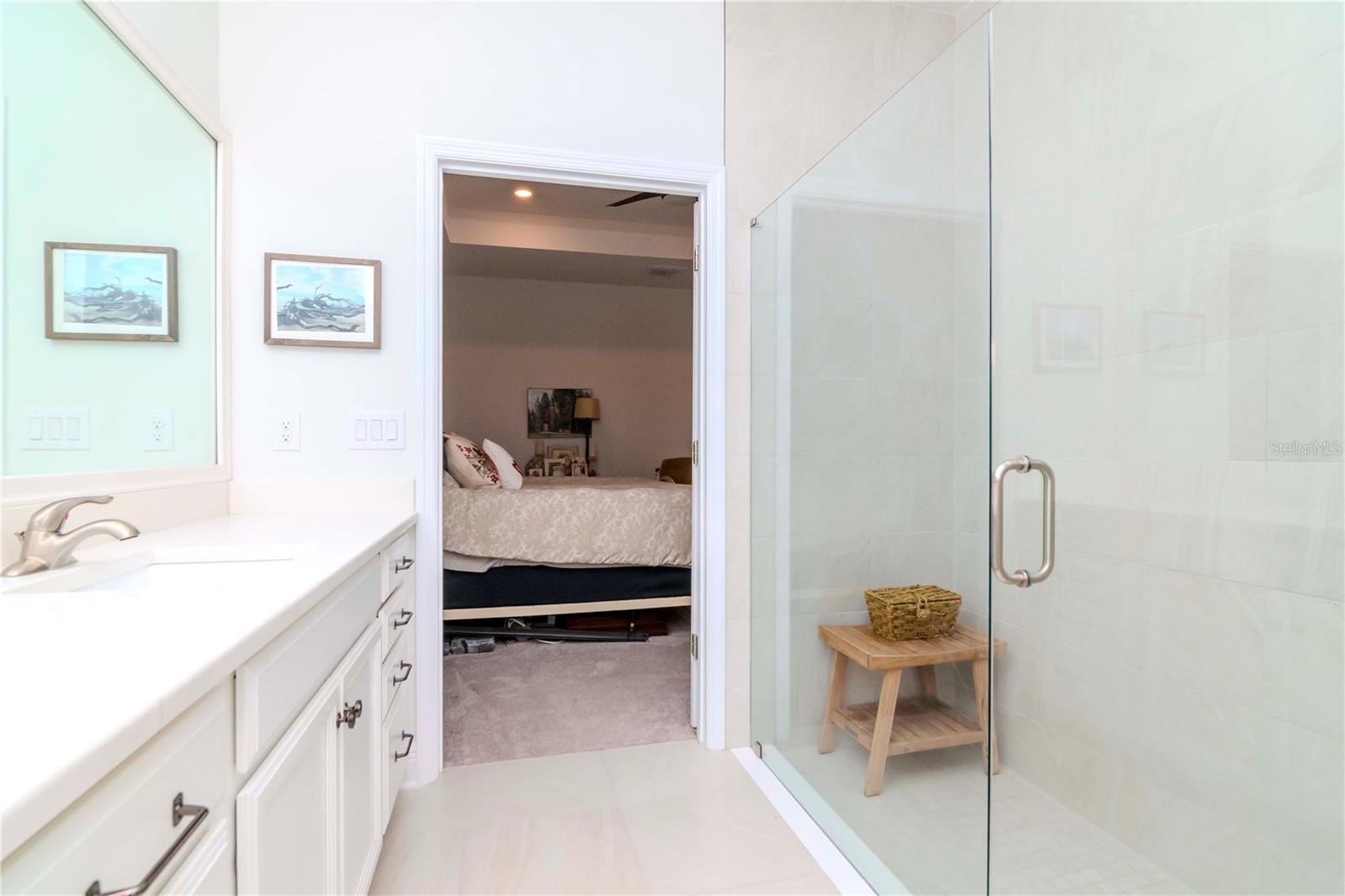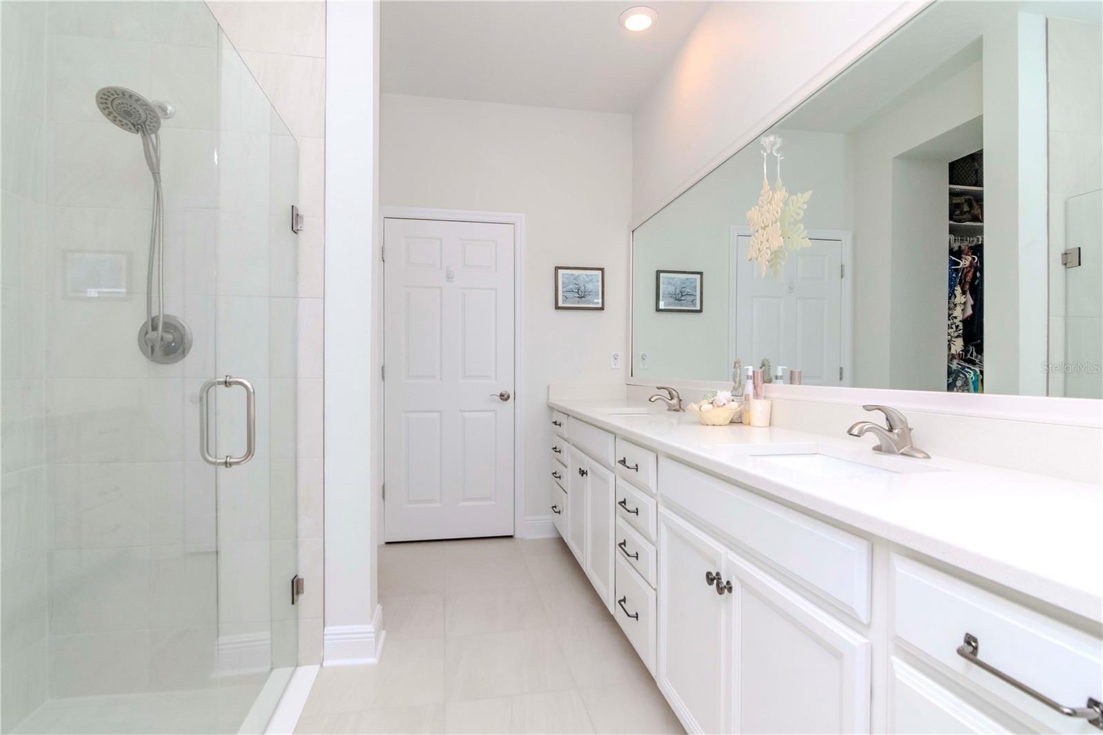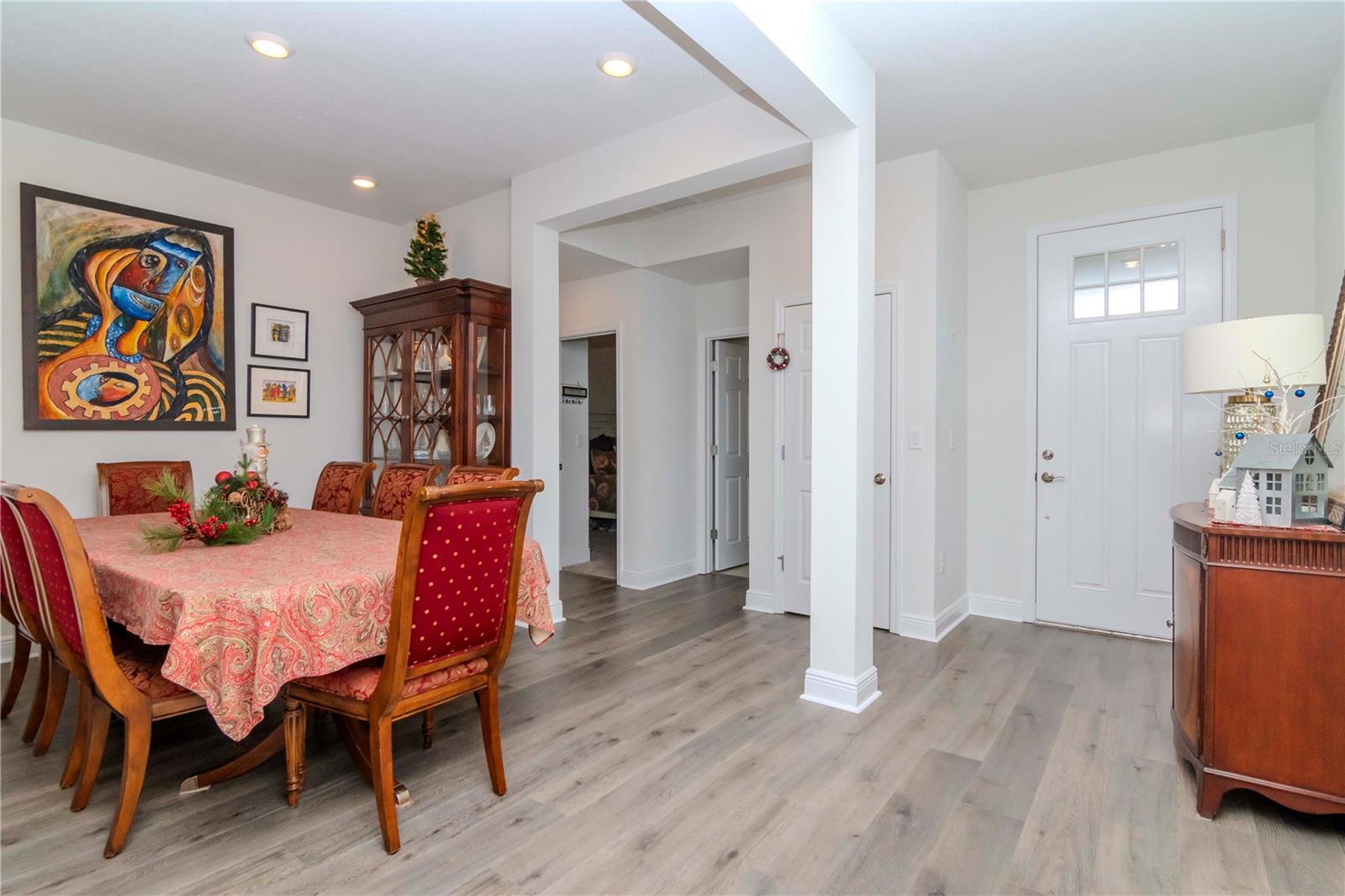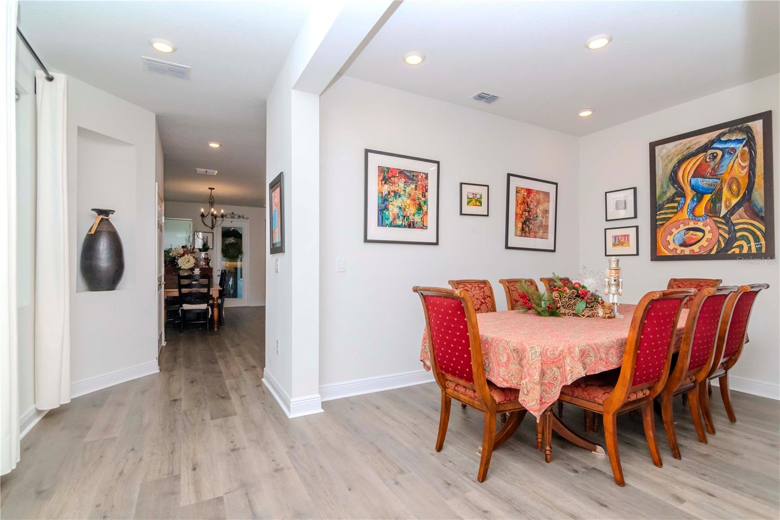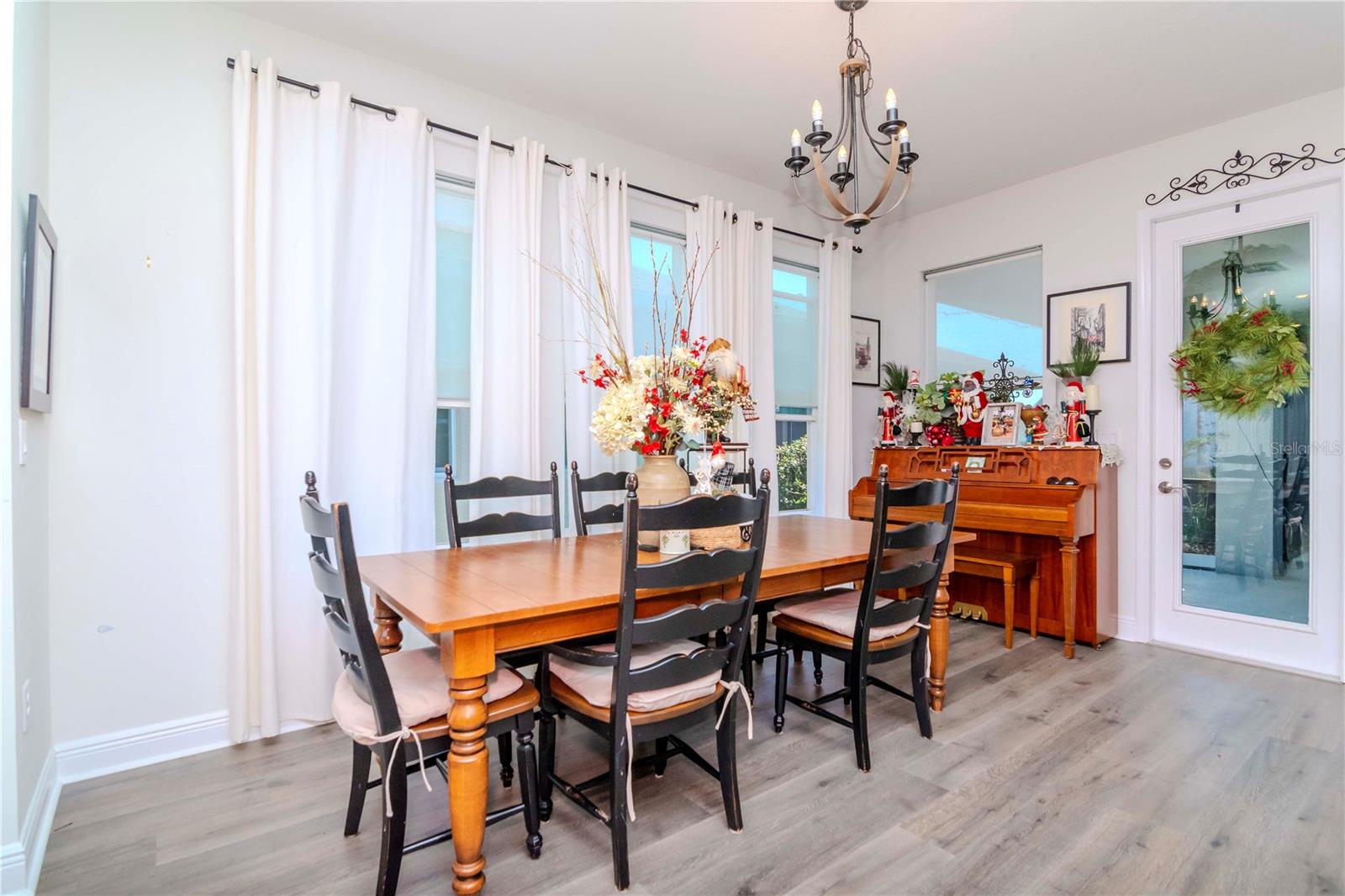 Beautiful move in ready 2 bedroom 2 bathroom villa in the gated 55 plus community of Encore at Fishhawk Ranch. This popular Mercury floorplan built by David Weekley Homes in 2021 is very spacious with over 1800 sq/ft of living space. Gourmet kitchen with quartz counters, center island, under cabinet lighting with dimmer, stainless steel appliances including Bosch 800 series fridge and whirlpool five burner gas range, and huge walk in pantry with 6 vertical levels of storage! Large master suite with trey ceiling, attached master bath with super sized full glass enclosure shower, double vanities, and huge walk in closet designed by Closets By Design. Split floorplan with bedroom 2 and bathroom 2 on opposite side of home. In addition to 2 bedrooms is an office/den/study, currently being used as a formal dining room. Luxury vinyl plank flooring throughout living, dining, kitchen area. Tiled bathrooms. Carpet only in bedrooms. Whole house water softener and reverse osmosis water at sink and fridge. Outside you'll find new landscaping front and back, sprinklers with rain sensor, expanded screened in lanai, brick paver driveway and sidewalk as well as 2 1/2 car oversized garage. Monthly HOA fee includes exterior maintenance, lawn care, cable, and internet! Encore features a beautiful resort style pool and spa, as well as basketball, pickleball, bocce ball and state of the art clubhouse with fitness center, card rooms, along with events and activities galore! As a resident of Encore, you will also have access to Fishhawk Ranch West amenities including the Lakehouse, community pool, fitness, and more!
