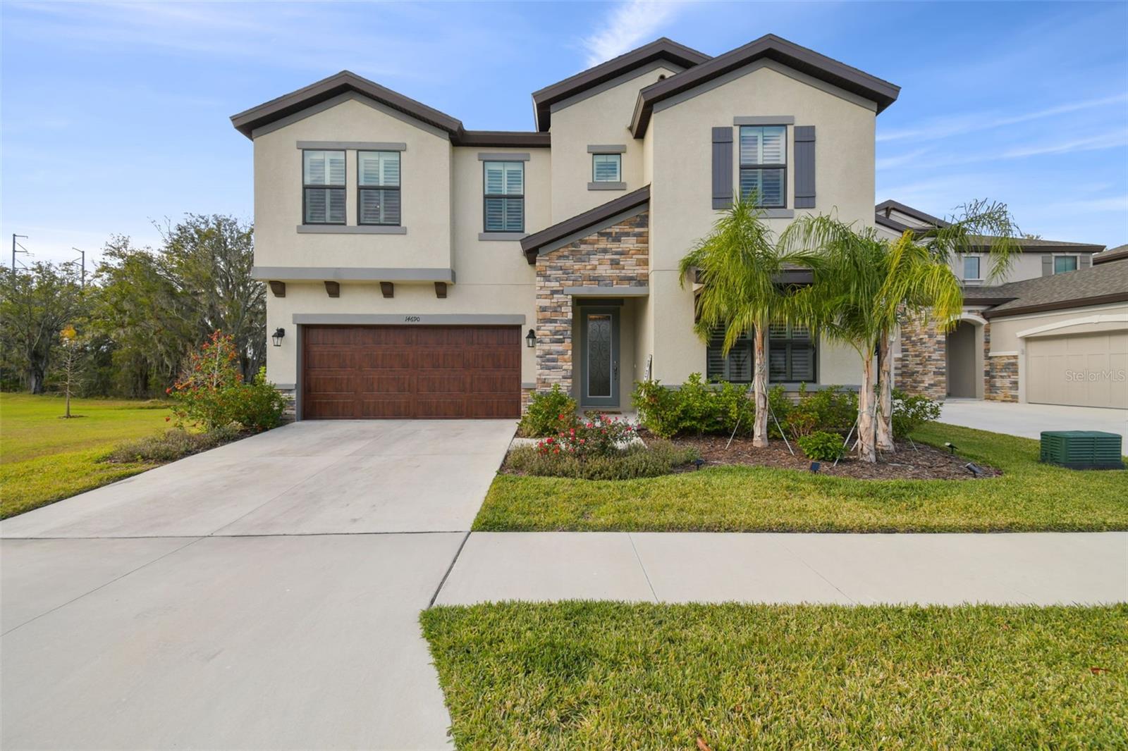 **Alluring home with serene, picturesque views! ** **MOTIVATED SELLER** This 2023 Westbay Pelican model located in the desirable master planned community of Hawkstone in Lithia is ready for its new owner. Comfort and convenience are featured throughout the home with an ample floorplan boasting plenty of open space. Featured are 5 generous bedrooms, 3 full bathrooms, an eat-in kitchen with GE gourmet kitchen appliances, quartz stone counters and a walk-in storage pantry. Across from the kitchen sits the great room with lovely views of conservation to the backyard. Additional first floor features are a bedroom with ease of access to the full bath separate from the main living area, a dedicated dining room space in addition to the eat-in kitchen space and wood-look tile throughout the main living areas of the first floor. On the second level, you can retreat to the privacy of the bonus room/loft area. Additionally, you'll find the primary suite separate from the other rooms upstairs, with an en-suite that provides a separate garden tub/shower with seat and dual vanities. A walk-in closet with plenty of space to customize sits just on the other side of the master bath. Down the hall, you'll find the walk-in laundry room, and the three remaining bedrooms. In addition to the features the current owner selected at construction, custom plantation shutters were installed in 2024. This lovely homesite has conservation to the rear and no direct neighbors to one side, making the overall feel of your outdoor living space incredibly tranquil. Outside of the home, this community offers resort-style amenities, with a family pool, lap pool, splash zone, playground, pickleball courts, a dog park, walking trails and a scenic lake with a fishing pier. As if the community features weren't enough, the prime location of this community offers top-rated Lithia schools, nature preserves, ease of access to major highways for commutes to Tampa, St. Pete, and Sarasota areas via US-301, and I-75. With so much to offer, you don't want to miss the opportunity to make this tranquil piece of paradise your own! Reach out to schedule your personal tour today!