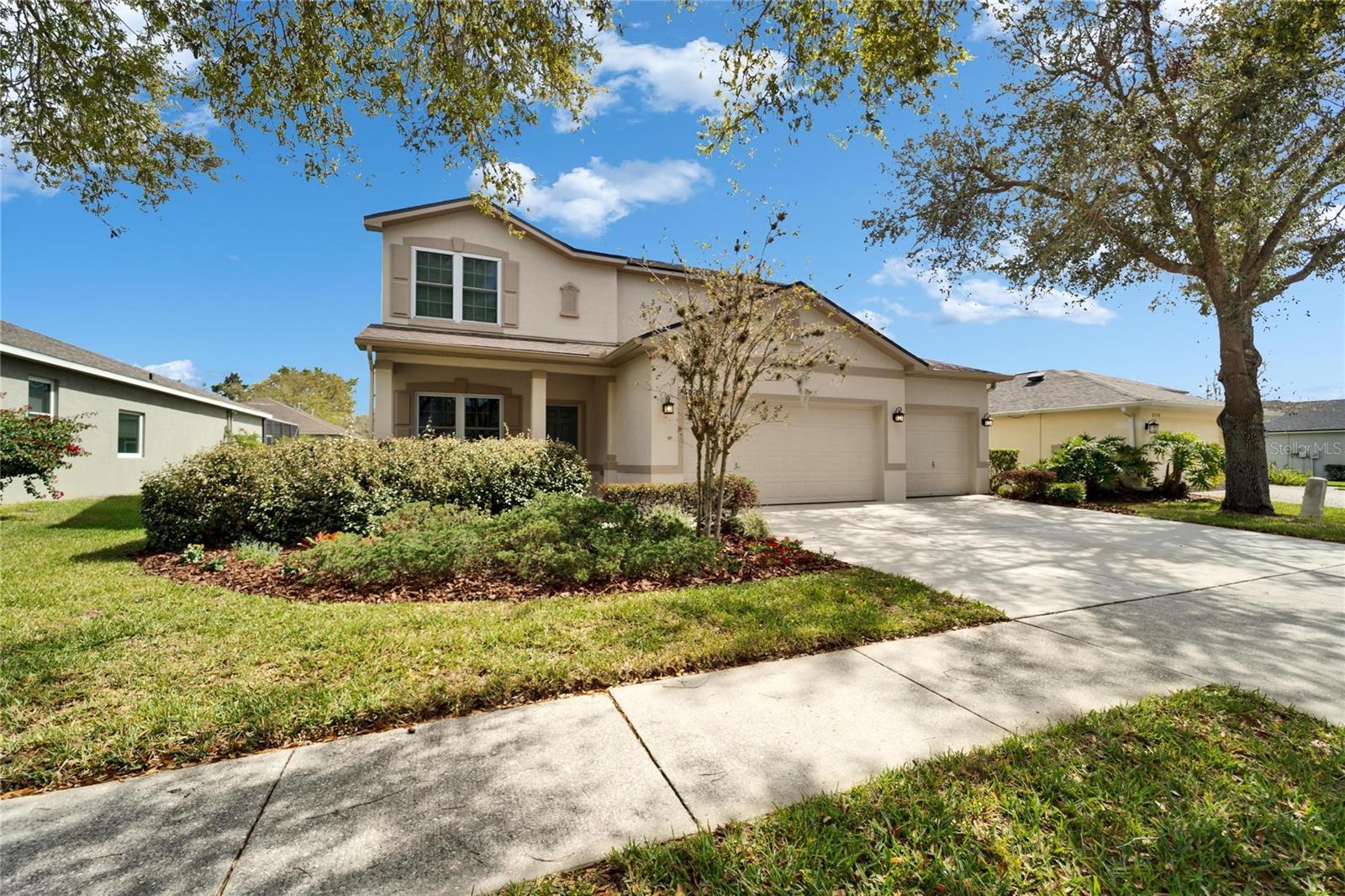 One or more photo(s) has been virtually staged. SELLERS ARE MOTIVATED! WE ARE OFFERING A 1-0 TEMPORARY RATE BUY DOWN USING A PREFERRED LENDER! GREAT BUYER INCENTIVE! Nestled in the highly sought-after Fishhawk Ranch community, this beautifully updated 5-bedroom, 3.5-bathroom home offers a blend of comfort and style. With 2,632 square feet of living space, it’s the perfect place to call home. Upon arrival, you’ll be greeted by a charming covered front porch and lovely curb appeal. As you step into the foyer, it opens to the living room with a BUILT IN TV UNIT and dining room. The heart of the home is the kitchen, which features BRAND-NEW STAINLESS STEEL APPLIANCES, abundant cabinetry, and ample solid surface countertop space. An island provides additional prep space, while the pantry offers extra storage. The eat-in kitchen nook is perfect for casual meals or morning coffee, making this space both functional and inviting. Crown moulding adds a touch of sophistication to the home. The NEWLY PAINTED exterior and interior give the home a fresh, modern feel, together with the NEW LUXURY VINYL PLANK flooring and NEW PLUSH CARPET. The spacious layout features a MASTER SUITE CONVENIENTLY LOCATED ON THE FIRST FLOOR, a true retreat with an ensuite bathroom with dual vanities, a soaking tub, a separate updated shower and a big walk-in closet. A half bath and under the stairs closet/storage completes the ground floor. Upstairs, the large family/BONUS ROOM provides the ideal space for entertaining or relaxing. Whether you're hosting movie nights or gathering with loved ones, this open and spacious area is sure to be the center of family life. You’ll also find four additional generously sized bedrooms, perfect for family, guests, or home office space. 2 full baths and the big laundry room makes up the 2nd floor. Other notable features include a 3-car garage, a NEW ROOF installed in 2023, built in surround sound in the family room, a DUAL ZONE A/C unit equipped with STERILIZATION RGF for added comfort and air quality. Located in a community with top-rated schools and an array of fantastic amenities—parks, pools, tennis, pickleball and basketball courts and trails to name a few—this home is perfect for anyone seeking a lifestyle of convenience, quality, and comfort. Don’t miss the opportunity to make this exceptional property your own!