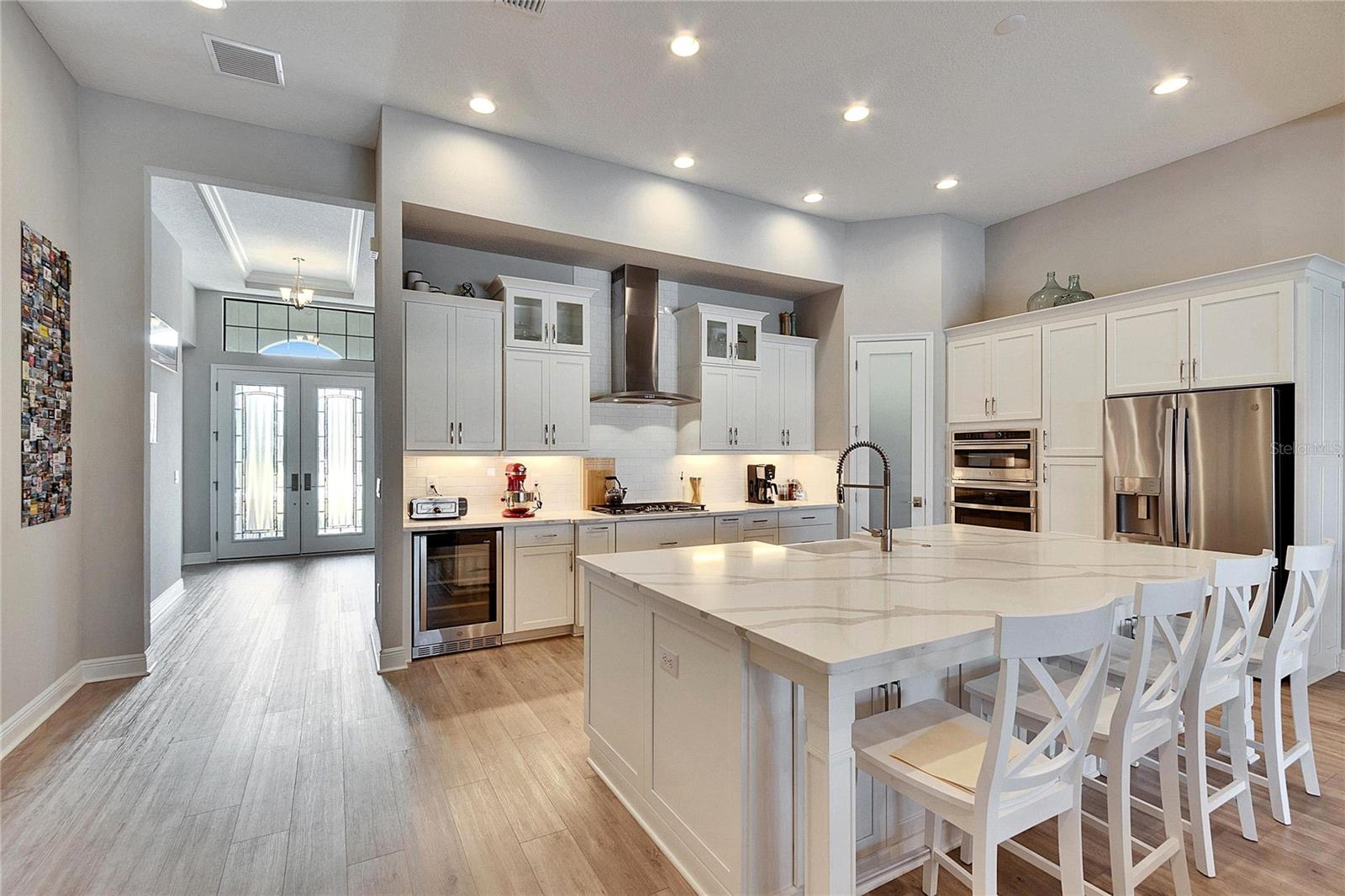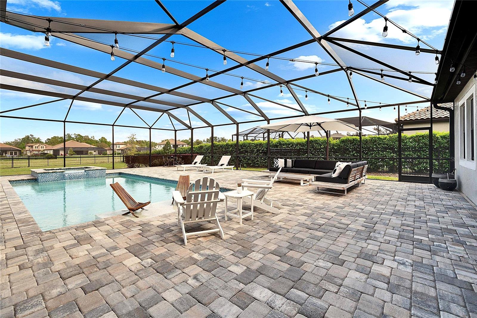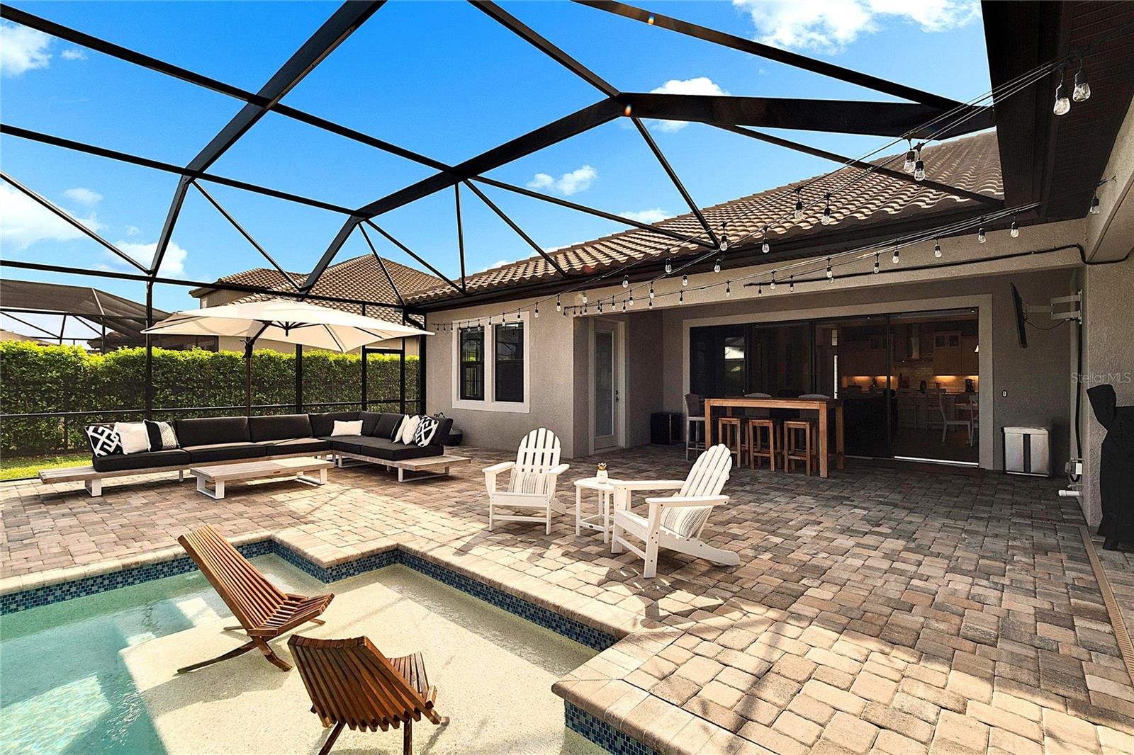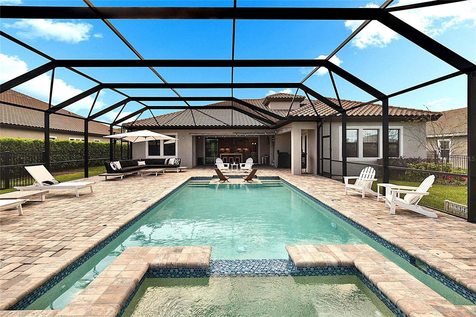 This stunning Key Largo II by Westbay has impressive curb appeal and includes the extended floor plan for a downstairs in-law suite. The smart design allows for spacious everyday living, entertaining, and plenty of room for a multi-generational family. High ceilings, luxury vinyl plank flooring, and views of the gorgeous saltwater pool give this home an open and airy feel. The first floor consists of the main living area with a dramatic Kitchen and Great Room, Dining Room, Home Office, and three separate wings for the bedrooms and baths. The first wing includes the primary bedroom with double walk-in closets, a bath with dual sinks, a large walk-in shower, and a stand-alone tub. The second wing has two bedrooms and a secondary bath, while the third wing includes a bedroom with a walk-in closet, a full bath, a second den with views of the outdoors, and a separate entrance. Head upstairs to another bedroom, full bath, and a large bonus room with a wet bar hookup, another ideal living space with privacy. Step outside to the screened salt-water pool with pavers, a fenced backyard, and a utility hookup for an outdoor kitchen on the covered lanai. The high-end finishes and flexibility of space must be seen in person to truly appreciate. We thank you for your interest and for taking the time to tour this remarkable home.