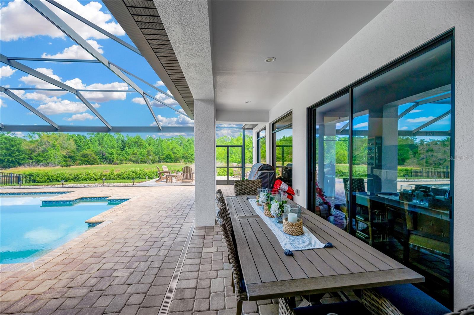 ***New Price***Privacy, Tranquility, Florida Lifestyle - if those are on your list then Welcome to PARADISE! This CUSTOM designed Sabal Home seamlessly blends luxury with functionality, situated on what is undoubtedly one of FishHawk's FINEST lots—over 0.60 acres that back onto private conservation, offering a tranquil pond view. As you approach, a spectacular Mediterranean elevation greets you, complemented by an extended pavered driveway and a stunning double front door entry. This executive estate is a masterpiece of upgrades, adorned with designer touches that elevate it to the pinnacle of Florida design. Step inside, and the home unfolds like a feature in an HGTV magazine. Upgraded crown molding, wide baseboards, 8ft doorways, custom lighting, and a neutral palette create an atmosphere of timeless sophistication. The heart of this home, the kitchen, is a showstopper. White 42” cabinets with crown molding, quartz counters, tile backsplash, built-in stainless appliances, a center island, and an ENORMOUS walk-in pantry define this chef's haven. Continue your journey, and the bonus room awaits—a golfer's DREAM with a professional Golf simulator (negotiable with purchase or can be removed), perfectly nestled for practice swings between dips in the pool. The newly added Gathering Room is the perfect retreat to entertain or relax. Privacy and relaxation extends to the secluded master suite featuring a spacious reading nook with serene, wooded views. Two walk-in closets with custom built-in shelving, dressing area, a double-sided walk-in shower with dual rain heads, a free-standing soaking tub, and a custom vanity with two sinks create an en-suite that feels like a private spa. An added bonus: private access to the 3rd bay garage, ideal for a home gym. The first floor guest suite is thoughtfully placed on the opposite side of the home, ensuring privacy. The laundry room is a dream! On the second floor, you will find two more oversized bedrooms, two full baths, and a sprawling open bonus/loft space with Pool Table (negotiable with purchase). Or with a little drywall and a door this Loft/bonus space could be a 5th bedroom. The exterior entertaining space is a masterpiece designed to showcase million-dollar views. A panoramic screened window frames unobstructed wooded views, providing a level of privacy that is truly unmatched. Gorgeous Gas Heated, Saltwater Pool with Sunshelf and covered seating areas are a highlight. The backyard paradise features paver patio with firepit and conversation area and hot tub. Follow the trail to the Putting Green and Baseball pitching mound. There is even a Fenced Dog Run. Welcome to your sanctuary where luxury, comfort, and natural beauty converge. Contact us today to experience the Florida lifestyle awaiting you at 16419 Chapman Crossing Dr! Bedroom Closet Type: Walk-in Closet (Primary Bedroom). ***Updates 2024- Pool Pump, Pool Salt Cell, Rear Yard Fence * 2025- 3 Brand New AC Units & Exterior Paint***