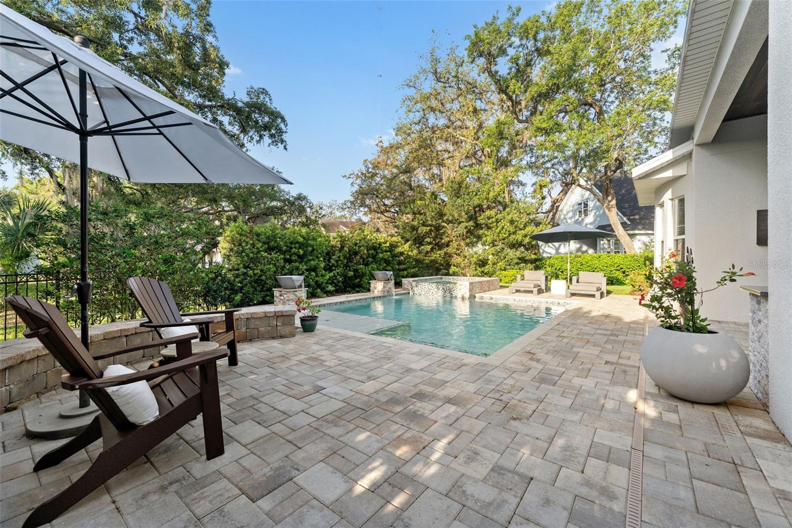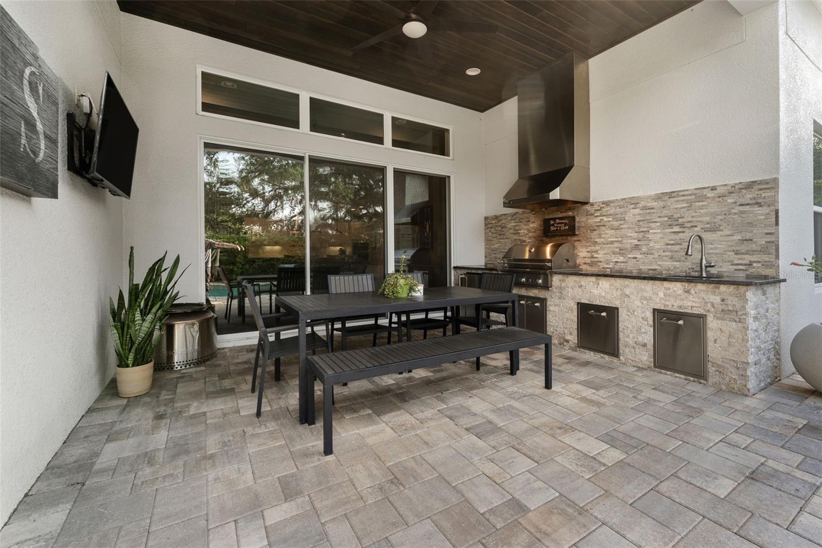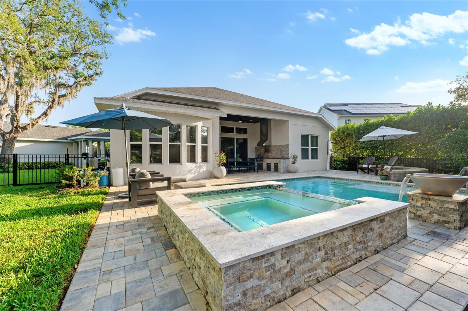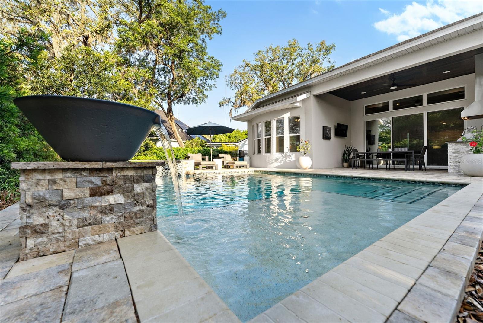 Price improved and move-in ready!** Welcome to West Lake at Fishhawk West! This home is located on a quiet street, close to the lake house and lake trail; where kids can walk or ride their bikes to top-rated schools! This community has every amenity you can imagine: resort-style pools, parks, fitness center, scenic walking trails, Lake house with games, and many playgrounds! Upon arrival at 5903 Nature Ridge Lane, you are greeted with mature landscaping and a welcoming covered front porch. Inside, pride of ownership shines through with many thoughtful touches. Custom built-ins, crown molding, and an outdoor oasis that will take your breath away! Single story living at its finest, this open concept floor plan offers an oversized family gathering room with a chef’s kitchen and a separate dining area with built-in hutch/plate shelf. Storage abounds with an upgraded walk-in pantry and an extra long island. Split bedroom layout with Bedrooms one and two on the left side of the home, Bed 3 at the back left. The owners suite has a sitting area overlooking the pool, an ensuite bathroom with his/hers sinks and an oversized shower. Connecting your bath and laundry is a professional closet buildout making the owners suite masterfully efficient on busy mornings. Indoor-outdoor living at its finest with seamless sliders that collapse to one pane creating an indoor/outdoor feel as you enjoy your custom, heated Wahoo pool with waterfall spa, jandy light system, sun shelf and bubbler. The pool runs on an app for ease in managing lights and temperature. “Easy pool” system makes maintenance simple while footers have also been installed if you want to add a pool cage. The patio has a custom wood ceiling with Outdoor Impressions custom kitchen equipped with sink, fridge and Delta Heat gas grill. The backyard oasis offers seamless indoor/outdoor living space. Florida living at its finest. The home has been protected by in-ground sentricon termite bait stations, in wall Taexx pest control system and TAPS pest prevention system with transferable yearly $99 maintenance/warranty, if you choose, that keeps your home free from any of Florida’s wildlife risks. Discover the charm and ease of living in Fishhawk Ranch!