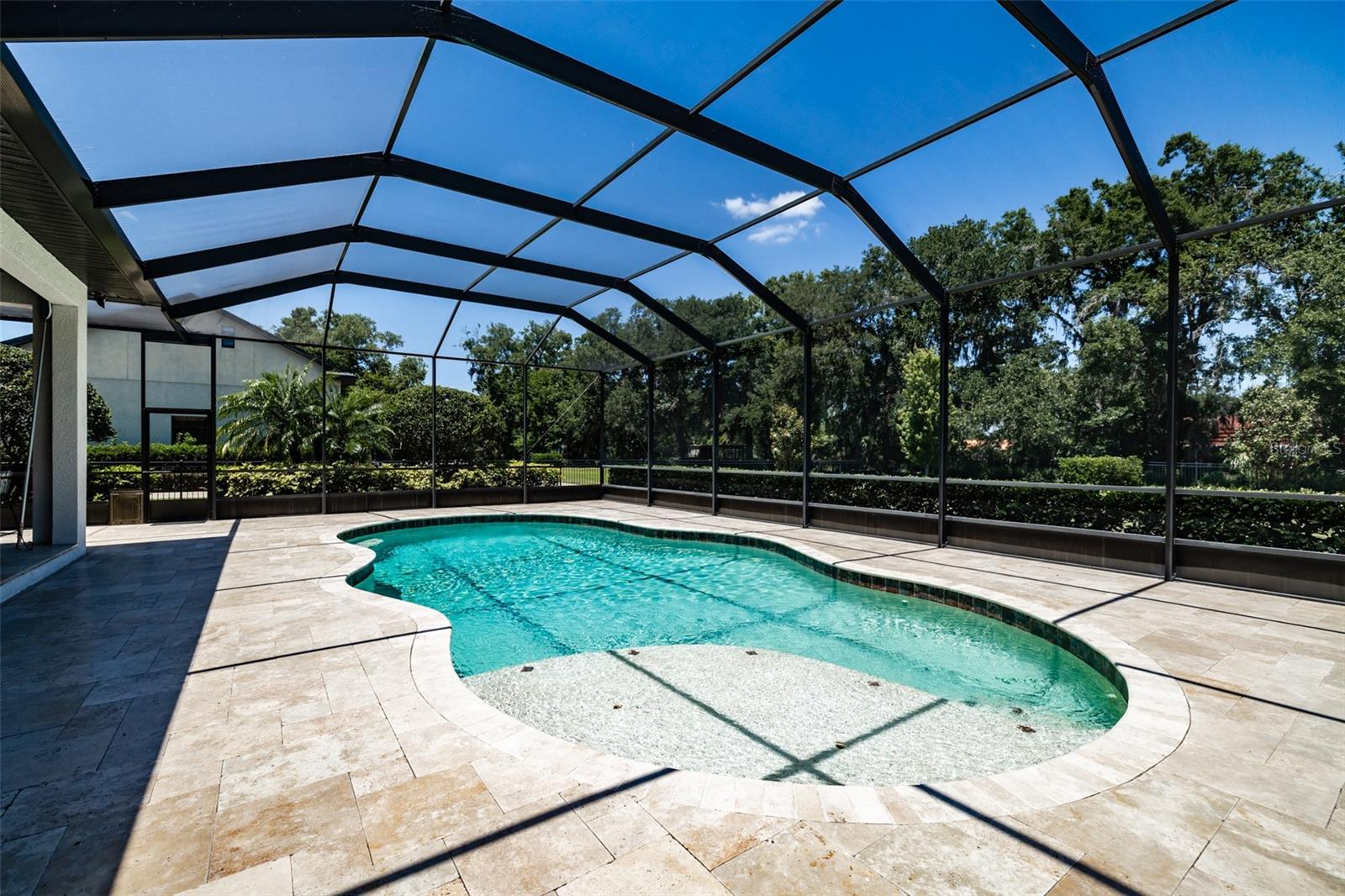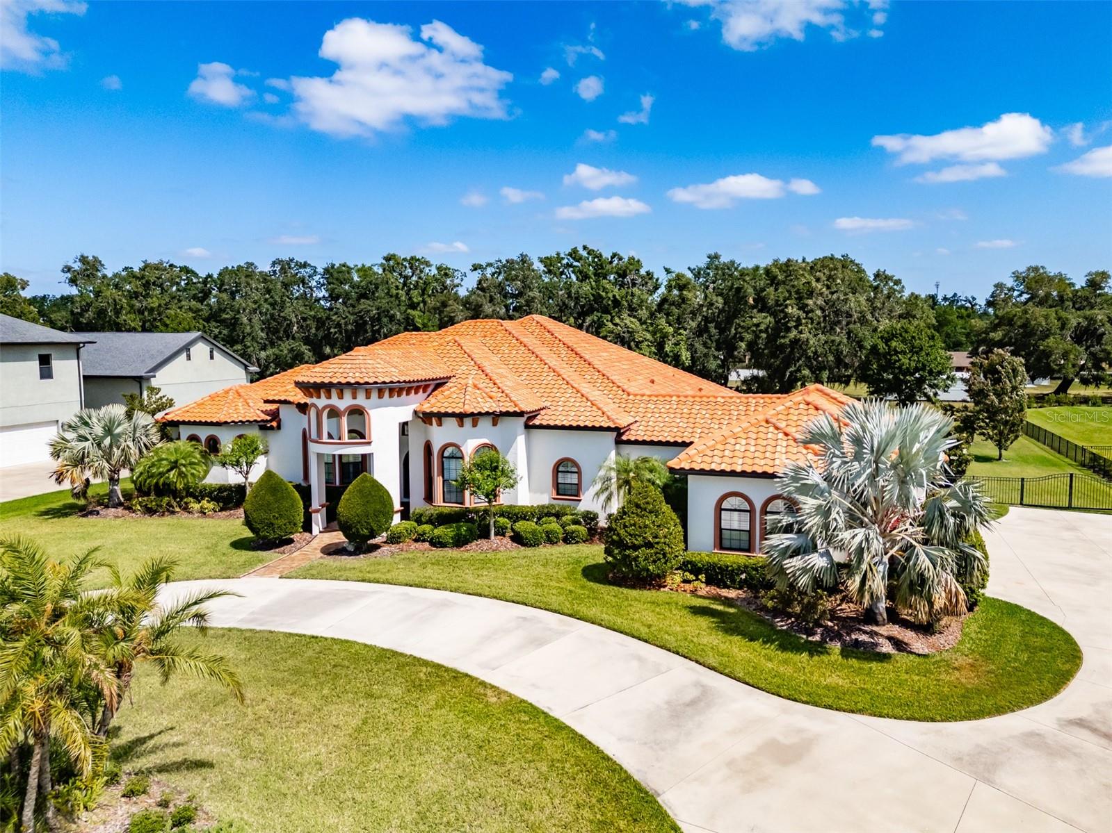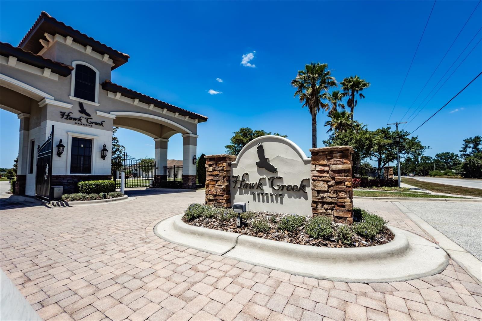Stunning 4-Bedroom, 3.5-Bath Custom Home in Gated Hawk Creek Reserve. This beautifully upgraded 4-bedroom, 3.5-bath home—built by Bartlett Custom Homes—offers luxury, comfort, and thoughtful design in every detail. From the moment you arrive, you're welcomed by a travertine walkway and elegant wood front doors featuring glass and wrought iron. The curb appeal is enhanced by a circle driveway, a side-entry 3-car garage, a tile roof, lush St. Augustine grass, tropical landscaping and sits on 1.10 acres. Inside, the chef’s kitchen is a true delight, boasting a 5-burner gas cooktop with a range hood, GE Profile appliances including a refrigerator with built-in osmosis system and Keurig coffee maker, and double stacked wall ovens. The kitchen features soft-close cabinets with pull-out drawers, a subway tile backsplash, a coffered ceiling, and an extensive island with a sink and bar top for casual dining. A spacious walk-in pantry sits conveniently nearby, and the bright breakfast nook overlooks the lanai through glass pocket sliders. Entertaining is effortless with a butler’s pantry connecting the kitchen and dining room. The formal dining room features a coffered ceiling and a charming bay window. The open, airy family room offers soaring 16-foot box-beamed ceilings and additional pocket glass sliders that transition seamlessly to the lanai. The den or office is generously sized, offering flexibility for work or relaxation. The owner’s retreat is a peaceful haven, featuring a spacious bedroom with ample natural light, two walk-in closets, and private access to the lanai. The luxurious en-suite bath includes a Jacuzzi tub, separate his and her vanities—one with a dedicated dressing area—and a walk-through shower with dual shower heads. All secondary bedrooms in the home are large, with one offering its own private bathroom. There is also a convenient half bath located just off the family room. The laundry room includes a sink, a storage closet, and a hanging shelf, while the mudroom provides plenty of space for dropping off bags and shoes before entering the main living areas. Beautiful wood plank tile flooring and custom shutters are found throughout the home. Additional premium features include a 22-kilowatt propane generator, a built-in Sonos sound system, two tankless on-demand water heaters, a whole-house water softener system, two A/C units, and spray foam insulation to help reduce energy costs. Step outside to the expansive 1,200 sq ft lanai, finished with travertine tile and built for entertaining. It includes an outdoor kitchen and dining area, a sitting area perfect for lounging, and a massive sundeck that overlooks the large, sparkling saltwater pool. The fully fenced backyard provides plenty of space for dogs to play. This home is located in the exclusive, gated neighborhood of Hawk Creek Reserve and is conveniently close to shopping and dining.
