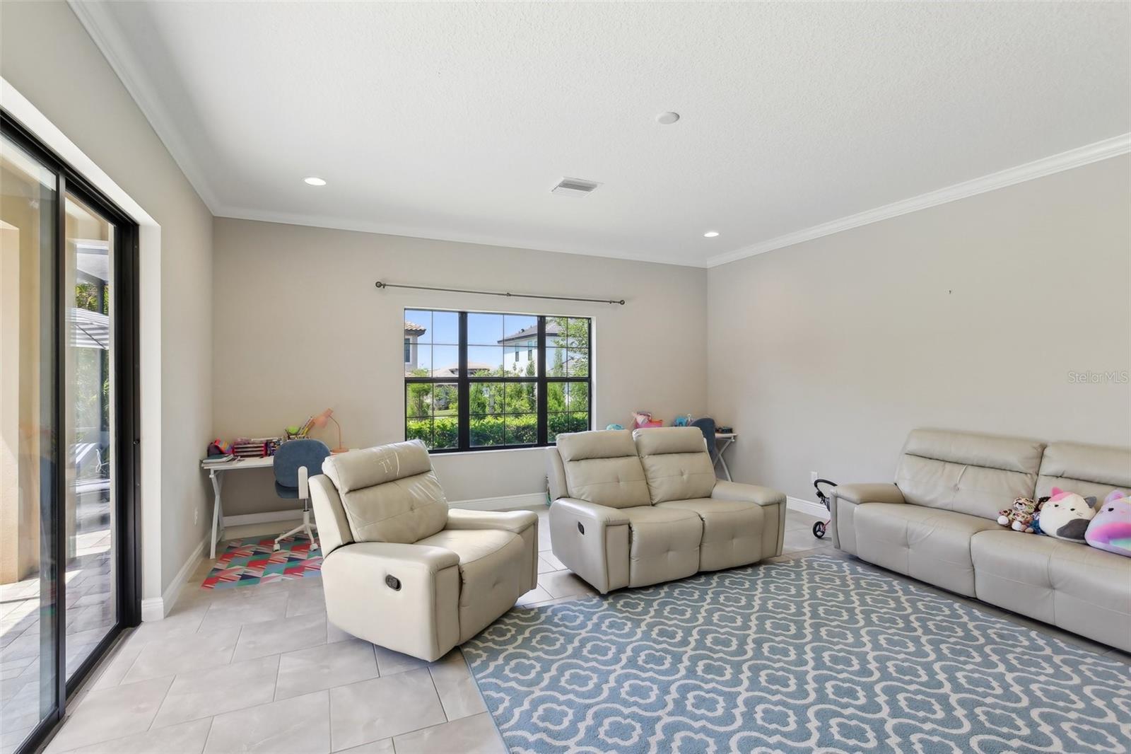 Welcome to 14715 FishHawk Preserve Drive—a beautifully upgraded WestBay “Carrera” executive home in the exclusive gated enclave of The Preserve at FishHawk Ranch. This spacious one-story residence offers over 3,600 sq ft of functional luxury on a private, elevated lot. You’ll be immediately impressed by the tile roof, stacked stone accents, pavered driveway, and side-entry garage. Inside, the home boasts soaring ceilings, wide baseboards, crown molding, and neutral tones, creating an elegant and welcoming atmosphere. A dedicated office with French doors and a formal dining room with tray ceiling greet you at the entrance—perfect for both productivity and entertaining. At the heart of the home, the open kitchen and great room are built for connection and comfort. The kitchen features espresso-finish maple cabinets, Zodiaq quartz countertops, a large island, built-in oven, walk-in pantry, and stainless steel appliances. The great room showcases a stacked stone electric fireplace and a 4-panel slider leading to the lanai and pool. The primary suite is a serene retreat, complete with tray ceiling, custom window treatments, French door access to the lanai, and two walk-in closets. The en-suite bath offers dual vanities, a soaking tub, and a walk-in shower. All bedrooms feature brand-new plush carpet. A large bonus room at the rear of the home is perfect for a media room or future bar—with wet bar pre-plumbing already in place. Step outside to your private resort-style lanai, featuring a saltwater pool and spa with bubbling fountains, pavered decking, and an outdoor kitchen with grill, sink, and fridge—perfect for hosting family and friends. Residents of The Preserve enjoy world-class amenities, including clubhouses, resort pools, tennis courts, fitness centers, playgrounds, and 25+ miles of trails. Zoned for A-rated schools and minutes from shopping, dining, Tampa, MacDill AFB, and Florida’s beautiful beaches—this home truly has it all.