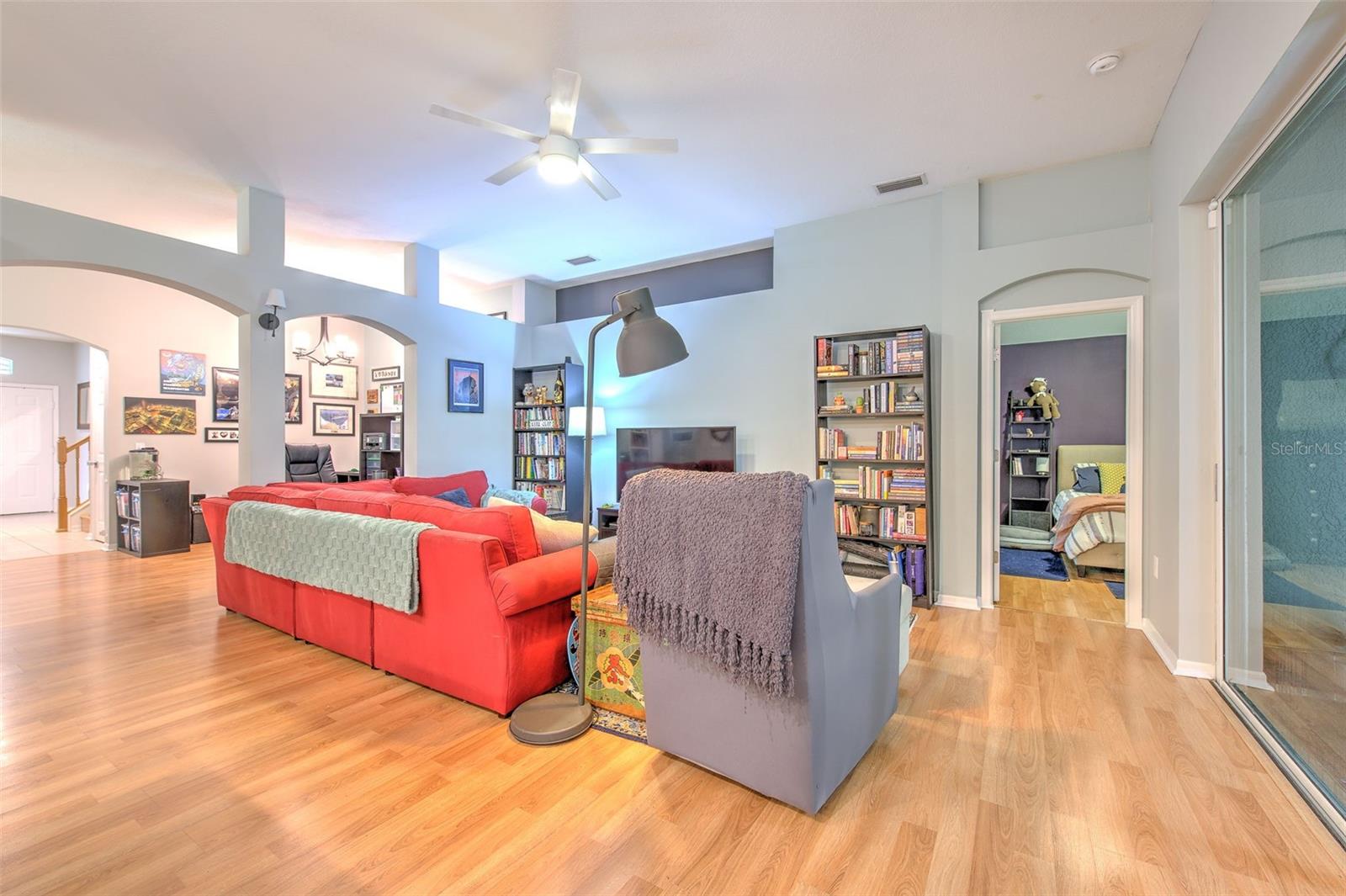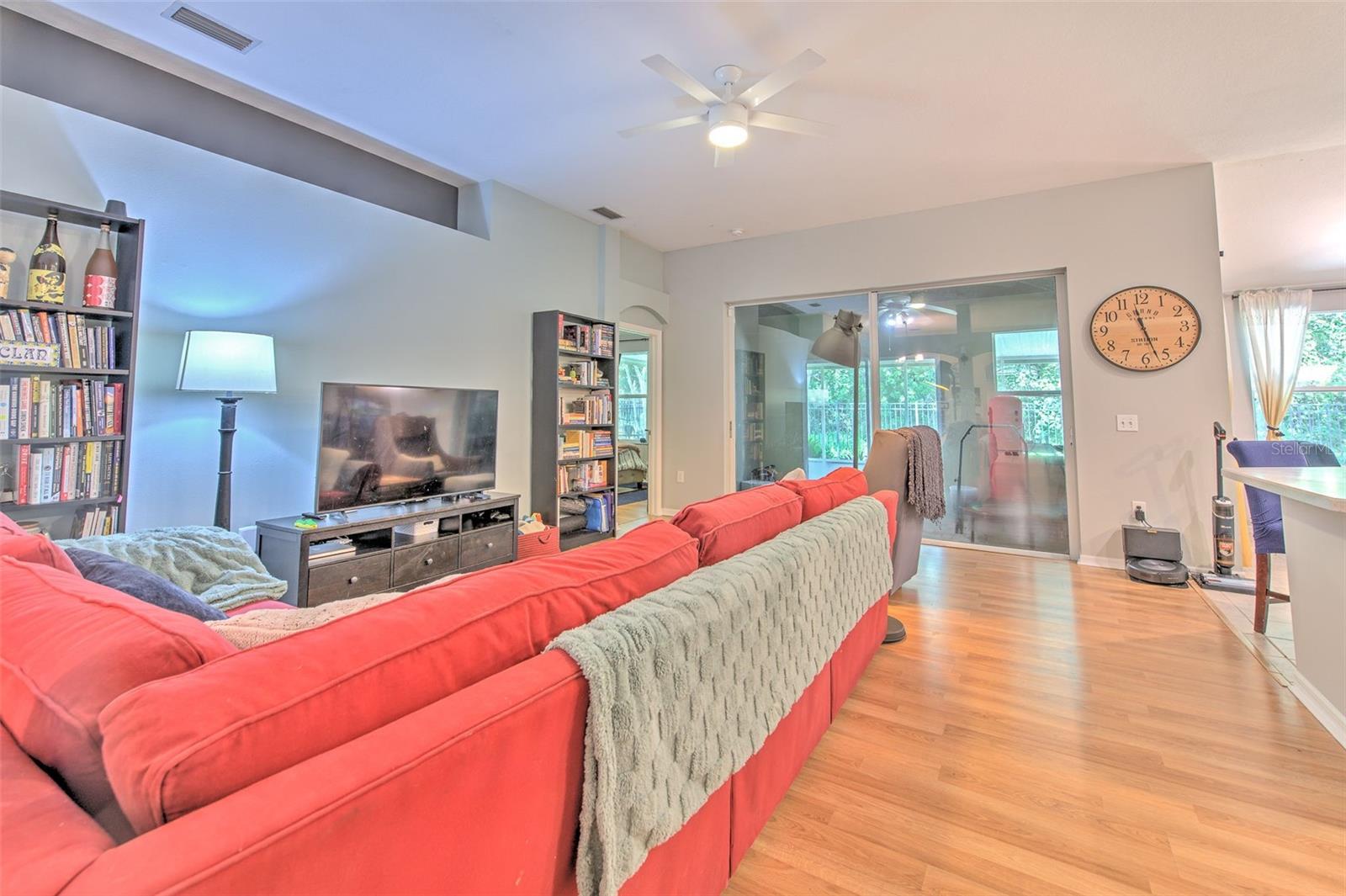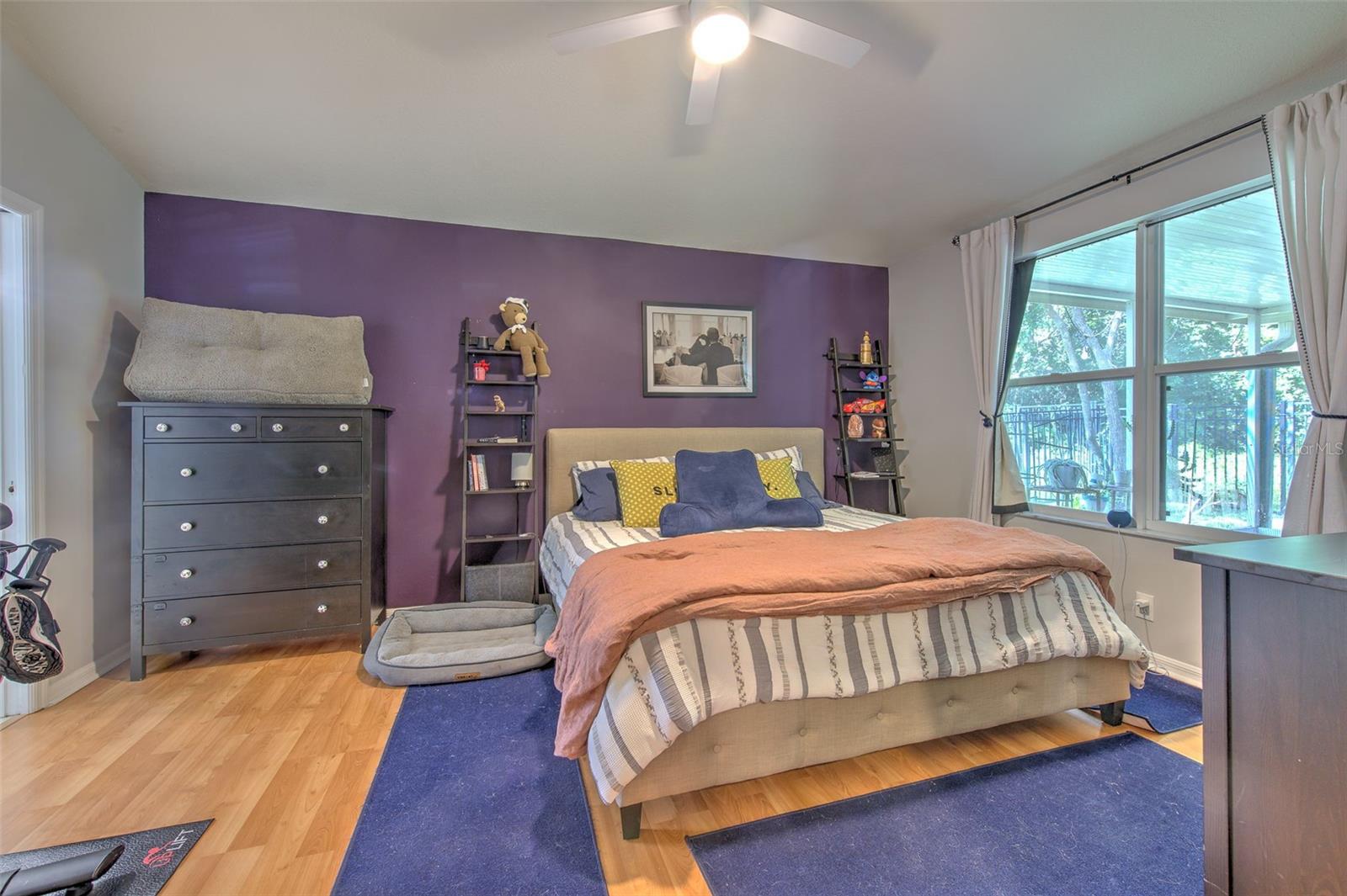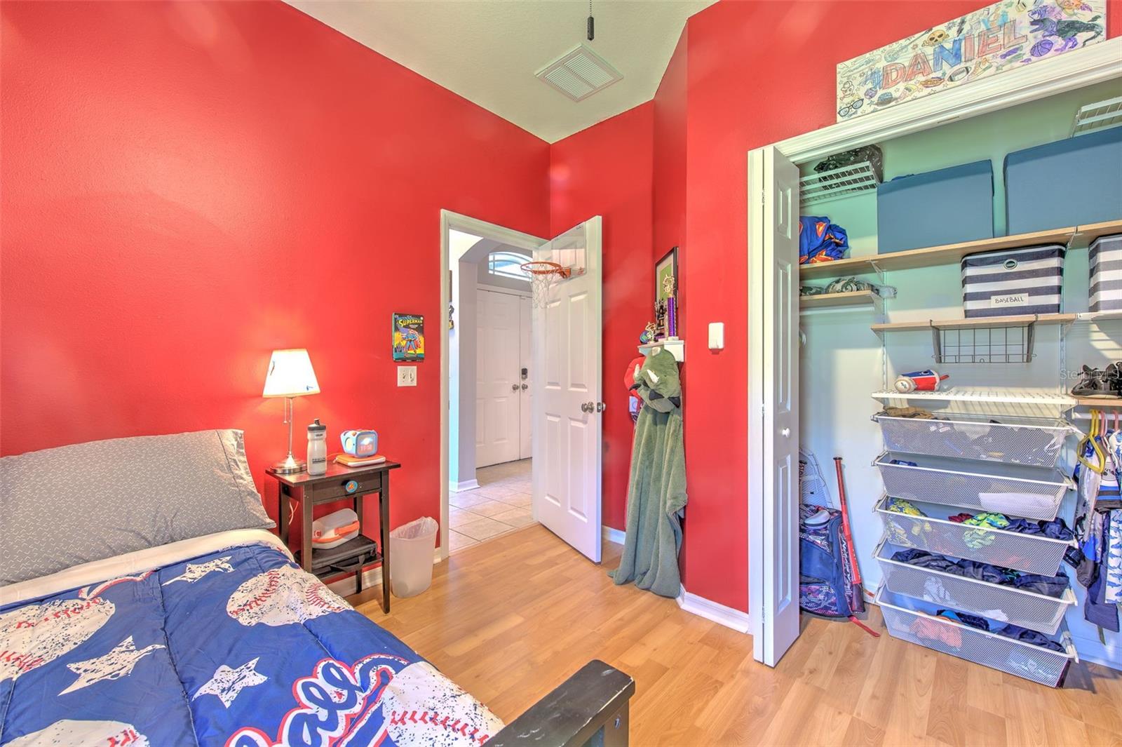 HUGE PRICE IMPROVEMENT!! DON'T MISS THIS ONE! Beautiful 4 bedroom/2 bath home located in the gated community of Martinmeadow. A rated elementary, middle, and high schools. This beautiful Suarez built home offers 2,424 sq. ft of open living space and features 4 bedrooms, 2 baths and Bonus Room that can be used as a 5th Bedroom. The home sits on a fully fenced lot and backs up to conservation area so no backyard neighbors! The inviting double door entryway with transom window welcomes you to this lovely home. Laminate floors throughout with the exception of tile in the wet areas. The floorplan with its triple split feature, starts with bedrooms 1 and 2 to the right and bedroom 3 to the left. You will love the large formal dining area, perfect for holiday celebrations and family dinners and get togethers. The open kitchen offers a breakfast bar and eat-in area for morning gatherings and a spot to enjoy that morning cup of coffee. The kitchen has stainless appliances and plenty of counter space making the kitchen functional as well as open and spacious. The kitchen flows seamlessly into the large family room, perfect for entertaining. Large master bedroom with room for a king-sized bed and also a nice recliner or comfortable chair to sit and enjoy a good book. Large master bathroom with dual sinks, ample storage, garden tub with separate shower, loads of counter space and walk-in closet. Upstairs you will find a large bonus room with built in storage shelves and newly renovated closet. The upstairs bonus room can be used as a bedroom, playroom, office, gaming room or more! Sliding glass doors take you from the family room to the Florida room to enjoy the sunsets with your favorite evening beverage or for a workout room or just a place to relax after a long day of work. The Florida room exits to a large lanai with brick pavers and wooded conservation views. Lots of natural light flows through the large windows and gives this home a bright, open feeling. Tons of storage space, including an over-sized under the stairs storage area. Newer roof (replaced October 2021). New A/C in July 2024. Exterior of Home painted in 2023. Enjoy all of the amazing amenities of Fishhawk Ranch including, The Aquatic Club and Osprey community club houses, resort style pools, parks, tennis, shops, restaurants, skate park, dog park, and more. Call today for your appointment to see what this beautiful home and family friendly amazing community of Fishhawk has to offer!