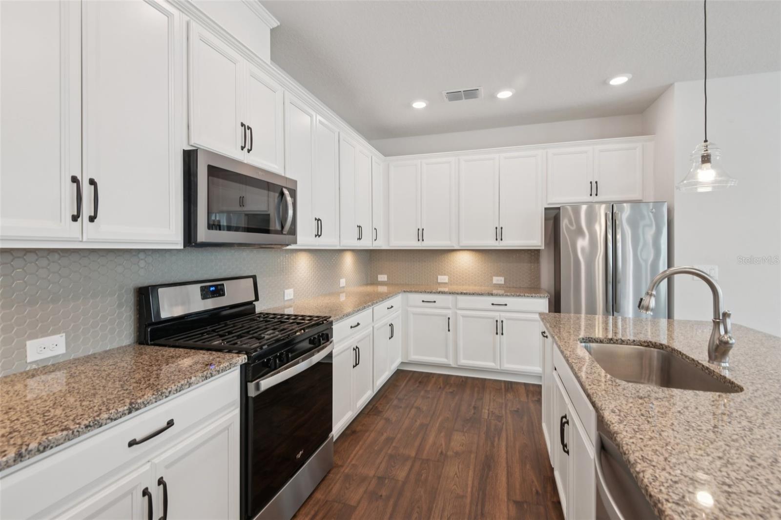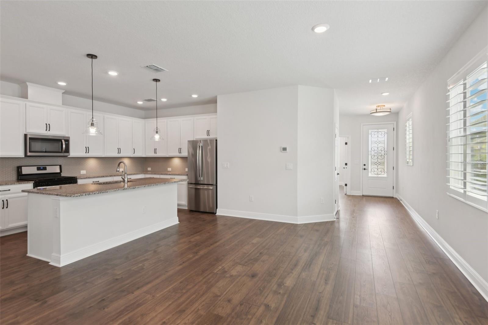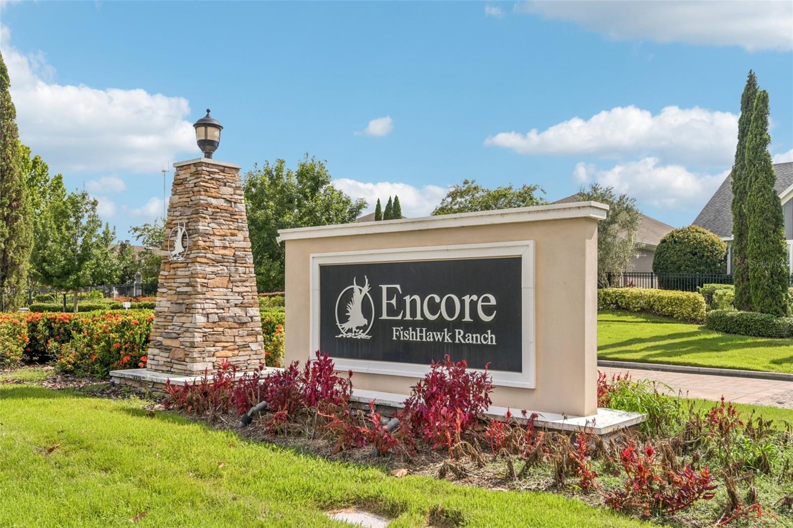 One or more photo(s) has been virtually staged. ***PRICE REDUCTION*** Welcome home to easy living and lasting comfort in Fishhawk’s gated Encore 55+ community by David Weekley Homes. This beautifully designed single-story villa combines thoughtful upgrades, open spaces, and a low-maintenance lifestyle. Sun-filled interiors with high ceilings and recessed lighting flow into a den with French doors and an open layout that connects the kitchen, dining, and family room. The gourmet kitchen features a large prep island with seating, a spacious pantry, 42-inch wood cabinets with soft-close drawers, granite countertops, stainless steel appliances, a gas range, and under-cabinet lighting. The primary suite offers a tray ceiling, dual vanities with granite tops, a walk-in shower, and an expansive closet. The split plan provides privacy, with a comfortable guest bedroom and full bath nearby. A large laundry room with LG washer and dryer, folding counter, and storage adds convenience. Freshly painted and landscaped, this home includes brick-paver walkways, smart lighting controls, designer fixtures, crown molding, new carpet, luxury vinyl plank flooring, and Sunburst Plantation Shutters. The fenced yard with mature landscaping is perfect for pets, and the screened patio connects to a two-car garage with built-in pest control and irrigation. HOA covers lawn care and exterior maintenance for worry-free living. Encore residents enjoy a full social calendar led by a Lifestyle Director and access to the Oasis Club’s many amenities—heated infinity pool, pickleball and bocce courts, BBQ patio, and more—creating a vibrant, connected way of life.