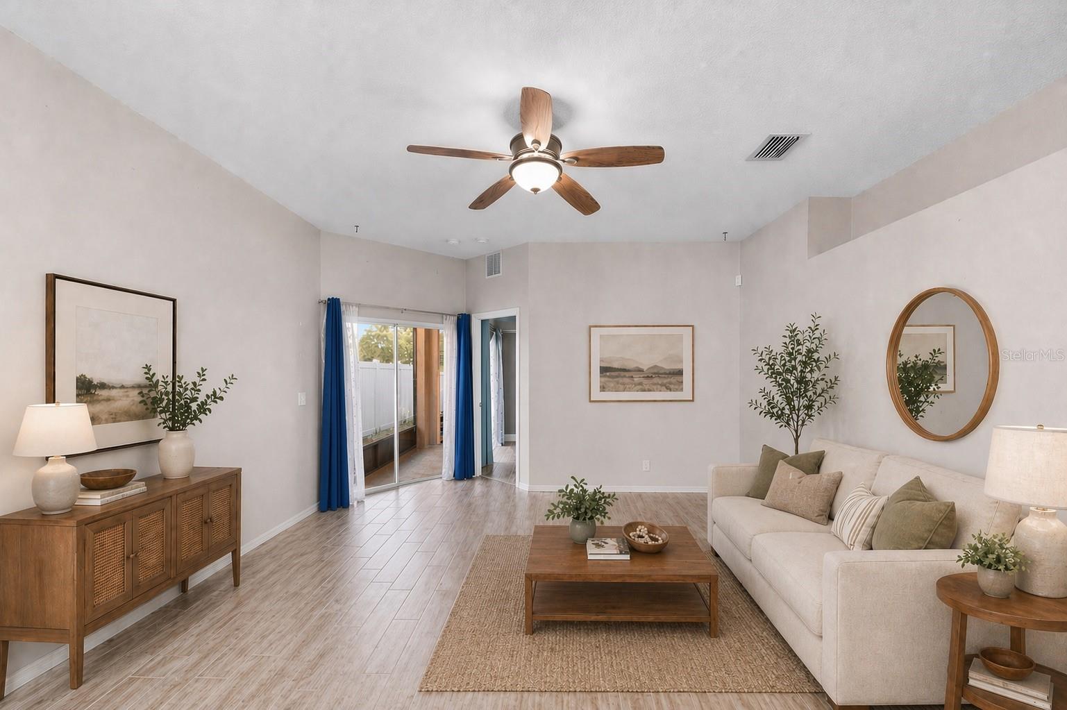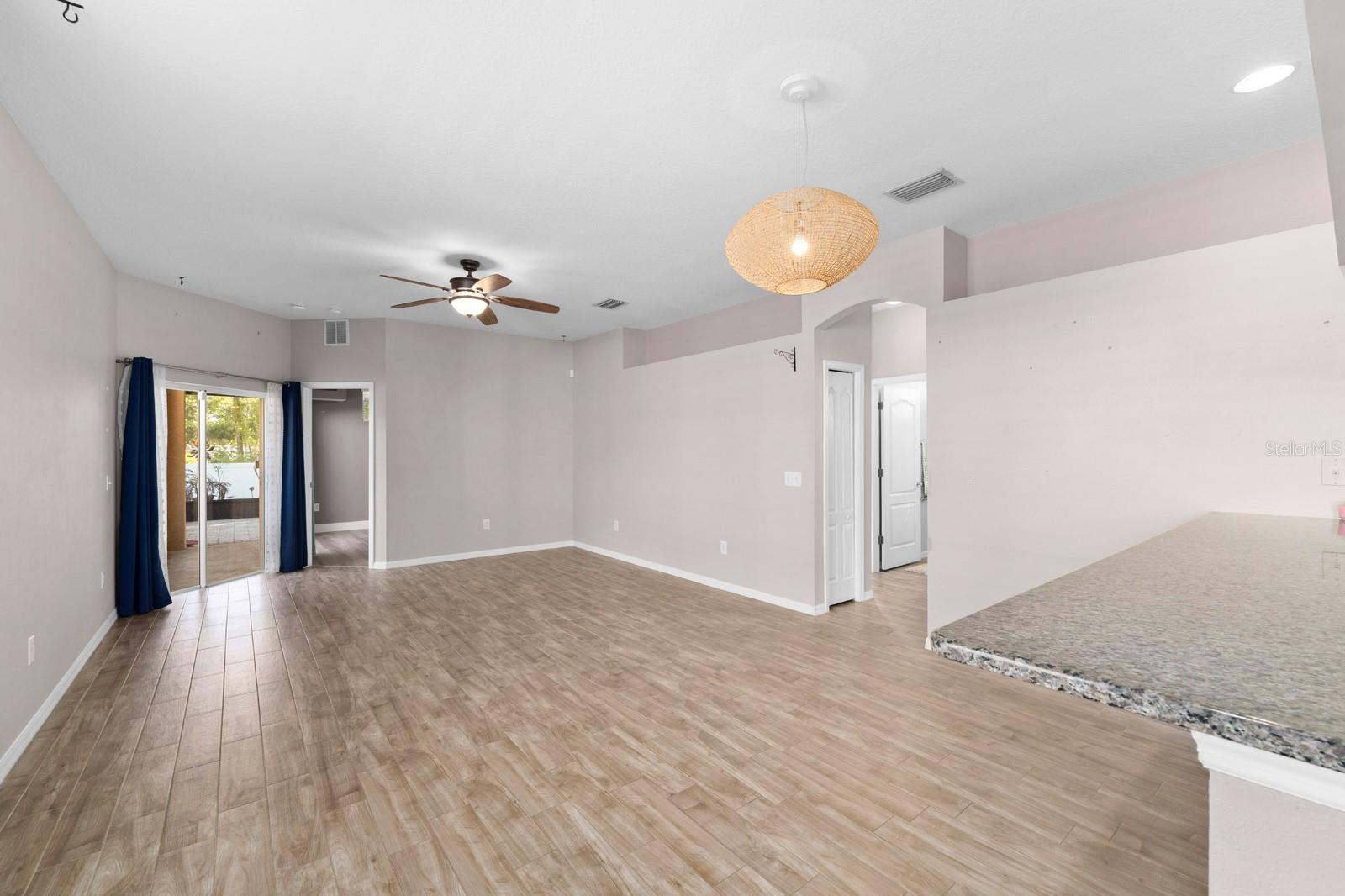One or more photo(s) has been virtually staged. FISHHAWK RANCH UNDER 350k ! Move-In Ready FishHawk Ranch Home with Newer Roof & A-Rated Schools. Welcome to this beautifully maintained 3-bedroom, 2-bath home located in the highly desirable FishHawk Ranch community, known for its A-rated schools and exceptional amenities. This move-in ready home features an inviting open layout, wood-look tile flooring, and abundant natural light throughout. The kitchen offers granite countertops, stainless steel appliances, a gas cooktop, breakfast bar, and plenty of cabinet space—perfect for everyday living or entertaining. The primary suite includes a spacious walk-in closet and direct access to the screened patio. The secondary bathroom has been tastefully updated, adding a modern touch your guests will love. Step outside to a private, fully fenced backyard with no rear neighbors, ideal for relaxing or hosting family and friends. Recent Updates & Upgrades include NEW ROOF (2021), New laminate flooring in all bedrooms, NEW FLORIDA ROOM, / LARGE ENCLOSED PATIO, new gutters, NEW WATER HEARTER, NEW DISHWASHER AND MICROWAVE, Updated secondary bathroom, and NEWER A/C (2023)! Enjoy resort-style living in FishHawk Ranch, offering multiple pools, fitness centers, walking trails, playgrounds, parks, tennis and pickleball courts, and vibrant community events. Conveniently located near MacDill Air Force Base, Downtown Tampa, shopping, dining, and top-rated schools. This home combines comfort, convenience, and community — all in one of Lithia’s most sought-after neighborhoods.