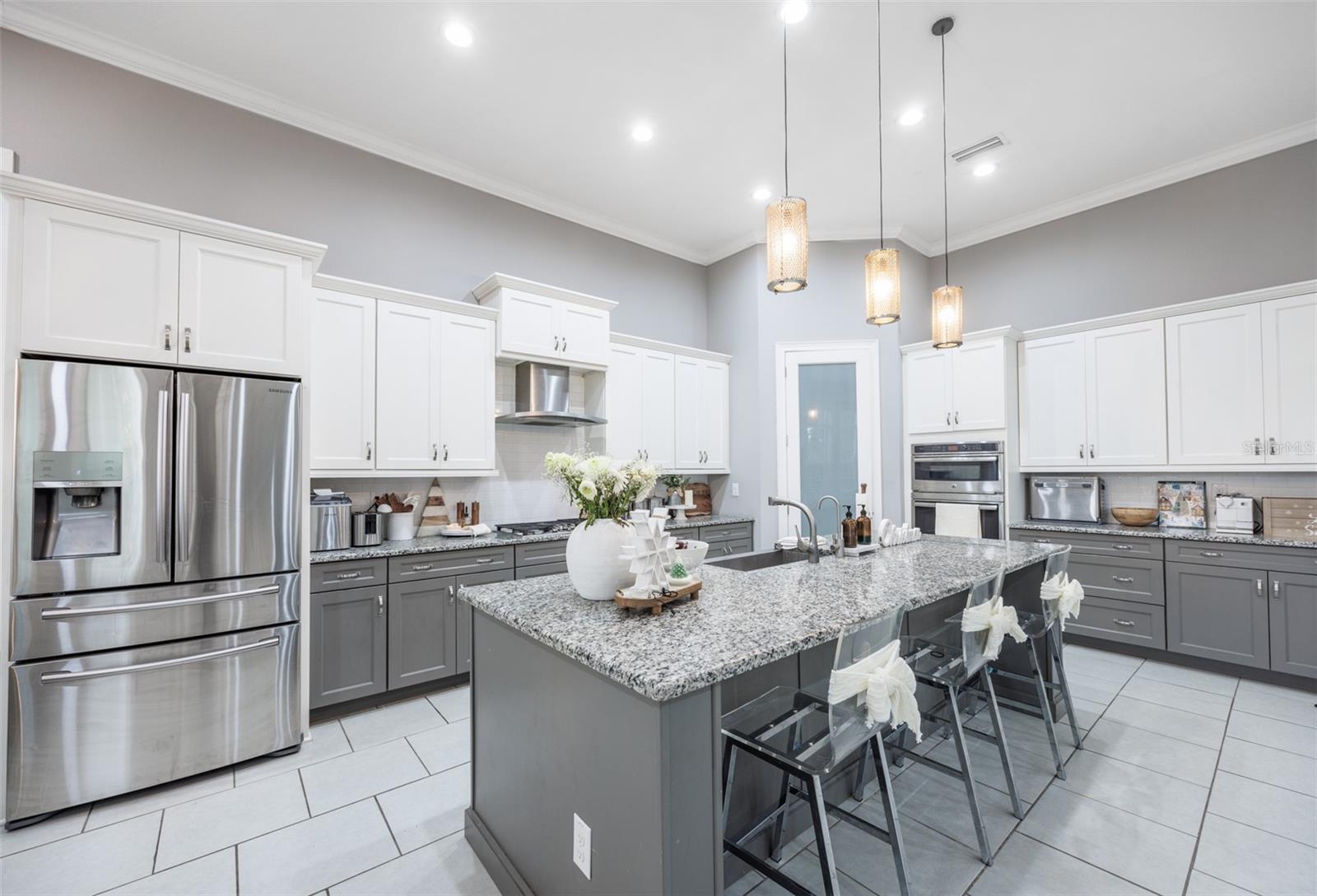 Solar Powered Pool Home with EV Charging in FishHawk West. Energy-efficient 4-bedroom, 3.5-bath home featuring an owned and paid-off solar power system and an electric vehicle charging station installed in the 3-car garage. Situated on an oversized corner lot in FishHawk West, this 4,017 sq ft home also offers a screened saltwater pool, brick-paver patio, private office, and upstairs bonus room—delivering luxury, efficiency, and everyday functionality. A soaring two-story foyer welcomes you inside, leading to a freshly repainted private study with French doors and refinished wood flooring. The formal dining room is accented by a designer chandelier, while the open great room flows seamlessly into the gourmet kitchen for effortless entertaining. The chef’s kitchen features a large island with farmhouse sink, gas cooktop with hood, stainless steel appliances, granite countertops, subway tile backsplash, built-in wine fridge, walk-in pantry with roll-out shelving, and instant hot water at the sink. A bright breakfast nook overlooks the screened lanai and pool. The first-floor primary suite offers a peaceful retreat with abundant natural light and pool views. The spa-inspired bath includes dual vanities, a freestanding soaking tub, and an oversized walk-in shower with custom tile. Dual walk-in closets with built-in organization provide excellent storage. Upstairs, secondary bedrooms all include walk-in closets, with two connected by a Jack-and-Jill bath. The versatile bonus room features built-in shelving and a Murphy bed—ideal for guests, media, or play space. Additional upgrades include Japanese-style toilets, LED lighting throughout, newly installed carpet (2025), and added recessed lighting. Step outside to your private oasis with a screened lanai, saltwater pool, brick-paver patio, and gas hookup for an outdoor grill—perfect for Florida living. The epoxy-finished 3-car garage includes overhead LED bar lighting and EV charging capability. FishHawk West residents enjoy resort-style amenities including pools, fitness centers, parks, playgrounds, miles of trails, and the picturesque Lake House. Zoned for top-rated schools with the elementary and middle schools located within the community, this home offers an exceptional blend of efficiency, comfort, and lifestyle.