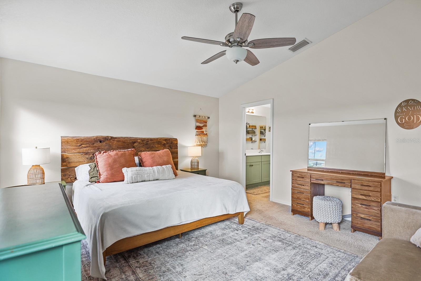 Welcome to this impeccably maintained 3-bedroom, 2-bathroom home offering 1,602 square feet of thoughtfully designed living space in the desirable Hawkstone community. Perfectly suited for first-time home buyers or anyone seeking a move-in ready property, this residence blends comfort, style, and functionality with modern updates throughout. The heart of the home is the beautifully appointed kitchen, featuring colorful cabinetry, a stylish backsplash, stainless steel appliances, and a large center island enhanced by an updated statement light fixture. Custom shiplap detailing elevates both the island and the living room accent wall, adding warmth and character. The kitchen overlooks a cozy dinette area and spacious living room, creating an open-concept layout ideal for everyday living and entertaining. Large sliding glass doors lead to a screened lanai, extending your living space outdoors. Step outside to enjoy a fully fenced backyard with no rear neighbors, offering added privacy. Lush St. Augustine grass enhances both the front and back yards, providing great curb appeal and a comfortable outdoor setting. The split-bedroom floor plan offers privacy and convenience. The primary suite is tucked away at the rear of the home and features an en-suite bathroom with a large step-in shower and double sink vanity. Bedrooms two and three are positioned toward the front of the home and share access to the second full bathroom. A dedicated laundry room with a charming barn door provides access to the two-car garage. Additional features include a water softener installed in 2024, a keyless front door entry system, and Ring cameras at both the front and back of the home—all conveying with the sale. Residents of Hawkstone enjoy access to a community pool and benefit from close proximity to highly rated schools, shopping, dining, and everyday conveniences. This home offers the ideal combination of style, comfort, and location—schedule your private showing today.
