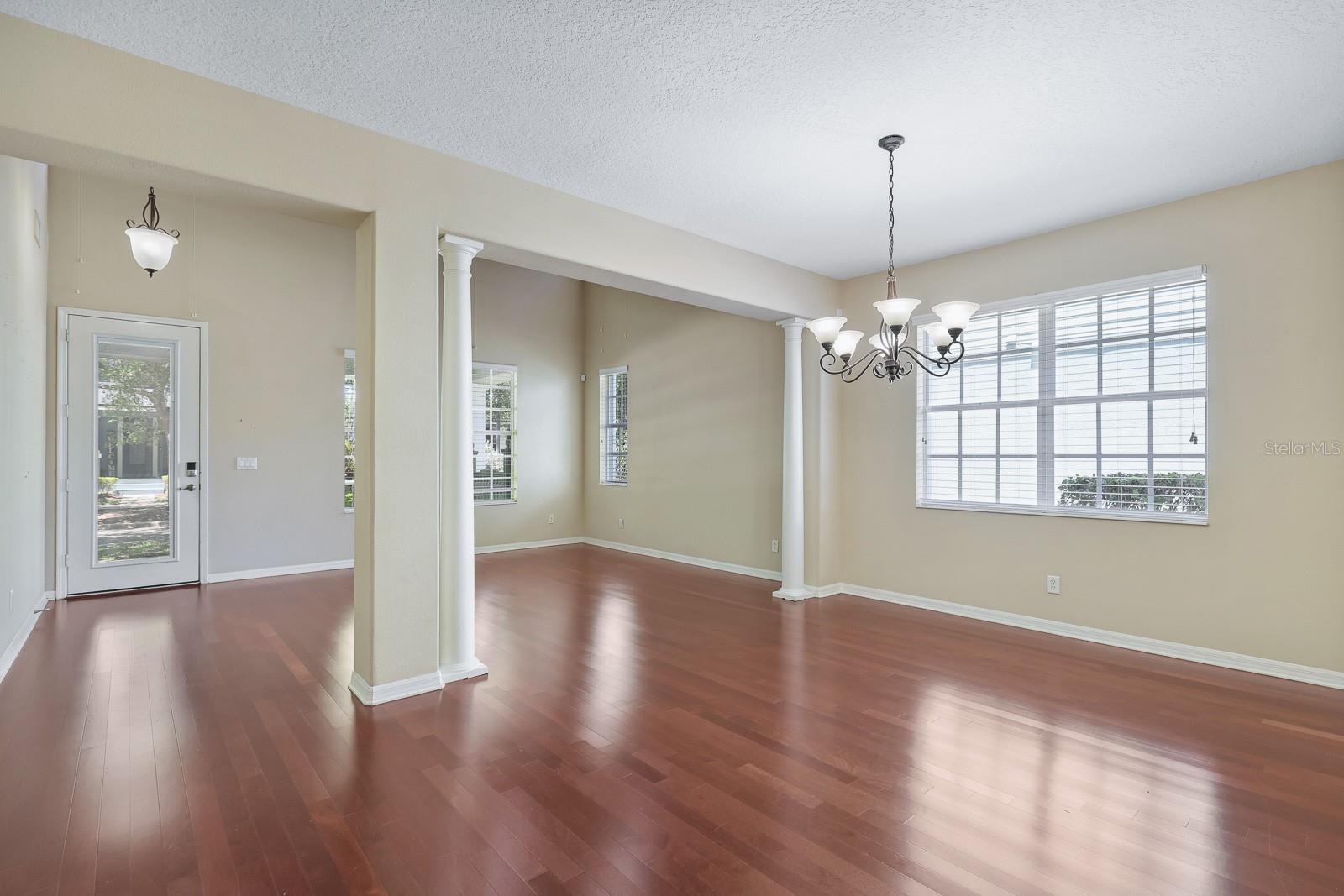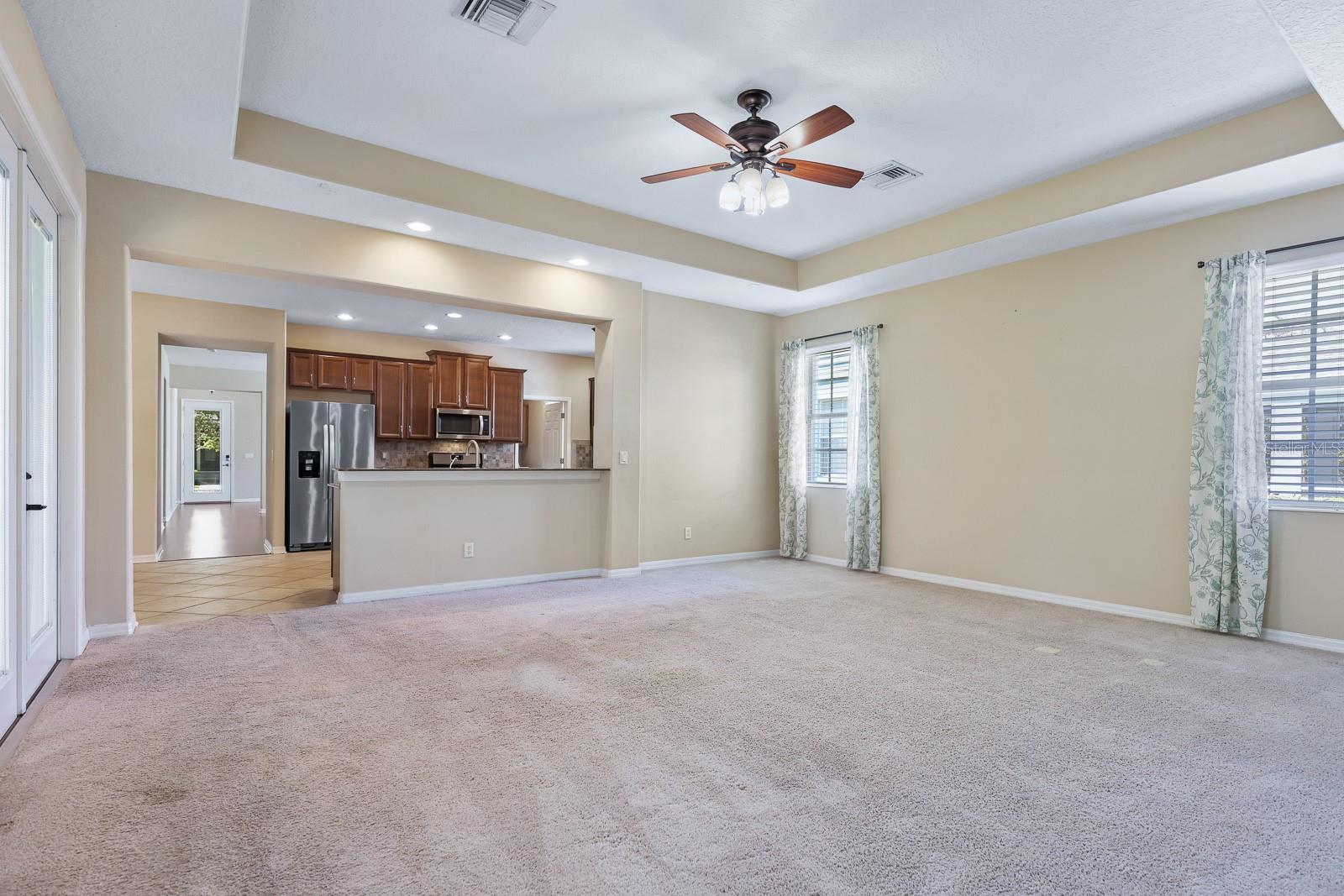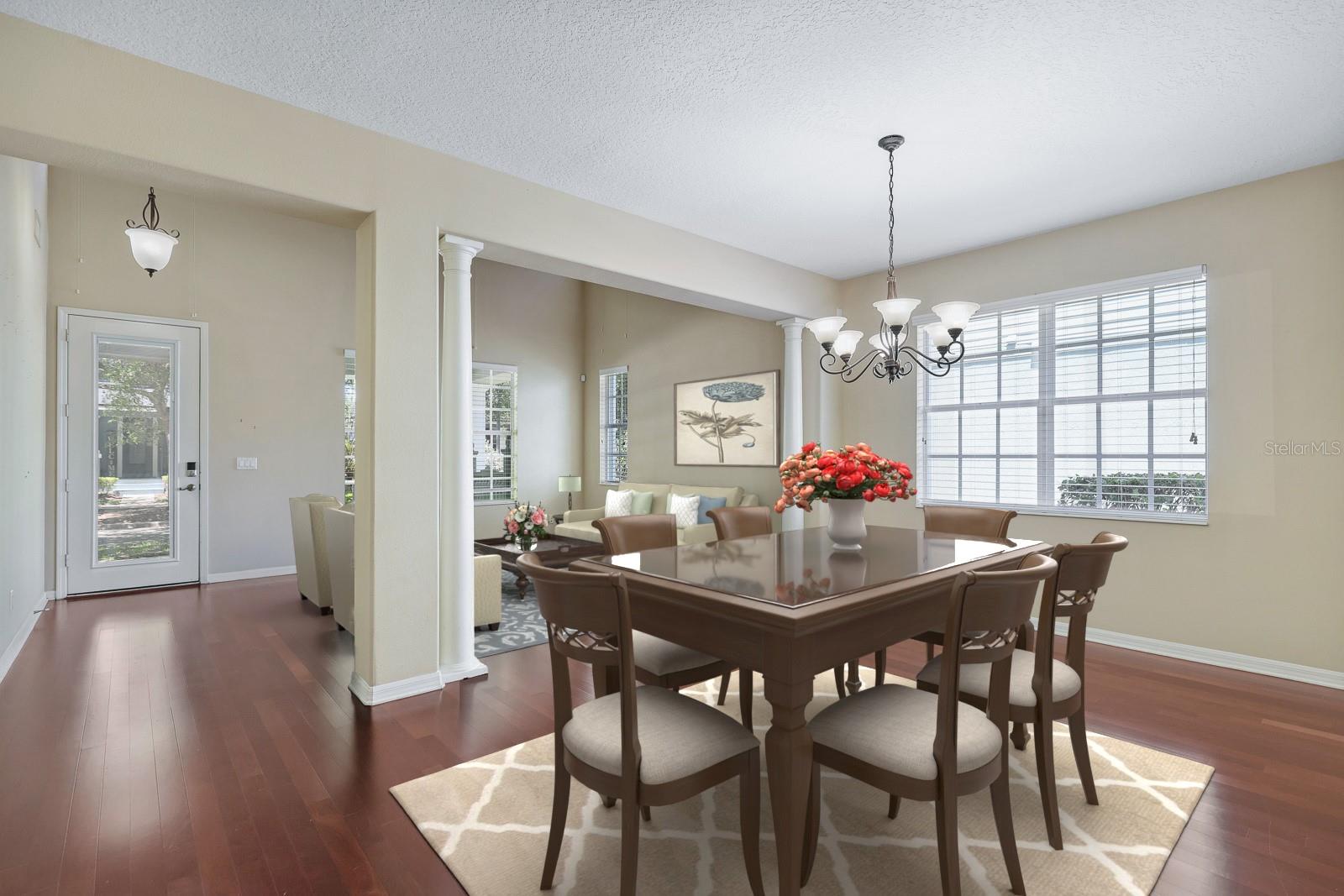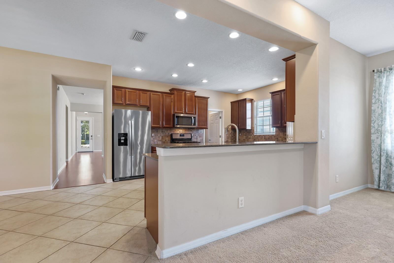 One or more photo(s) has been virtually staged. Move-in ready and a must-see! This well-maintained 4-bedroom, 2.5-bath home is situated on a desirable corner lot in the Garden District of FishHawk Ranch. Recent updates include refreshed interior paint (2024), a NEW roof (2022), hot water heater replacement (2022), exterior repainting (2021), and kitchen appliances replaced in 2017. An expansive covered front porch welcomes you with peaceful neighborhood views. Enter through a full-panel glass front door with built-in blinds into a living and dining combination featuring soaring ceilings and hardwood floors. The gourmet kitchen is thoughtfully designed with stainless steel appliances, including a gas range and side-by-side refrigerator, 42" cherry cabinetry, a prep island, mosaic tile backsplash, and abundant counter space. Just off the kitchen, you’ll find a cozy breakfast nook and a conveniently located powder room with access to the screened patio. The laundry room includes a washer, dryer, and utility sink for added convenience. The spacious family room offers neutral carpet and French doors with built-in blinds that open to a private screened patio with a finished outdoor sitting area, ideal for enjoying a fire pit. The downstairs primary suite features an en-suite bath with dual sinks, ceramic tile flooring, a garden tub, a walk-in shower, a linen closet, a large walk-in closet, and a private water closet. Upstairs, the secondary bedrooms are generously sized and share a full hall bath with double sinks. Located near FishHawk Ranch’s sought-after amenities, including the Aquatic Center resort-style pool and playground, Park Square with shopping and dining, and miles of nature trails and pocket parks.