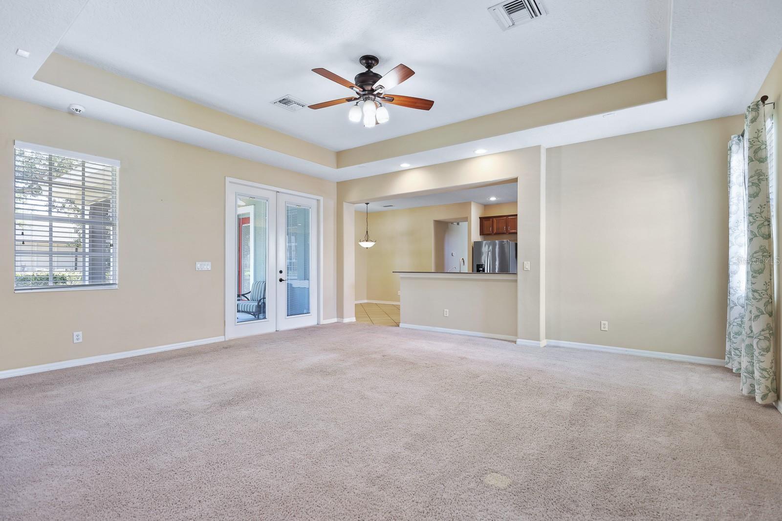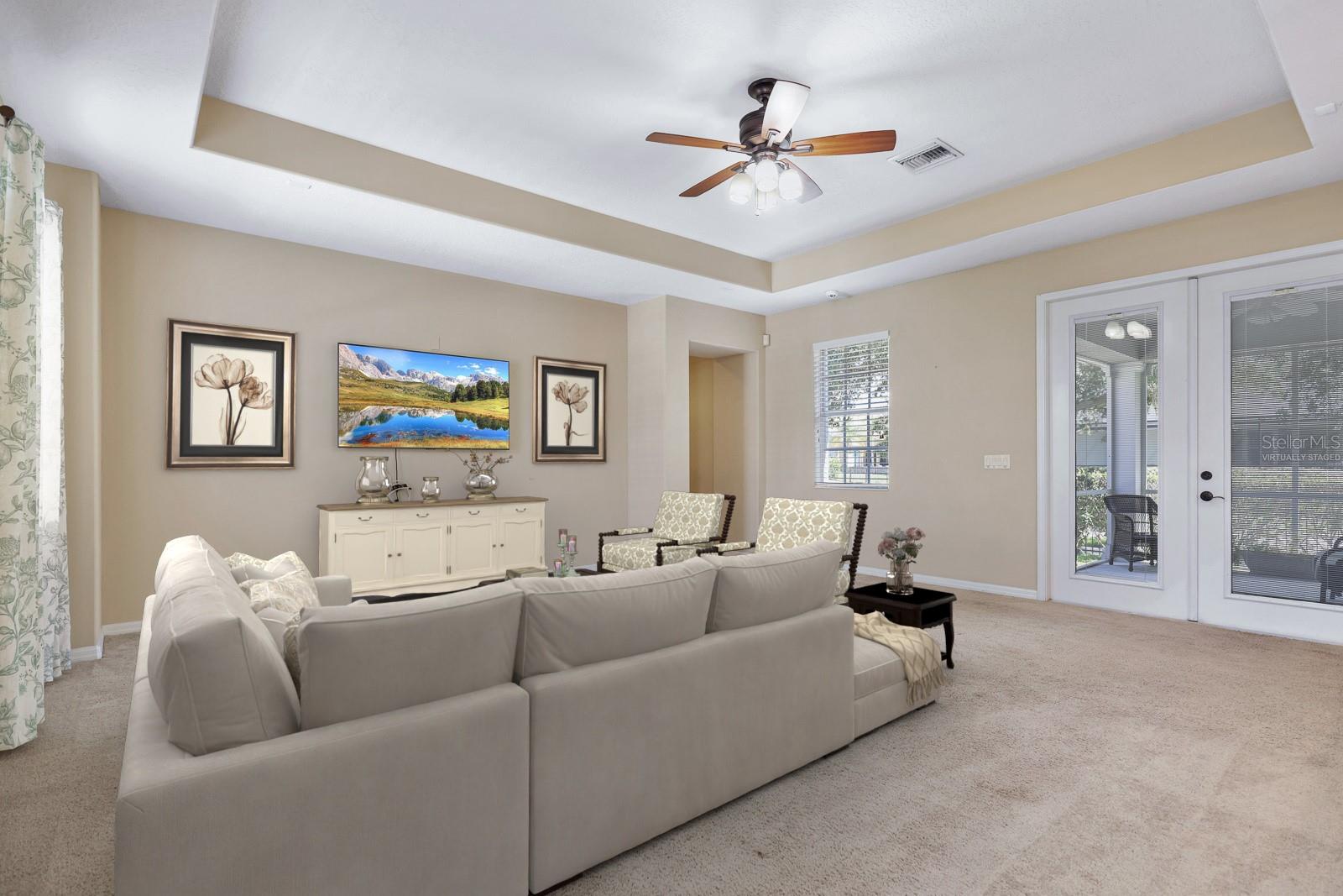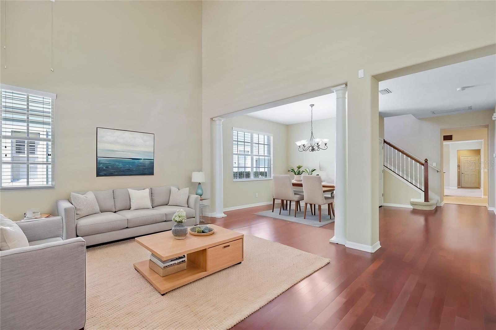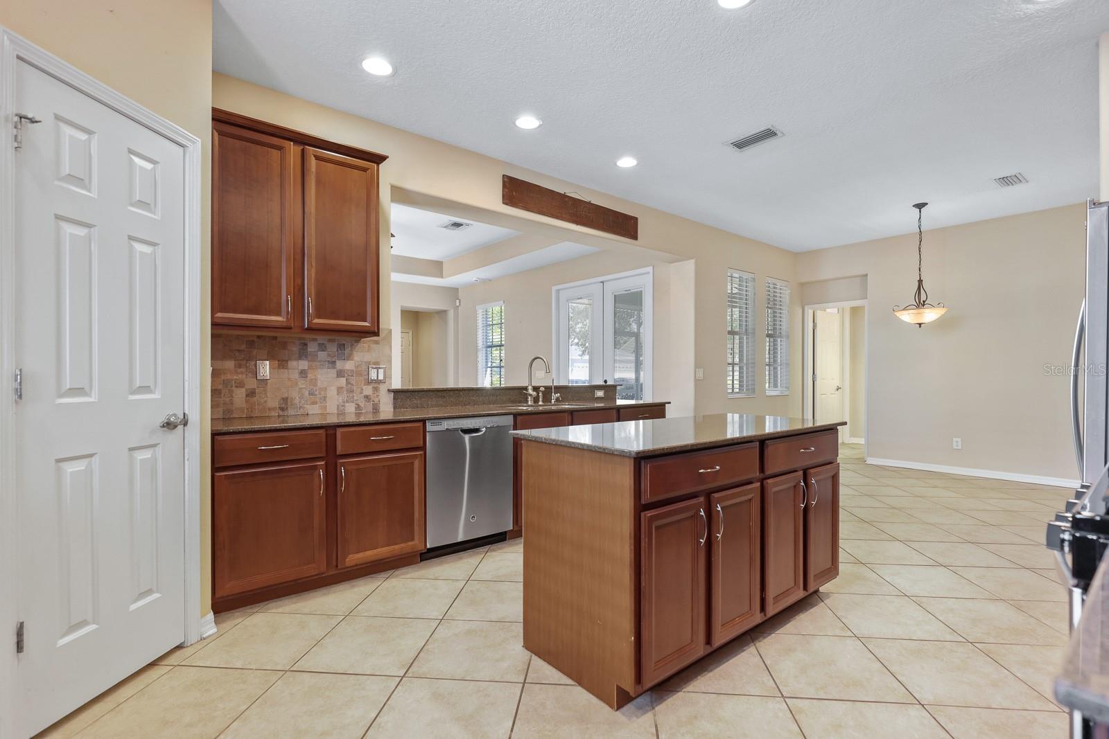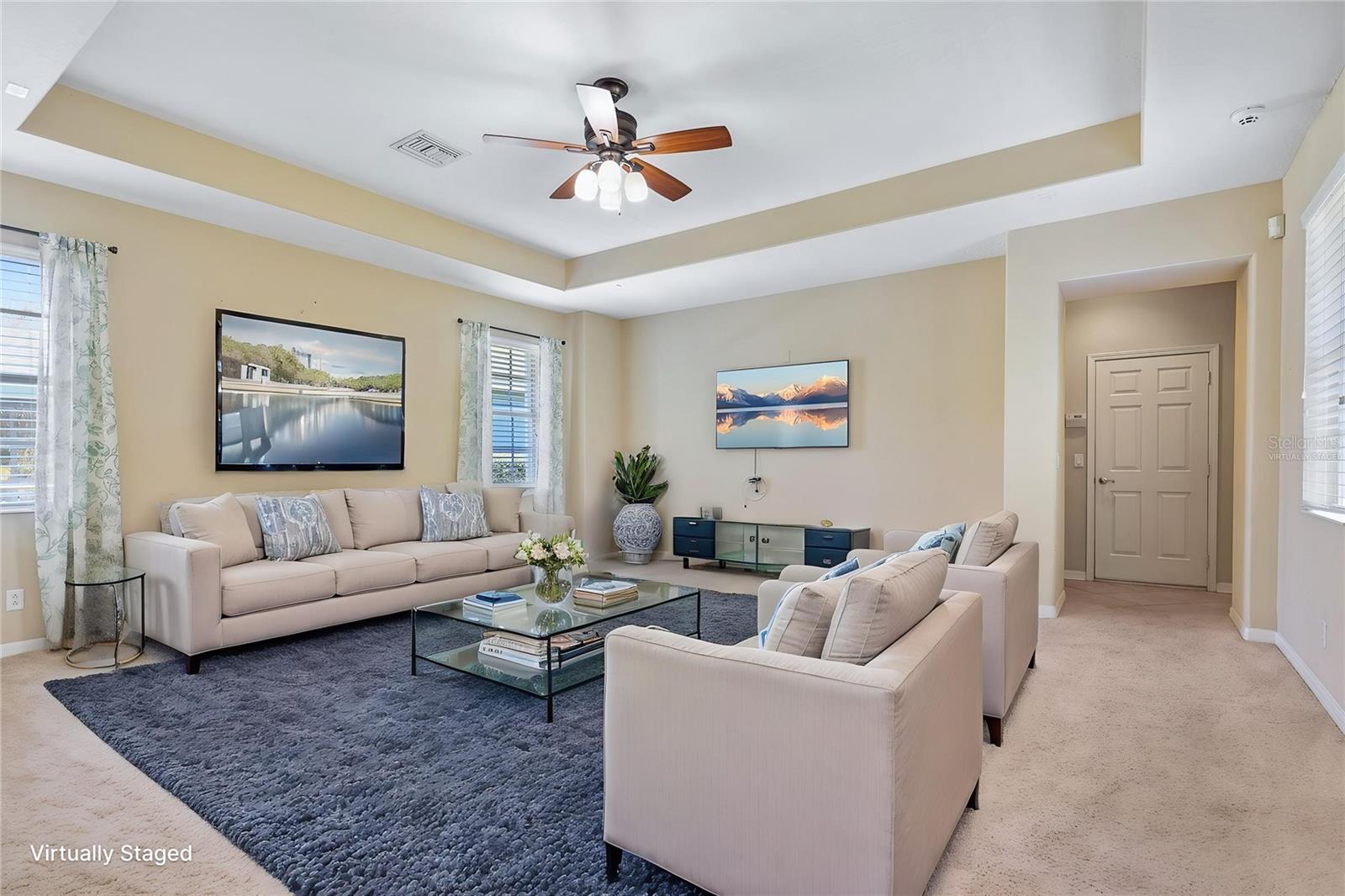One or more photo(s) has been virtually staged. Move-in ready and a must-see! This well-maintained 4-bedroom, 2.5-bath home is situated on a desirable corner lot in the Garden District of FishHawk Ranch. Recent updates include refreshed interior paint (2024), a NEW roof (2022), hot water heater replacement (2022), exterior repainting (2021), and kitchen appliances replaced in 2017. An expansive covered front porch welcomes you with peaceful neighborhood views. Enter through a full-panel glass front door with built-in blinds into a living and dining combination featuring soaring ceilings and hardwood floors. The gourmet kitchen is thoughtfully designed with stainless steel appliances, including a gas range and side-by-side refrigerator, 42" cherry cabinetry, a prep island, mosaic tile backsplash, and abundant counter space. Just off the kitchen, you’ll find a cozy breakfast nook and a conveniently located powder room with access to the screened patio. The laundry room includes a washer, dryer, and utility sink for added convenience. The spacious family room offers neutral carpet and French doors with built-in blinds that open to a private screened patio with a finished outdoor sitting area, ideal for enjoying a fire pit. The downstairs primary suite features an en-suite bath with dual sinks, ceramic tile flooring, a garden tub, a walk-in shower, a linen closet, a large walk-in closet, and a private water closet. Upstairs, the secondary bedrooms are generously sized and share a full hall bath with double sinks. Located near FishHawk Ranch’s sought-after amenities, including the Aquatic Center resort-style pool and playground, Park Square with shopping and dining, and miles of nature trails and pocket parks.
