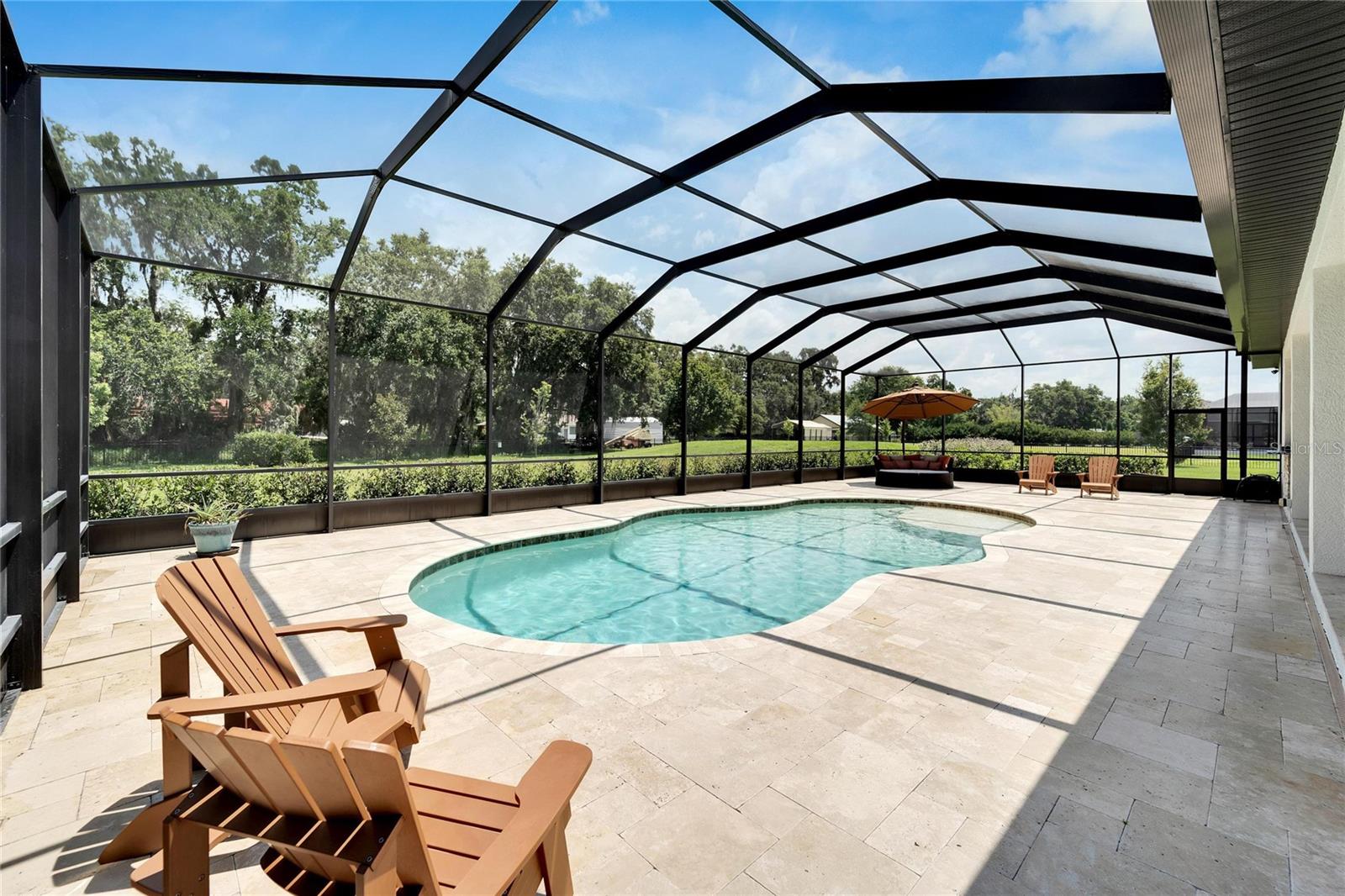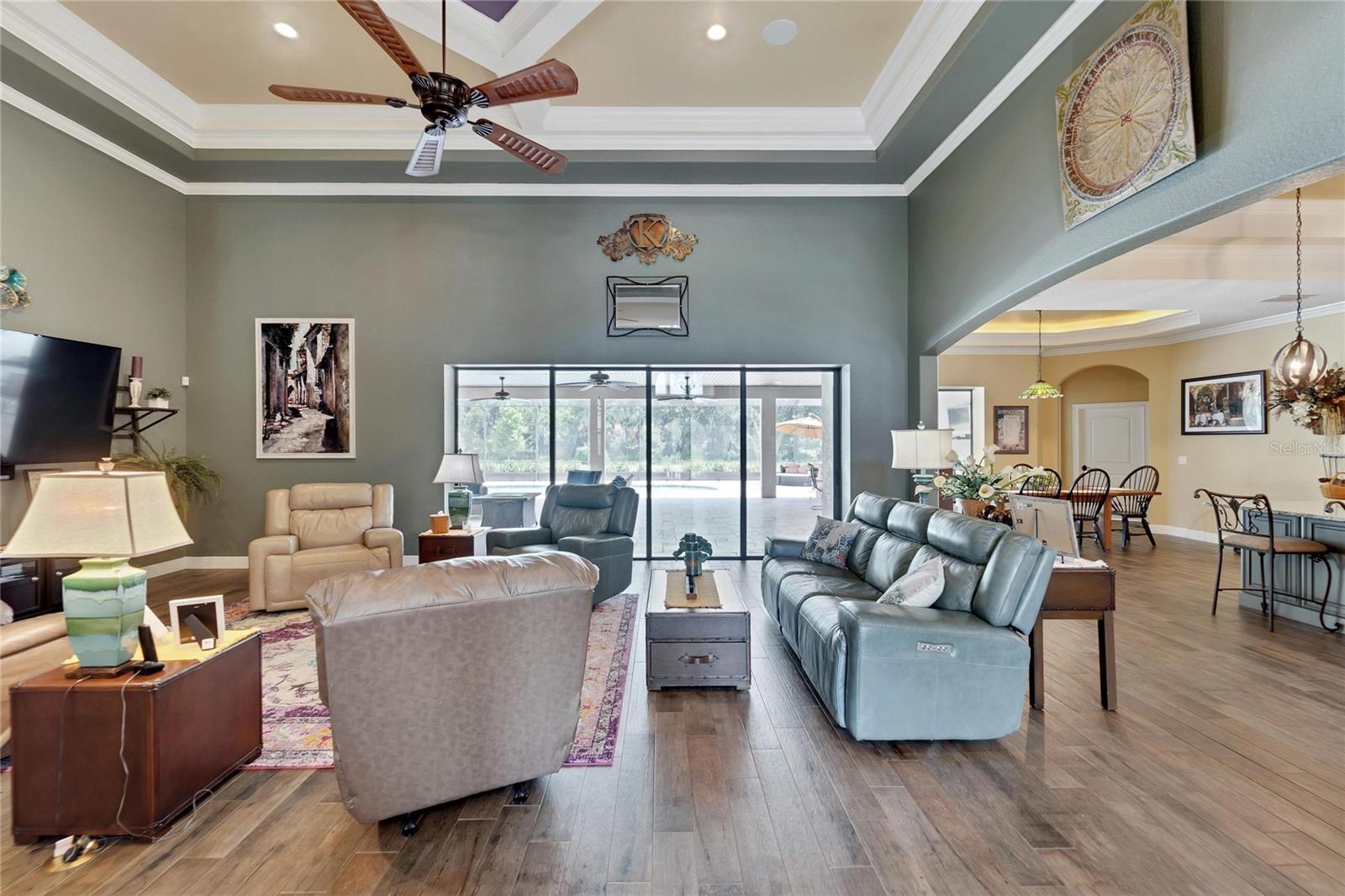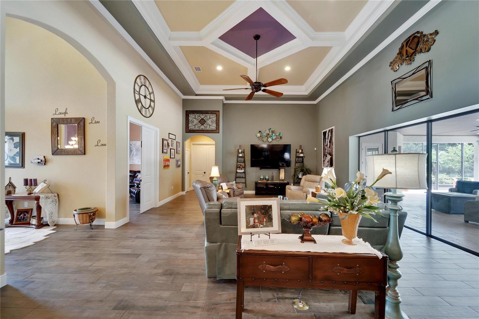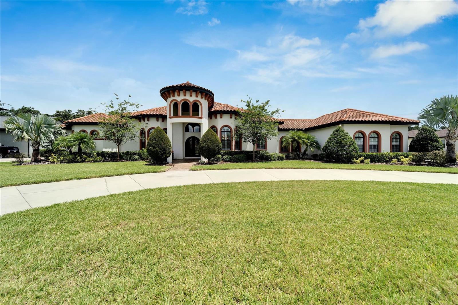 Stunning Jack Bartlett Custom Estate Home located in the private gated community of Hawk Creek. This Elegant estate features Four Bedrooms with an office/den, Three and one half baths, 1200 square feet of under roof lanai featuring an outdoor kitchen which overlooks a spacious salt water pool and the massive backyard of a little more than a fenced 1 acre lot. The moment you step up to the grand entry you will notice the double wood and iron front doors, travertine pavers and plantation shutters. Upon entering you will be wowed by the open floor plan, wood plank tile throughout and gorgeous architectural details and custom molding. This Great Room plan allows for large gatherings with the gourmet kitchen to be the center of attention. The Butlers Pantry offers both function and beauty entering into the dining room. Located on the west side of the home the owner's suite is absolutely magical. The luxurious garden tub is the focal point and the backdrop to the large semi circular walk-in shower and flanked by vanities lining both walls. The Owner's bedroom has 2 walk-in closets and a door leading to the lanai. This 3 way split plan offers two bedrooms that share a bath and a one bedroom suite. There is a half bath close to the Great room and Office/Den. Arriving into the garage, enjoy the spacious 3 car side entry and enter into a large mudroom and cheerful laundry room with utility sink and window. This home features indoor/outdoor living at its finest with 1200 square feet of outdoor living space. No detail has been missed with travertine pavers, vinyl ceilings, stone facade covering outdoor kitchen and Agua link automated pool integration. Stay worry free during power outages with a 22 kilowatt generator that runs on propane. This custom home has many features that are worth mentioning. Two tankless gas water heaters (one NEW), a built in sonos sound system, spray foam insulation in attic and the peace of mind with a house built by a builder with a reputation for integrity and quality. Hawk Creek Reserve has highly desirable and SOUGHT AFTER, with it's TOP rated schools and excellent location Within an hour to the #1 Rated St. Petersburg Beach, 45 minutes to Tampa International Airport, 35 minutes to Downtown Tampa and close to restaurants, shopping and more! Homes like this one do not come on market often. Call today for your personal tour! Please note, Dinette light fixture does not convey.