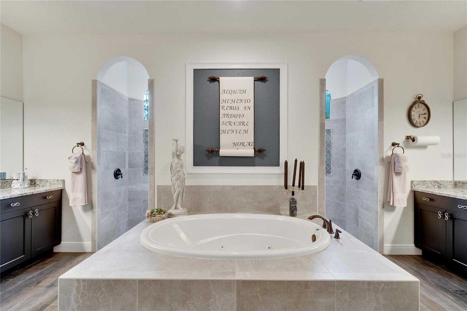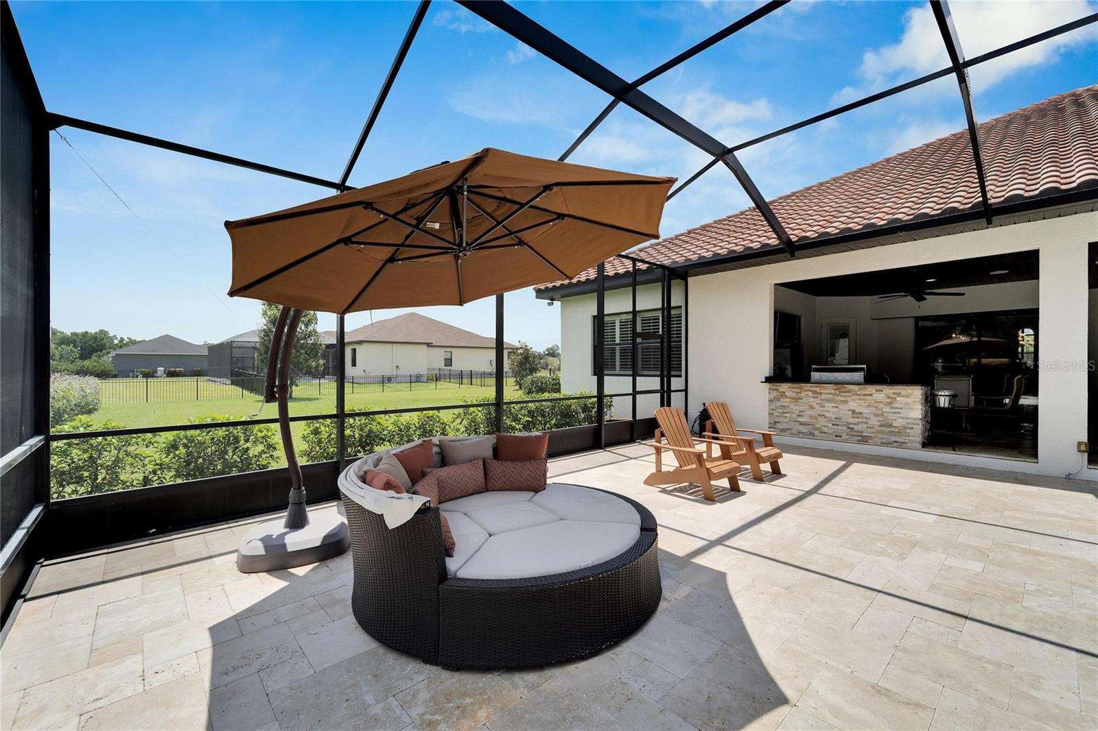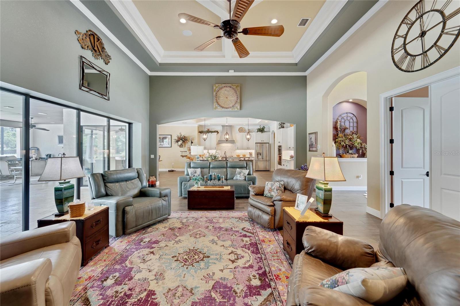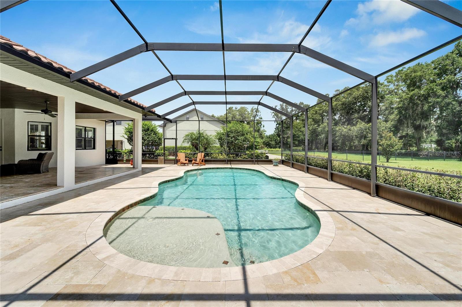 Stunning Jack Bartlett Custom Estate Home located in the private gated community of Hawk Creek. This Elegant estate features Four Bedrooms with an office/den, Three and one half baths, 1200 square feet of under roof lanai featuring an outdoor kitchen which overlooks a spacious salt water pool and the massive backyard of a little more than a fenced 1 acre lot. The moment you step up to the grand entry you will notice the double wood and iron front doors, travertine pavers and plantation shutters. Upon entering you will be wowed by the open floor plan, wood plank tile throughout and gorgeous architectural details and custom molding. This Great Room plan allows for large gatherings with the gourmet kitchen to be the center of attention. The Butlers Pantry offers both function and beauty entering into the dining room. Located on the west side of the home the owner's suite is absolutely magical. The luxurious garden tub is the focal point and the backdrop to the large semi circular walk-in shower and flanked by vanities lining both walls. The Owner's bedroom has 2 walk-in closets and a door leading to the lanai. This 3 way split plan offers two bedrooms that share a bath and a one bedroom suite. There is a half bath close to the Great room and Office/Den. Arriving into the garage, enjoy the spacious 3 car side entry and enter into a large mudroom and cheerful laundry room with utility sink and window. This home features indoor/outdoor living at its finest with 1200 square feet of outdoor living space. No detail has been missed with travertine pavers, vinyl ceilings, stone facade covering outdoor kitchen and Agua link automated pool integration. Stay worry free during power outages with a 22 kilowatt generator that runs on propane. This custom home has many features that are worth mentioning. Two tankless gas water heaters (one NEW), a built in sonos sound system, spray foam insulation in attic and the peace of mind with a house built by a builder with a reputation for integrity and quality. Hawk Creek Reserve has highly desirable and SOUGHT AFTER, with it's TOP rated schools and excellent location Within an hour to the #1 Rated St. Petersburg Beach, 45 minutes to Tampa International Airport, 35 minutes to Downtown Tampa and close to restaurants, shopping and more! Homes like this one do not come on market often. Call today for your personal tour! Please note, Dinette light fixture does not convey.