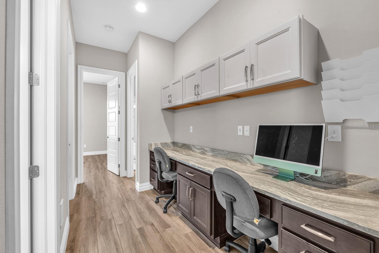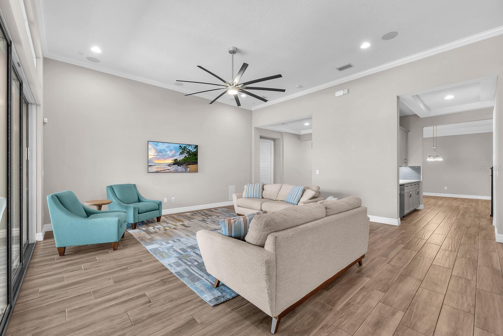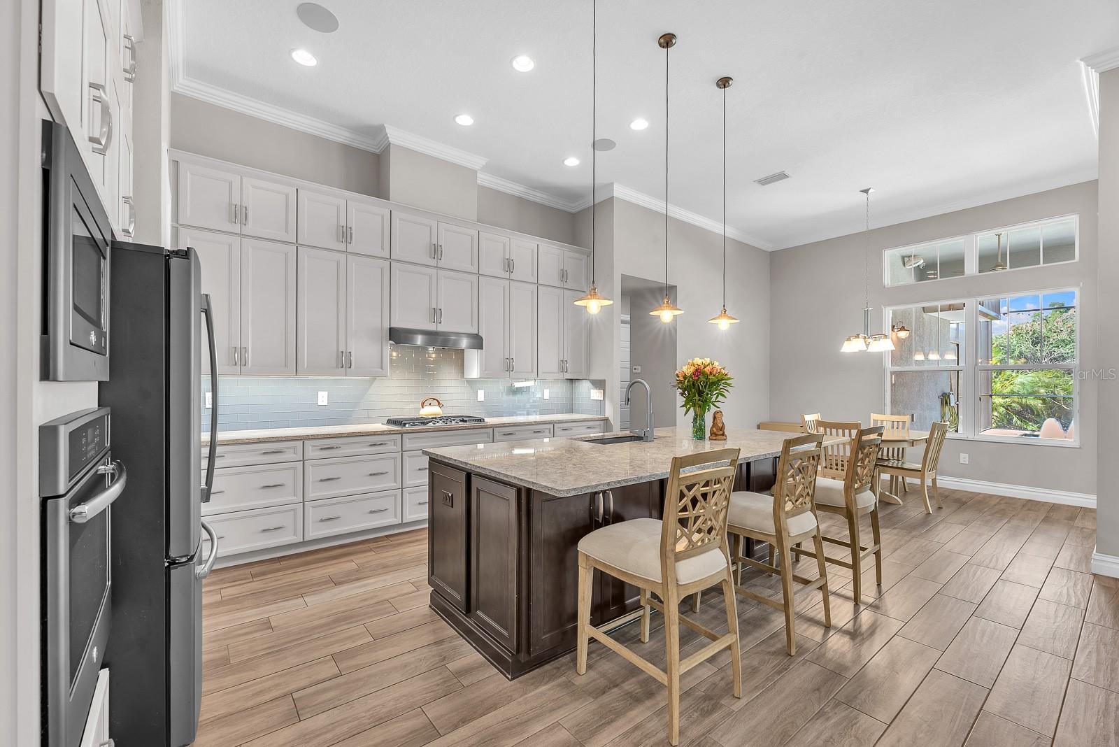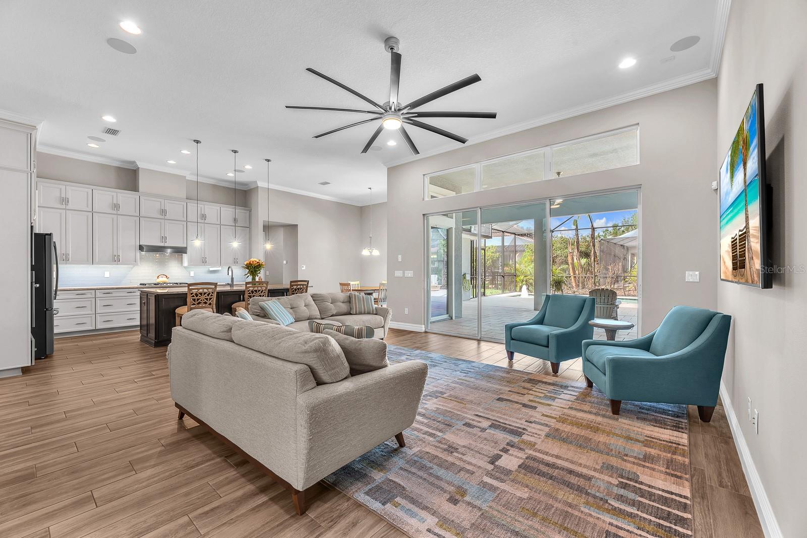 ** $235K is assumable at 2.25% as long as buyer meets VA requirements.** Welcome to this exceptional Cardel Wilshire II home located within the gated FishHawk Preserve community in Lithia—where generous space, thoughtful upgrades, and everyday functionality come together beautifully. Situated on a .30-acre homesite, this 4-bedroom, 4-bathroom pool home offers over 3,600 square feet of well-designed living space, complemented by a 4-car split garage (two front-facing and two side-facing), a pavered driveway and walkway leading to the entry. Step inside to find porcelain tile throughout the entire first floor, enhancing both style and durability. Just off the entryway, a formal dining room provides a dedicated space for gatherings, while a study/den behind glass French doors sits opposite—ideal for a home office or flex space. At the heart of the home, the kitchen is designed for both everyday living and entertaining, showcasing a large island, stone countertops, custom backsplash, gas cooktop, built-in oven and microwave, dishwasher, and refrigerator. A butler’s pantry with additional cabinetry and a large storage closet with deep shelving offers exceptional storage. The kitchen flows seamlessly into the dinette, which overlooks the outdoor living space, and into the living room featuring triple sliding glass doors that open fully to the lanai. Outdoor living is elevated with a screened saltwater pool and lanai, finished with Shell-Lock pavers, ceiling fans, and two access doors to the backyard. The space is designed for entertaining with perimeter party lighting, a gas-plumbed firepit, and a convenient pool bath (Bath 3) with direct outdoor access. Thoughtful touches include a radio-controlled dog door, and all pool equipment—including the cleaner and hoses—will convey. The split bedroom floor plan ensures privacy and flexibility. The primary suite is tucked away on one side of the home and features dual walk-in closets and an en-suite bath with a dual sink vanity, garden tub, and separate shower. Bedrooms 2 and 3 are located on the opposite side of the home, each with walk-in closets and separated by a built-in workstation/desk area. Upstairs, a large bonus room, fourth bedroom, and full bathroom create a versatile space ideal for guests, multi-generational living, or a private retreat. This home also offers modern efficiency and convenience, featuring solar panels for significant energy savings, two LG backup batteries to power essential systems during outages, and a surround sound system with speakers installed in the patio, garage, bonus room, study/den, living room, kitchen, and dining room, with components included. The laundry room includes cabinetry, washer, and dryer, while the garage provides three ceiling-mounted storage racks. Wide slat blinds are installed throughout, and gutters with downspouts lead to underground drainage conduits for added peace of mind. Located within Fishhawk Preserve and part of the highly sought-after Fishhawk Ranch Community, residents enjoy access to top-rated schools, parks, trails, and a variety of amenities, all while being conveniently close to shopping, dining, and major commuter routes. This home offers the perfect blend of comfort, efficiency, and elevated indoor-outdoor living—ready to welcome its next owner.