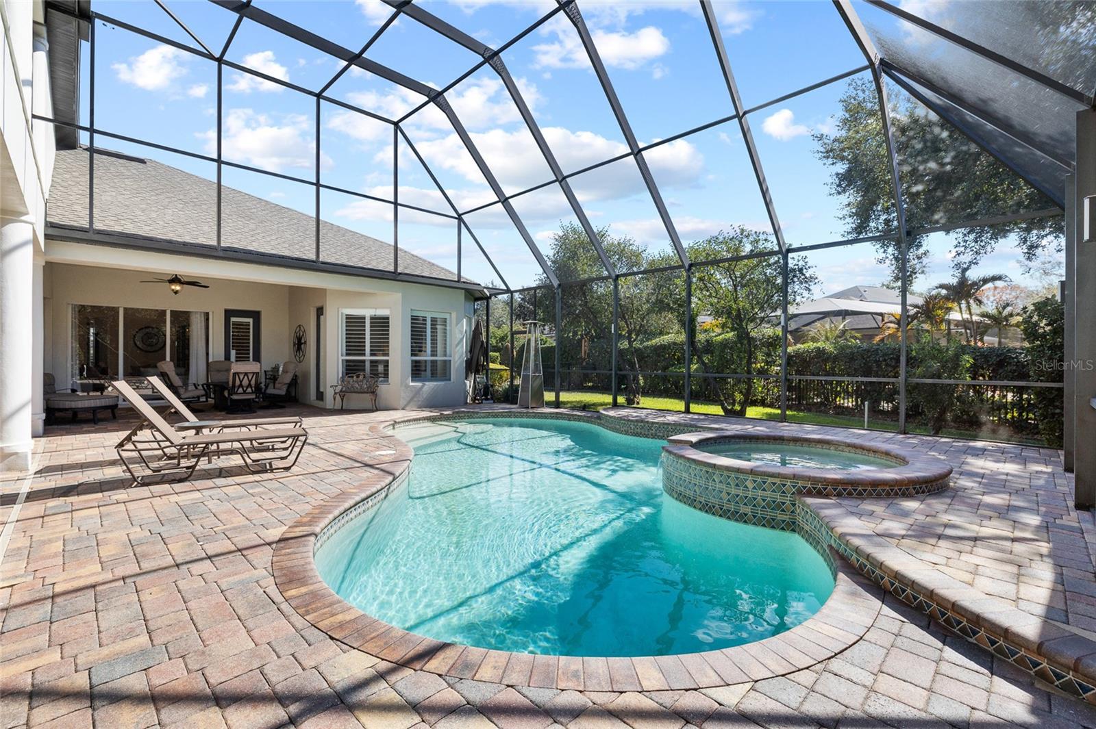 YOUR DREAM HOME AWAITS! HALF ACRE LOT! Located in the exclusive gated and guarded community of FishHawk Trails, this luxurious home features 5 bedrooms, 4.5 bathrooms, and a side-entry 3-car garage. With a brick papered driveway and remarkable architecture, this home has a striking curb appeal you can't miss. Upon entry, the home has an open foyer with high ceilings, crown molding, and plantation shutters throughout. Tile flooring in the main areas and engineered hardwood in the bedrooms. REMODELED KITCHEN! Kitchen features include a center island with elegant light fixtures and gold accents, gorgeous backsplash extended to the ceiling, modern stainless-steel appliances with a gas cooktop and bar fridge, gorgeous quartz countertops and updated cabinets, with a spacious dinette separate from the formal dining room. Split bedroom floorplan with the primary suite including two walk-in closets, and a large ensuite bathroom with separate vanities, garden tub, fully tiled walk-in shower, quartz countertops, and a vanity island with a beautiful chandelier. Upstairs is a bonus room with plenty of space to use as desired, as well as the 5th bedroom and bathroom, perfect for a guest suite, plus an UPSTAIRS BALCONY overlooking the pool. The backyard is your own private oasis, with the fully screened private pool & spa, pavered deck, outdoor kitchen and spacious covered porch for outdoor seating and lounging. The yard is fully fenced and very secluded with surrounding privacy plants. *Roof replaced 2023, HVAC systems 2023 and one newly replaced, new programmable pool pump, pool heater replaced 2023, recently installed whole house generator. * Make this wonderful home your own! Call today to schedule a private viewing!