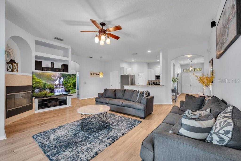 WOW! Located in the Heart of Fishhawk Ranch Phase 2 – Walk or Bike to School, Pools, Park Square and More! Come see this popular Morrison Home Worthington II model offering * 4 true bedrooms + 3 bathrooms + Home Office + an Oversized 3 Car Garage. This home is tucked away on a quiet cul de sac street featuring a New Roof, Brand New A/C, New Luxury Vinyl Plank Flooring and More! This lovely home offers tons of upgrades & beautiful features throughout! Upon arrival to the home you will notice the treelined street, stone accents and decorative curbing. Inside awaits a wonderful dining room w/ arched entryway! Working from home will be a breeze in a secluded office off of the dining room w/ French doors and laminate flooring. Across the way is a stunning kitchen w/ large eat-in breakfast nook, granite counters, white cabinets 42” cabinets with nickel hardware, stainless steel appliances including gas range & tile backsplash! Open to the kitchen is a spacious great room featuring surround sound built-in speakers & triple French doors with built in blinds opens up to brick paver screened lanai, gas fireplace, built in entertainment center. A private Master suite is on its own side of the home with an ensuite bathroom and French door out to lanai. The master bathroom has a large walk in closet, his and hers vanity cabinets with drawers and granite counter top, spacious walk in shower and garden tub. Secondary bedrooms are all generously sized & ***SPECIAL NOTE: Bedroom #4 is a private guest suite w/bath…perfect for a mother-in-law suite or teen retreat! The pool bath at the end of the hallway on the right side of the home has dual vanity sinks, cabinets with drawers and a tub/shower combo. Flex space between bedrooms three and four is perfect for a homework/computer station. Outside you will fall in love w/ the oasis of space that offers an extended brick pavered screened lanai and fully fenced backyard. All of this in Hillsborough 's Award Winning Resort Style Community of Fishhawk Ranch featuring: Clubhouses, pools, Water Park, Pickleball, movie theater, fitness center, miles of trails for walking or biking, tennis, basketball, baseball, roller hockey, skate park, & On-Site Top Rated schools ( Fishhawk Creec Elementary, Randall Middle, Newsome High). Fishhawk is a Lifestyle - This is Florida living at its BEST!! Minutes to MacDill AFB, Tampa, Florida Attractions, Golf Courses and World Class Beaches!! This immaculate home truly has it all—schedule your private tour today!
